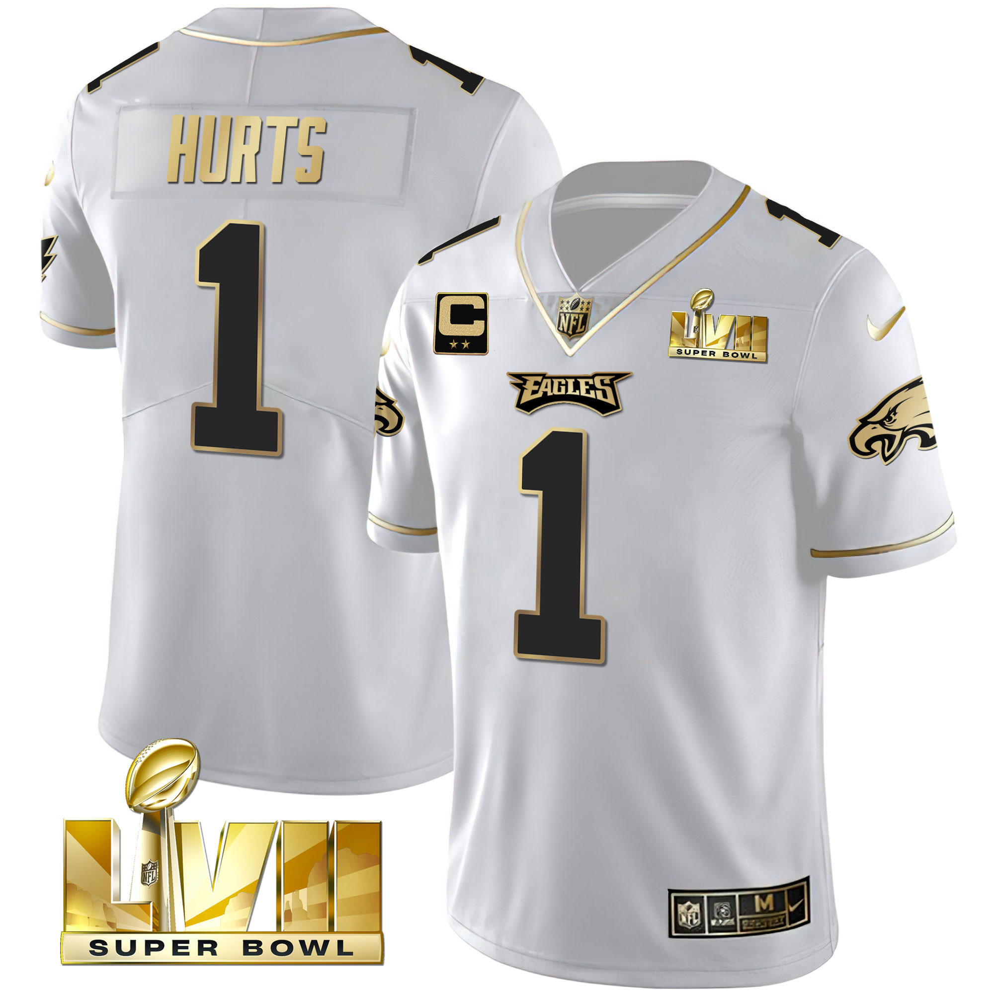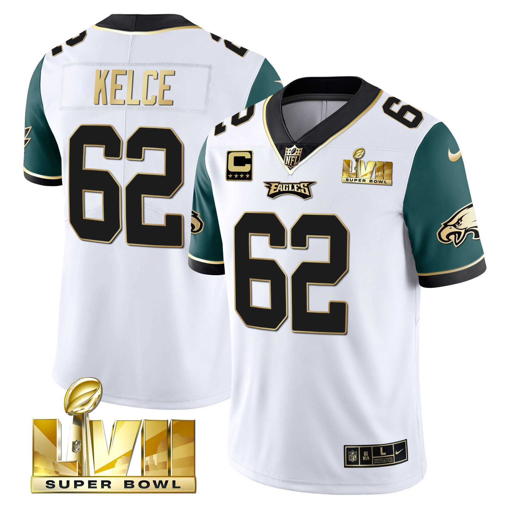 Men’s Eagles Super Bowl Vapor Gold Jersey – All Stitched