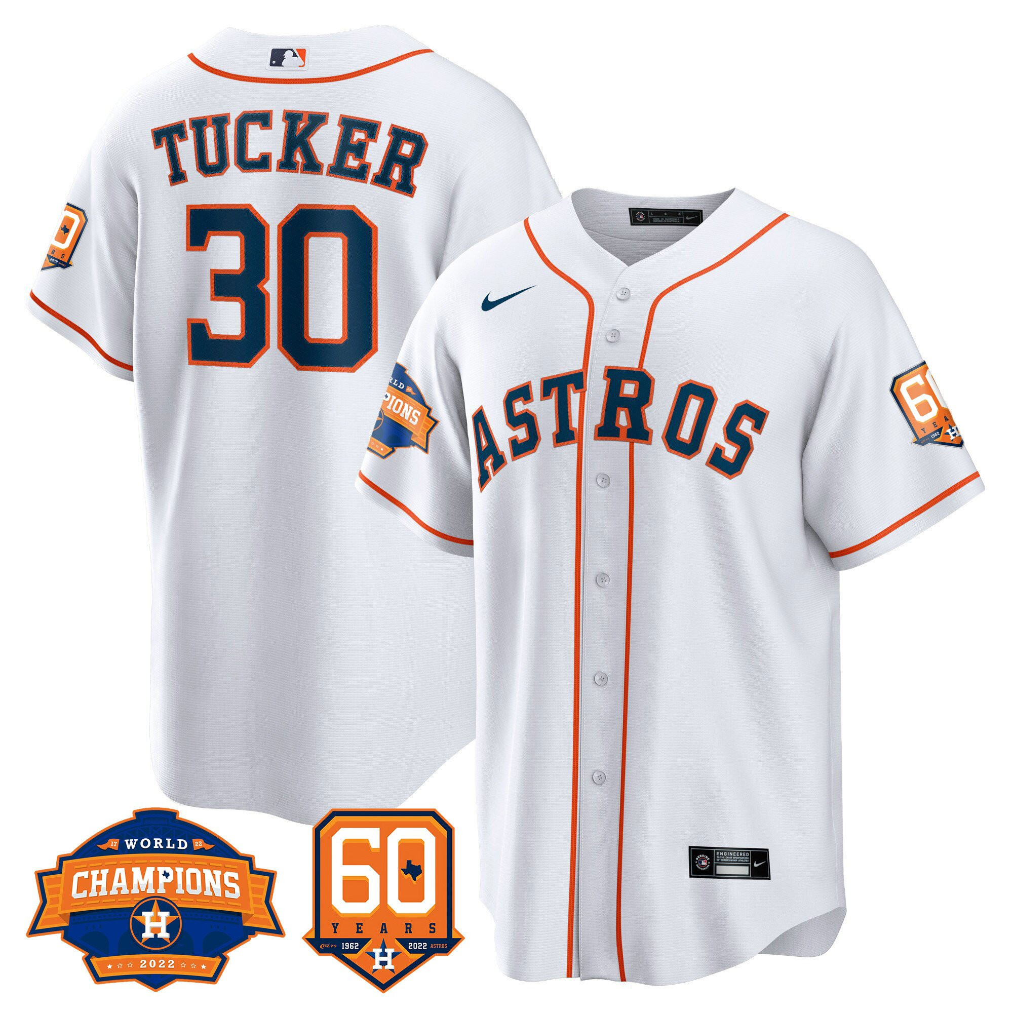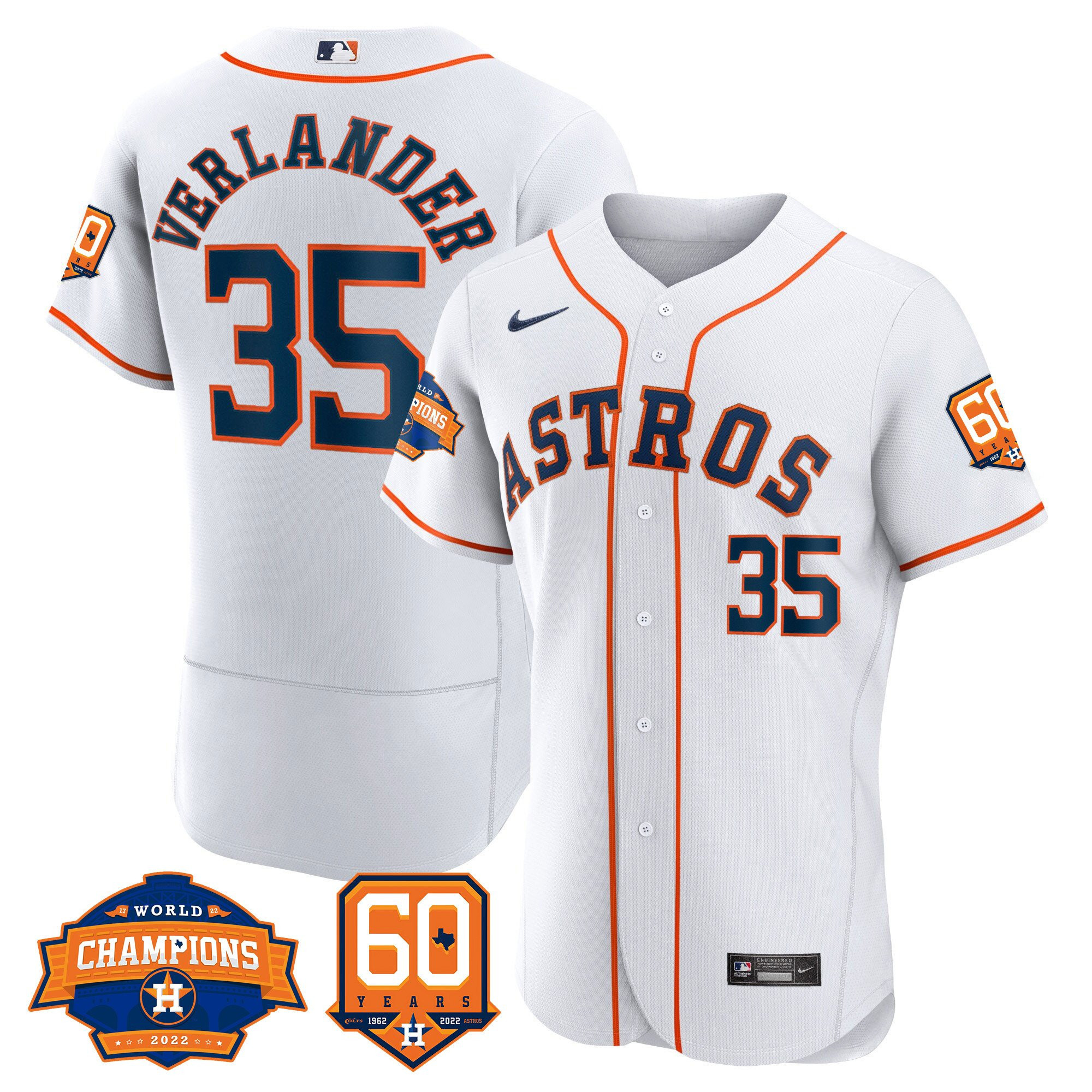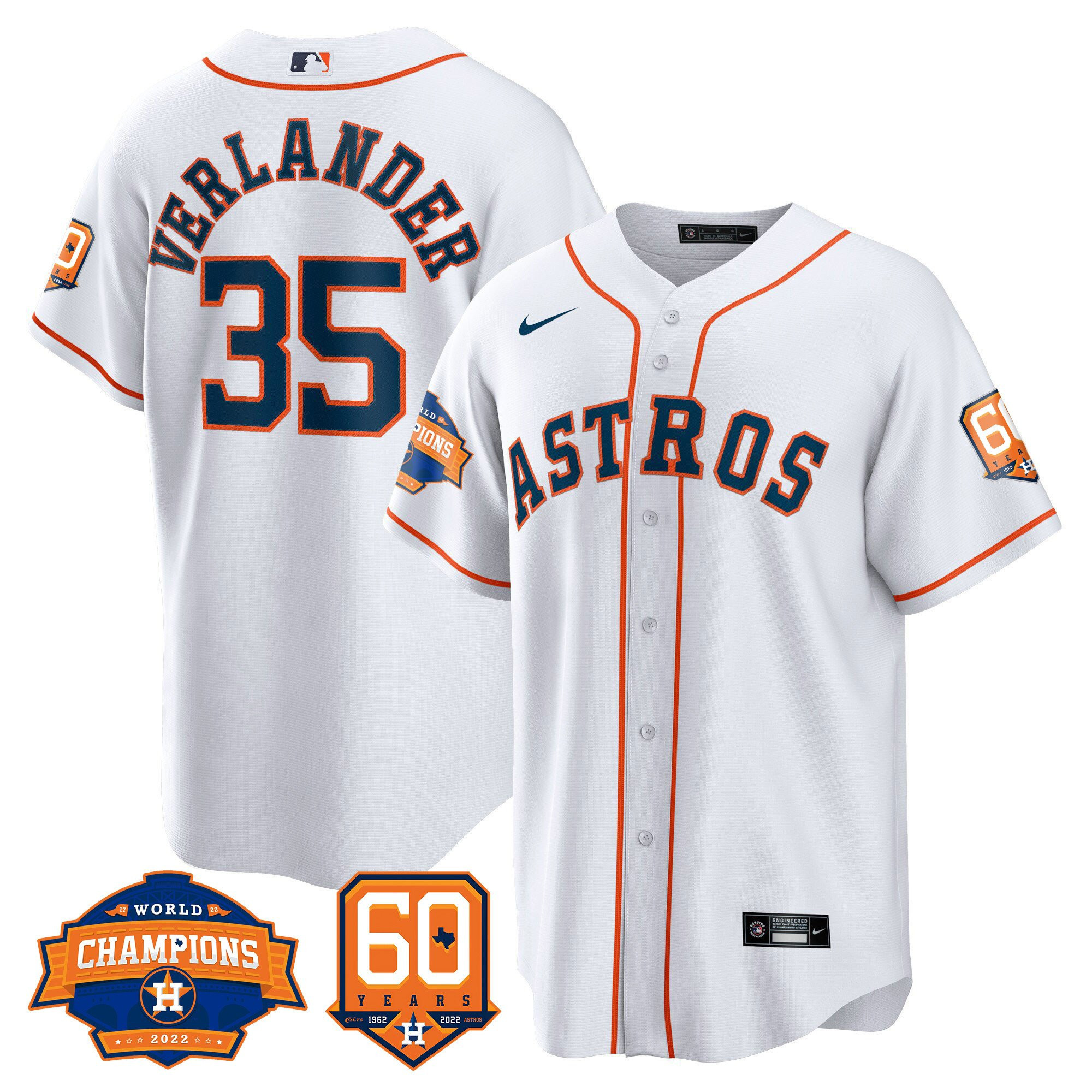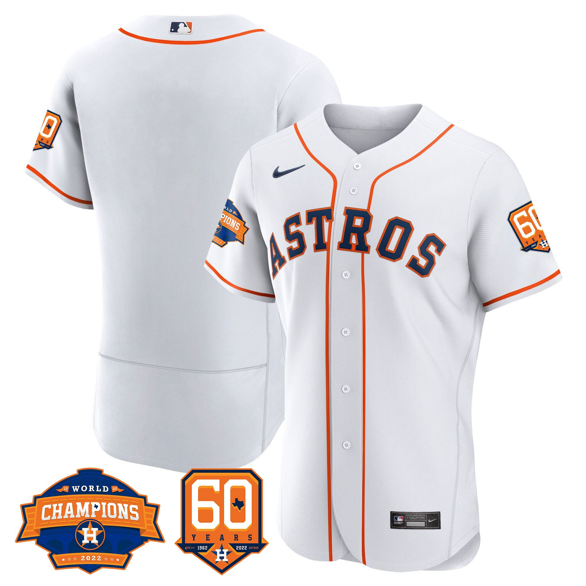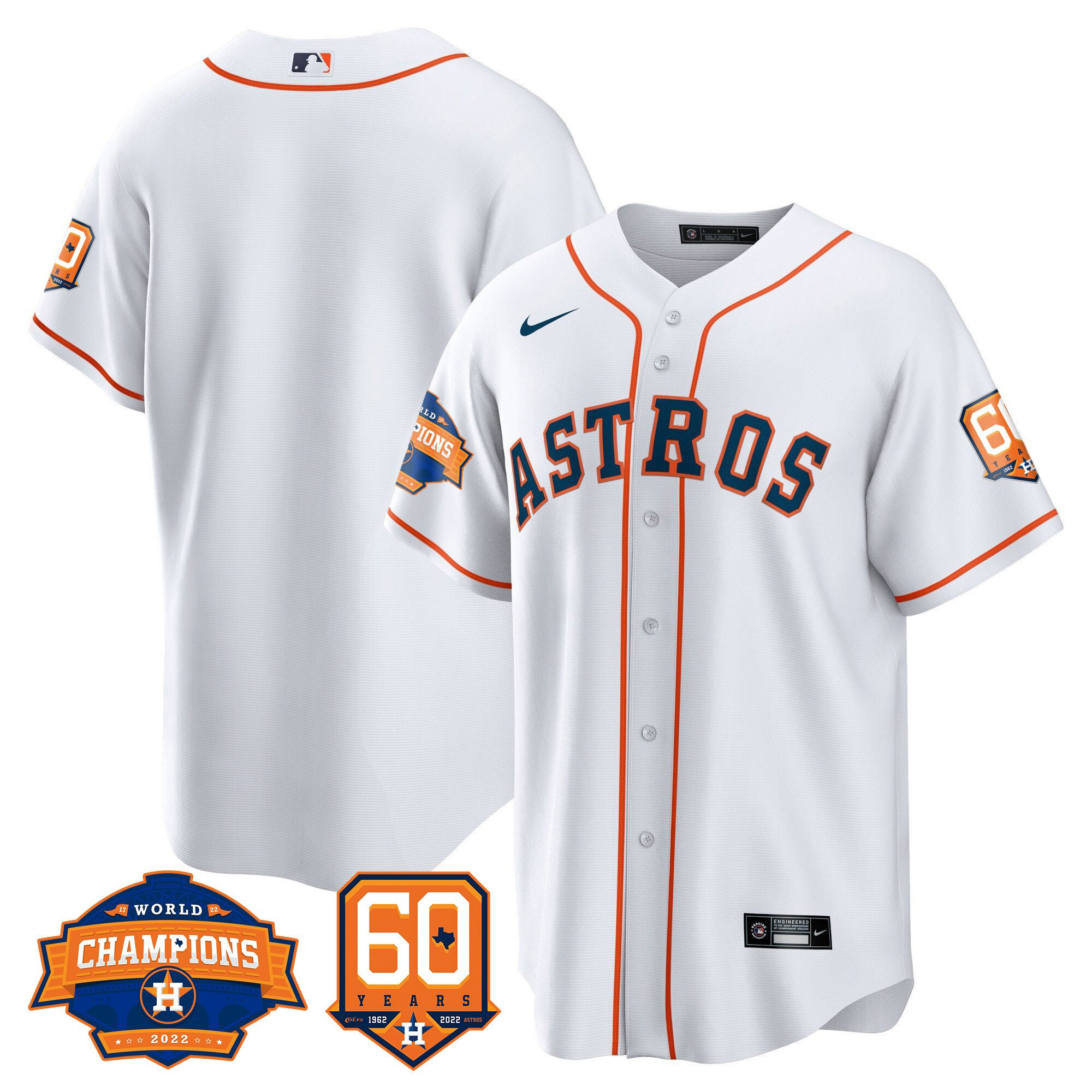 Men’s Houston Astros 2022 World Series Champions & 60th Anniversary Patch Jersey – All Stitched