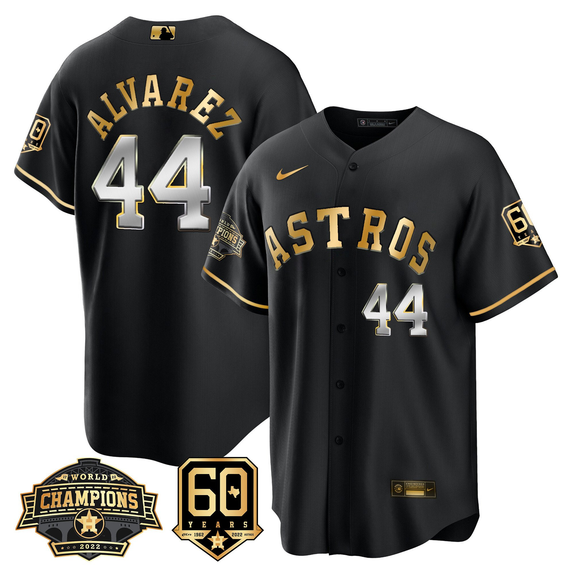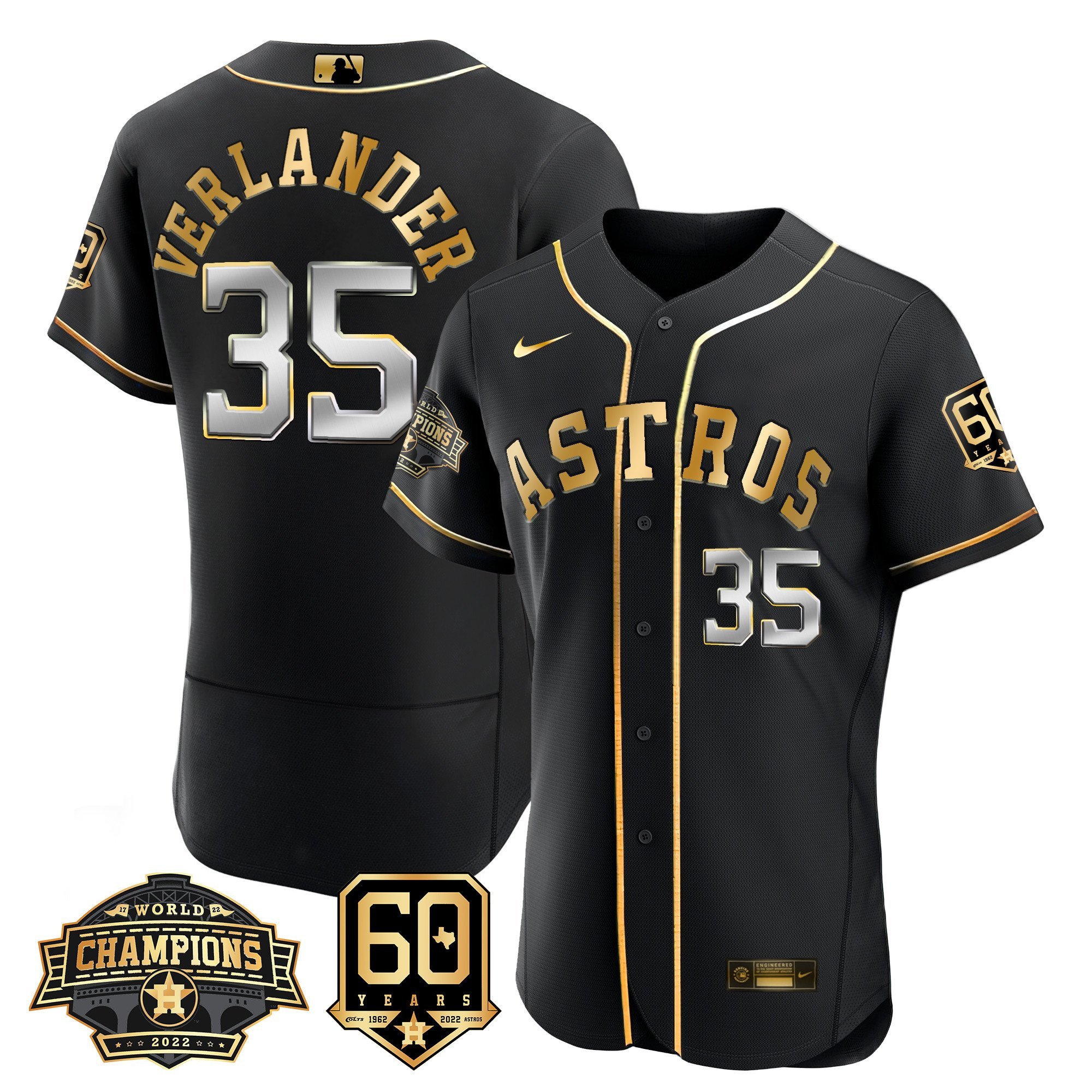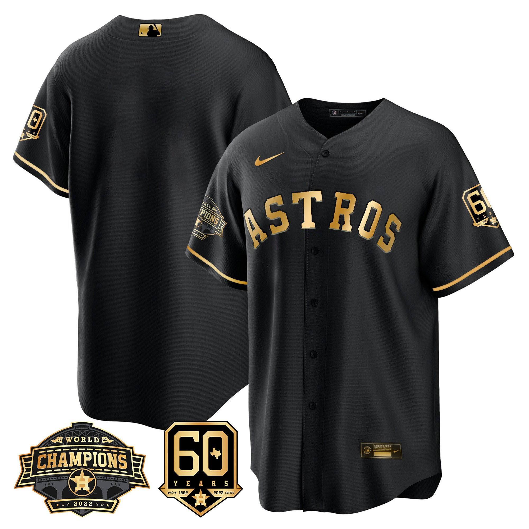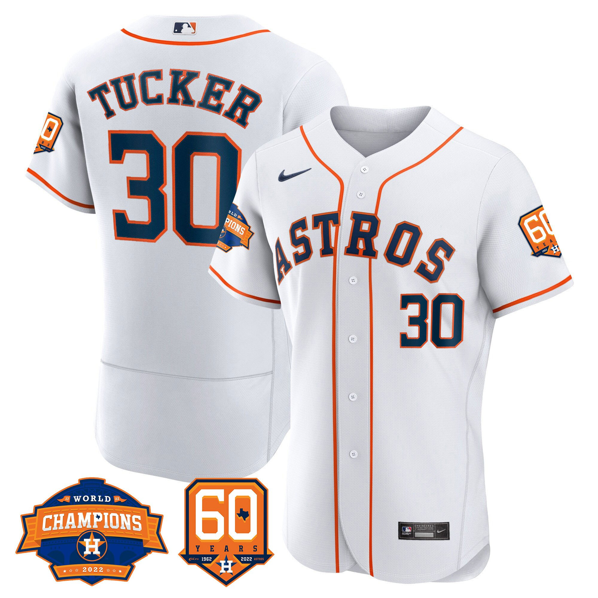 Men’s Houston Astros 2022 World Series Champions & 60th Anniversary Patch Jersey – All Stitched