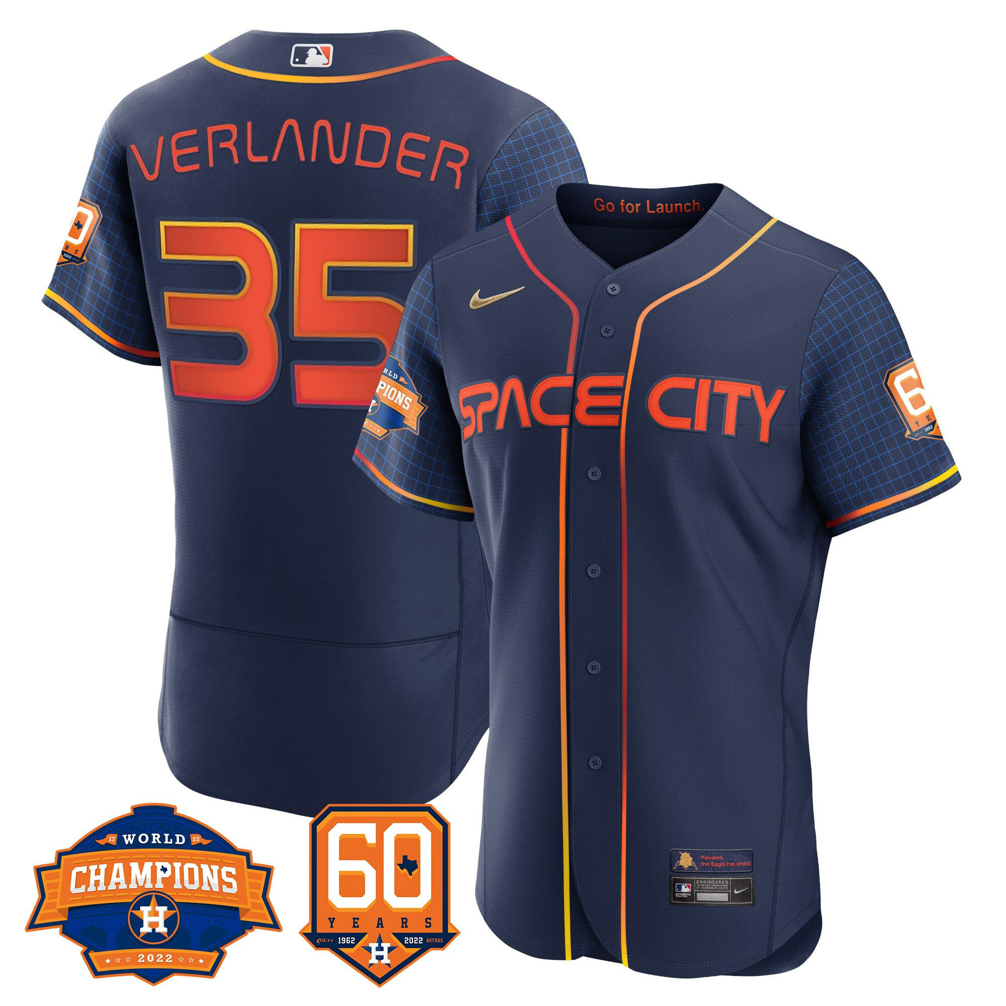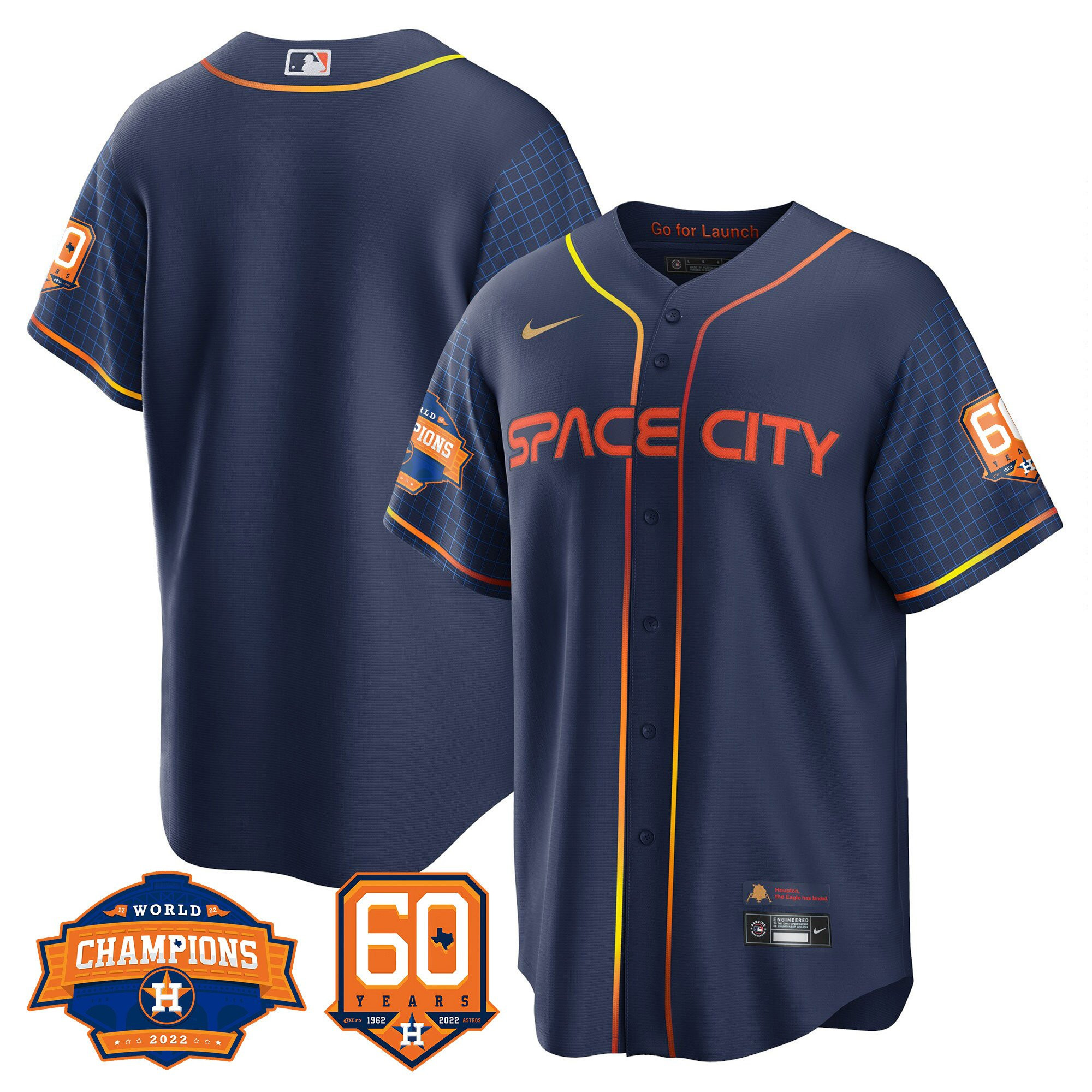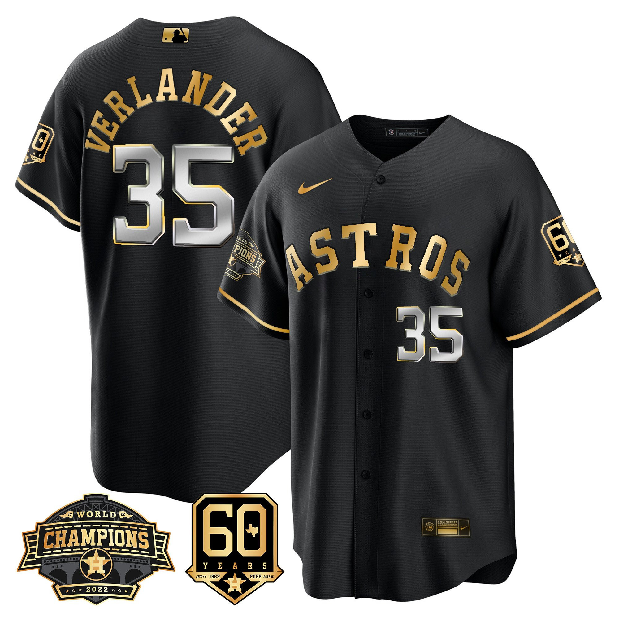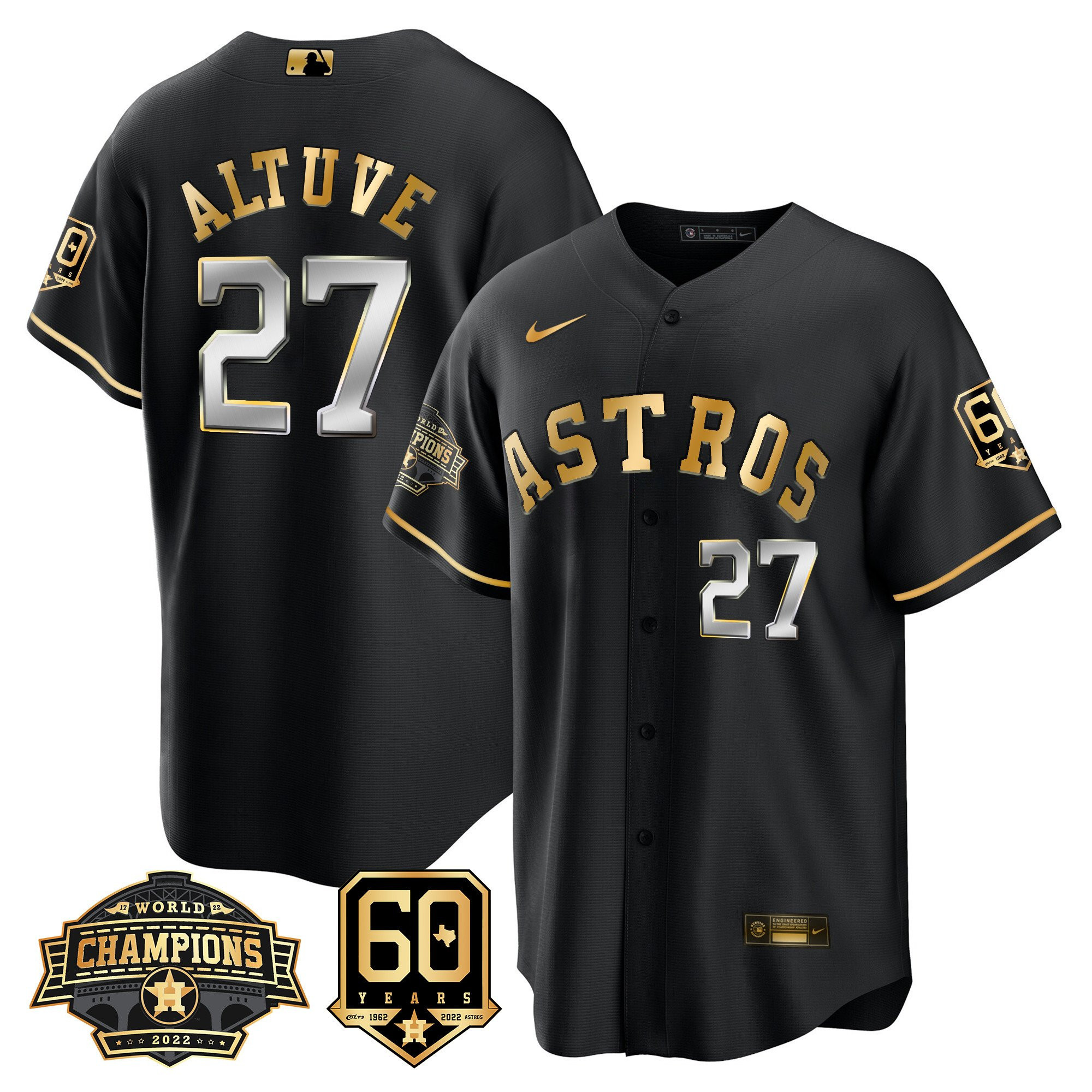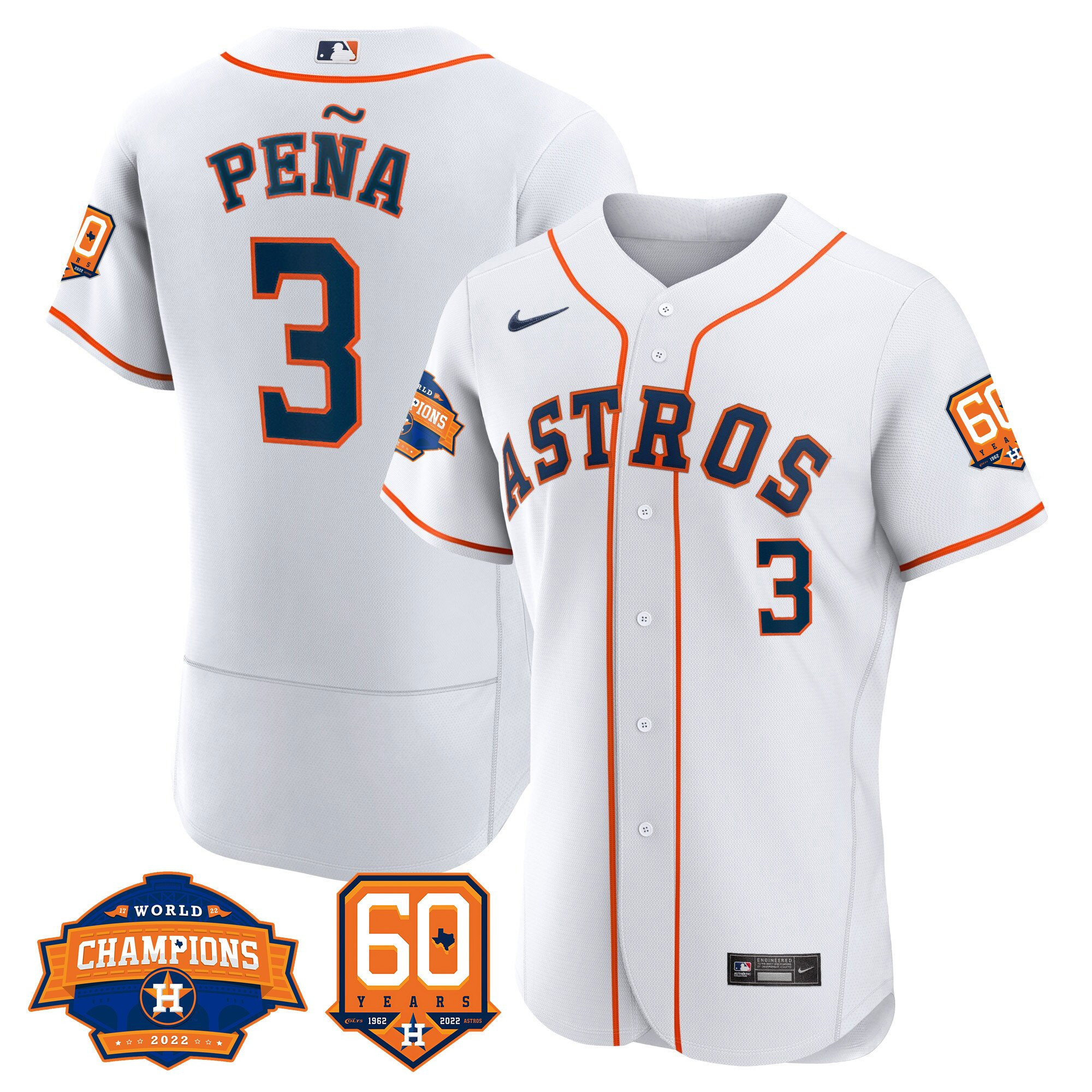 Men’s Houston Astros 2022 World Series Champions & 60th Anniversary Patch Jersey – All Stitched