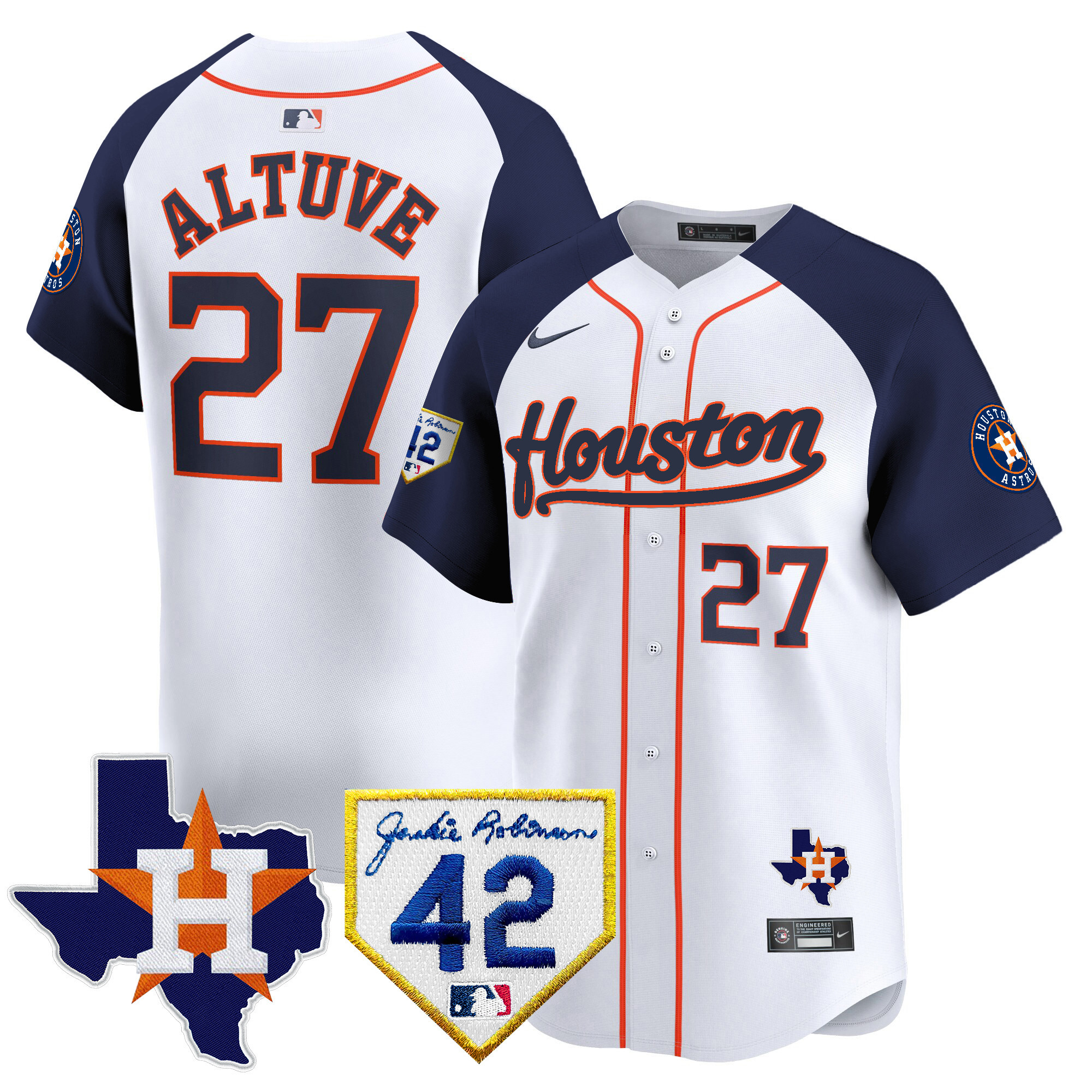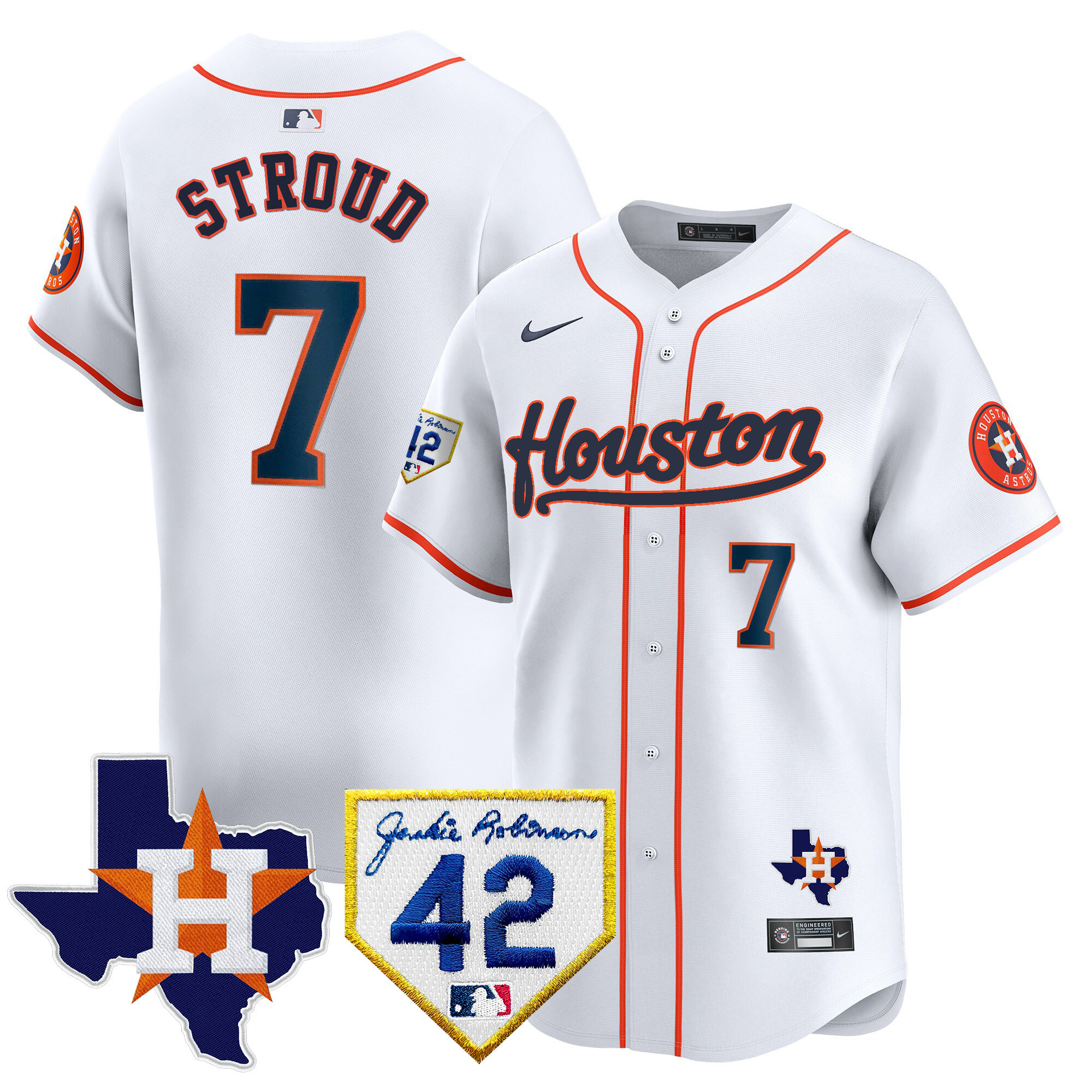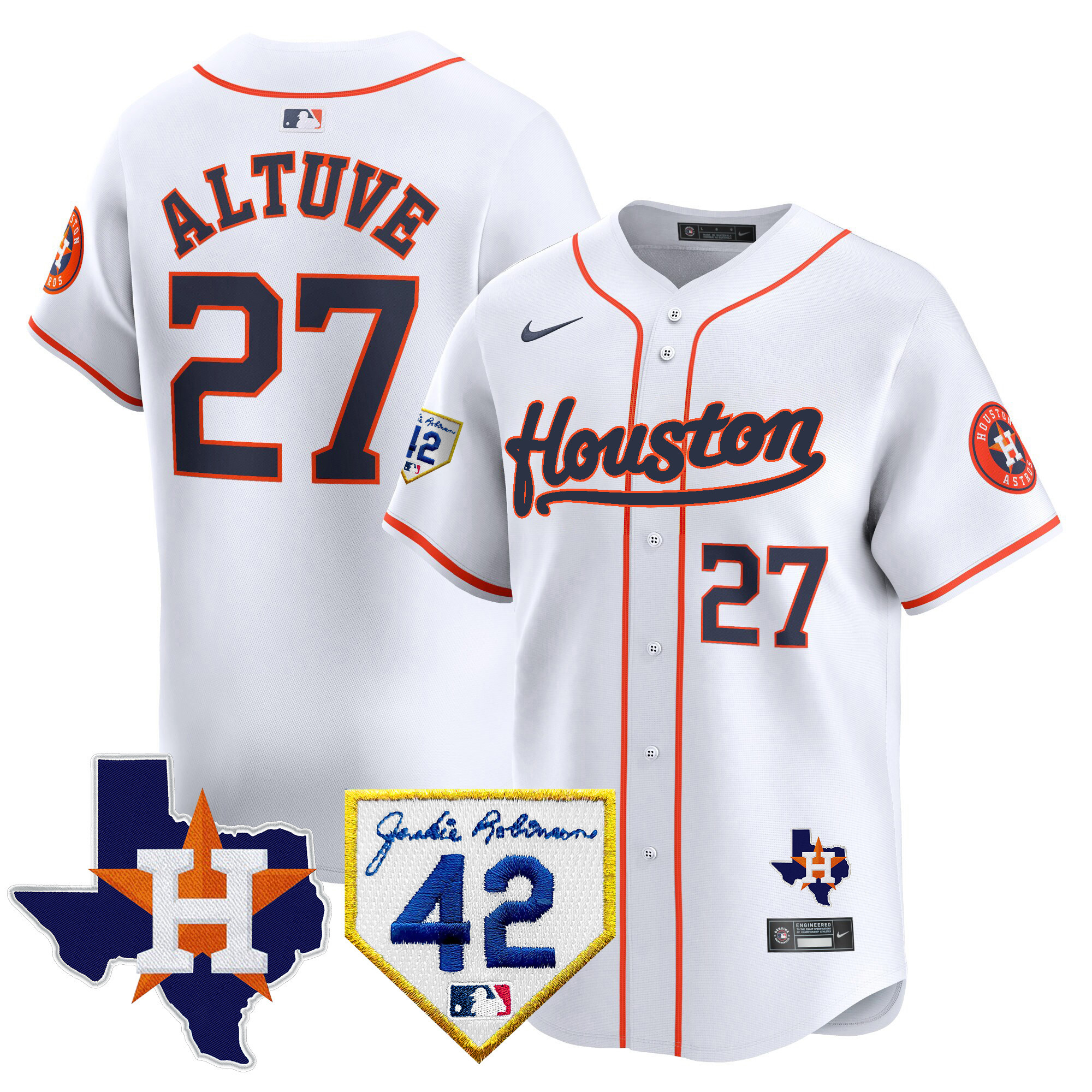 Men’s Houston Astros 2024 Jackie Robinson Patch Vapor Premier Limited Jersey – All Stitched