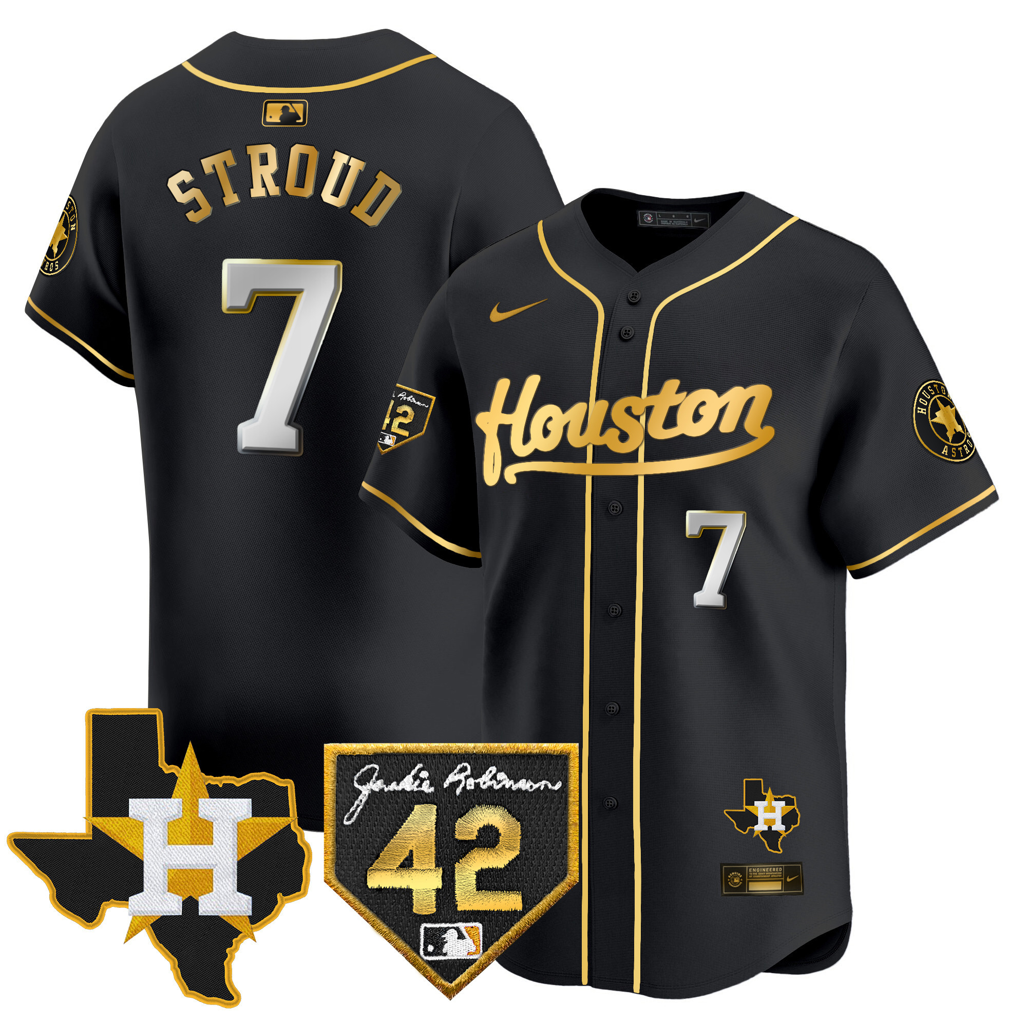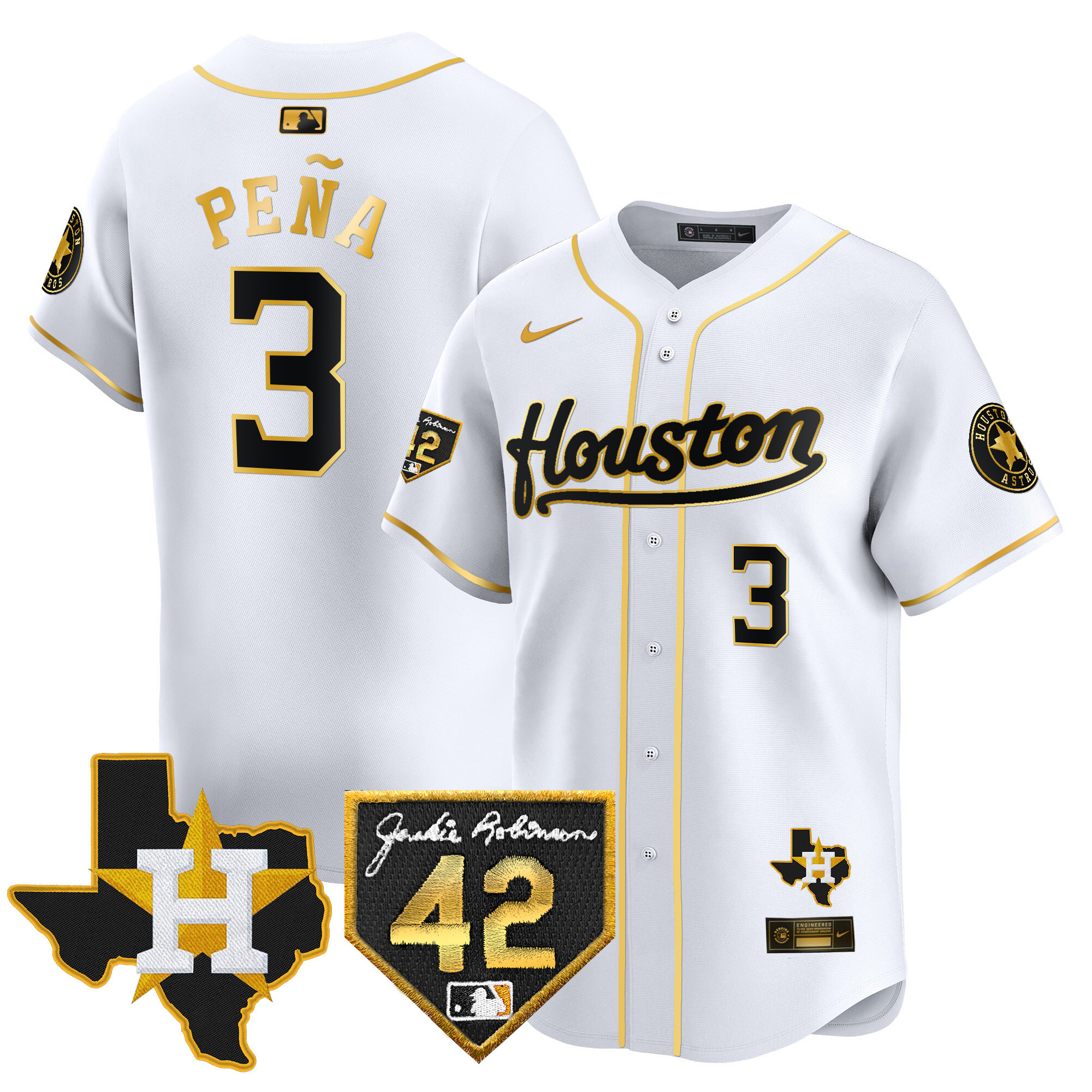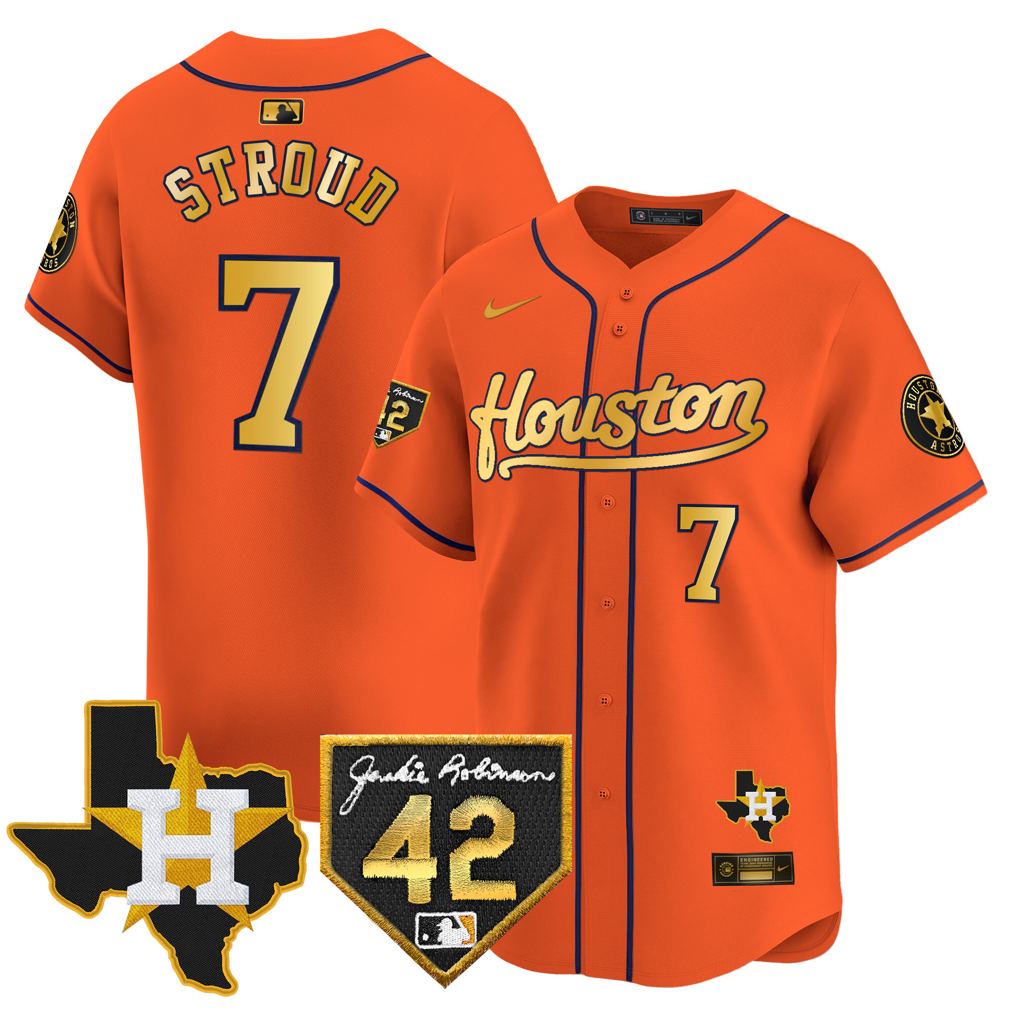 Men’s Houston Astros 2024 Jackie Robinson Patch Vapor Premier Limited Jersey – All Stitched