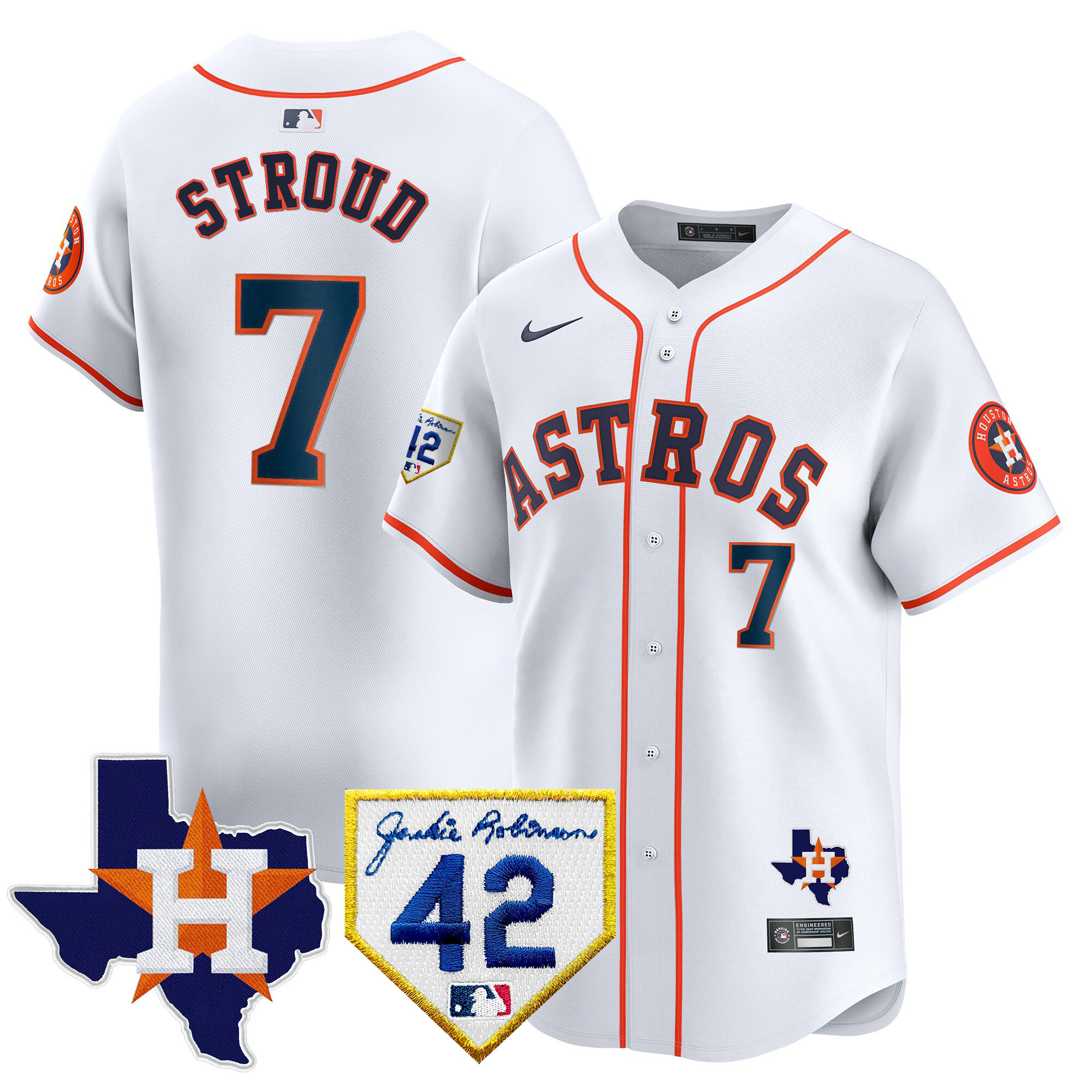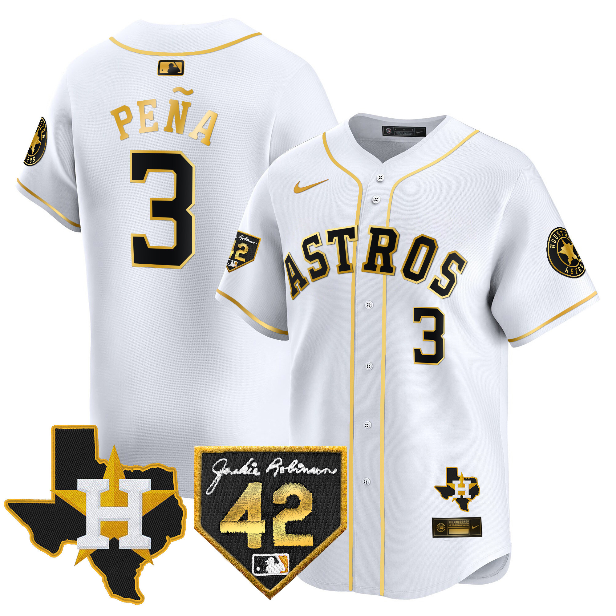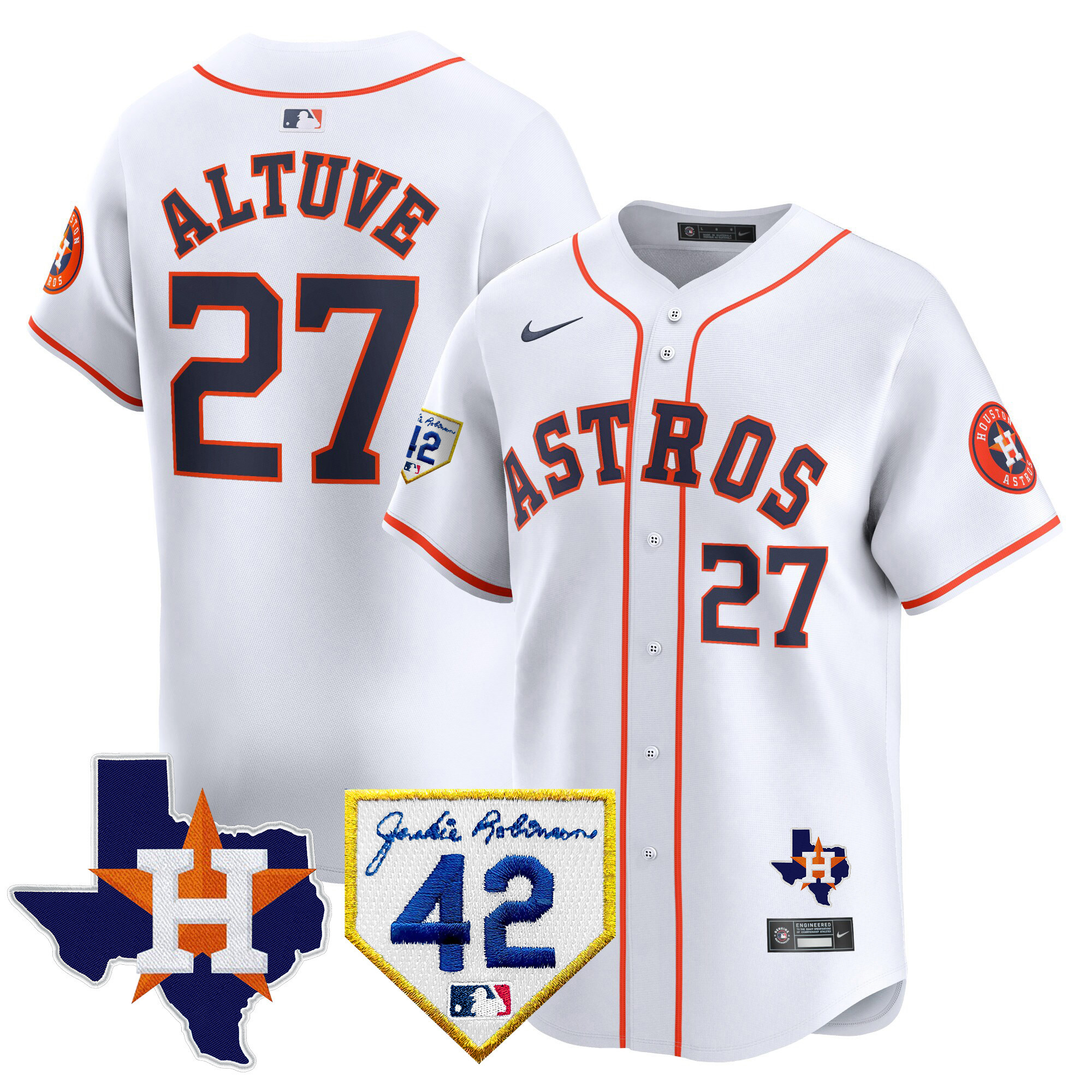 Men’s Houston Astros 2024 Robinson & Texas Patch Vapor Premier Limited Jersey – All Stitched