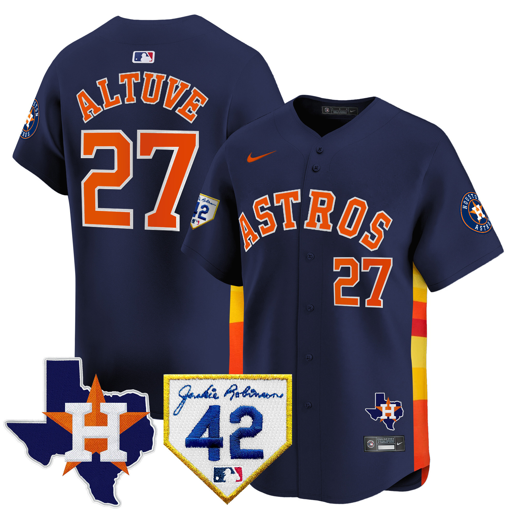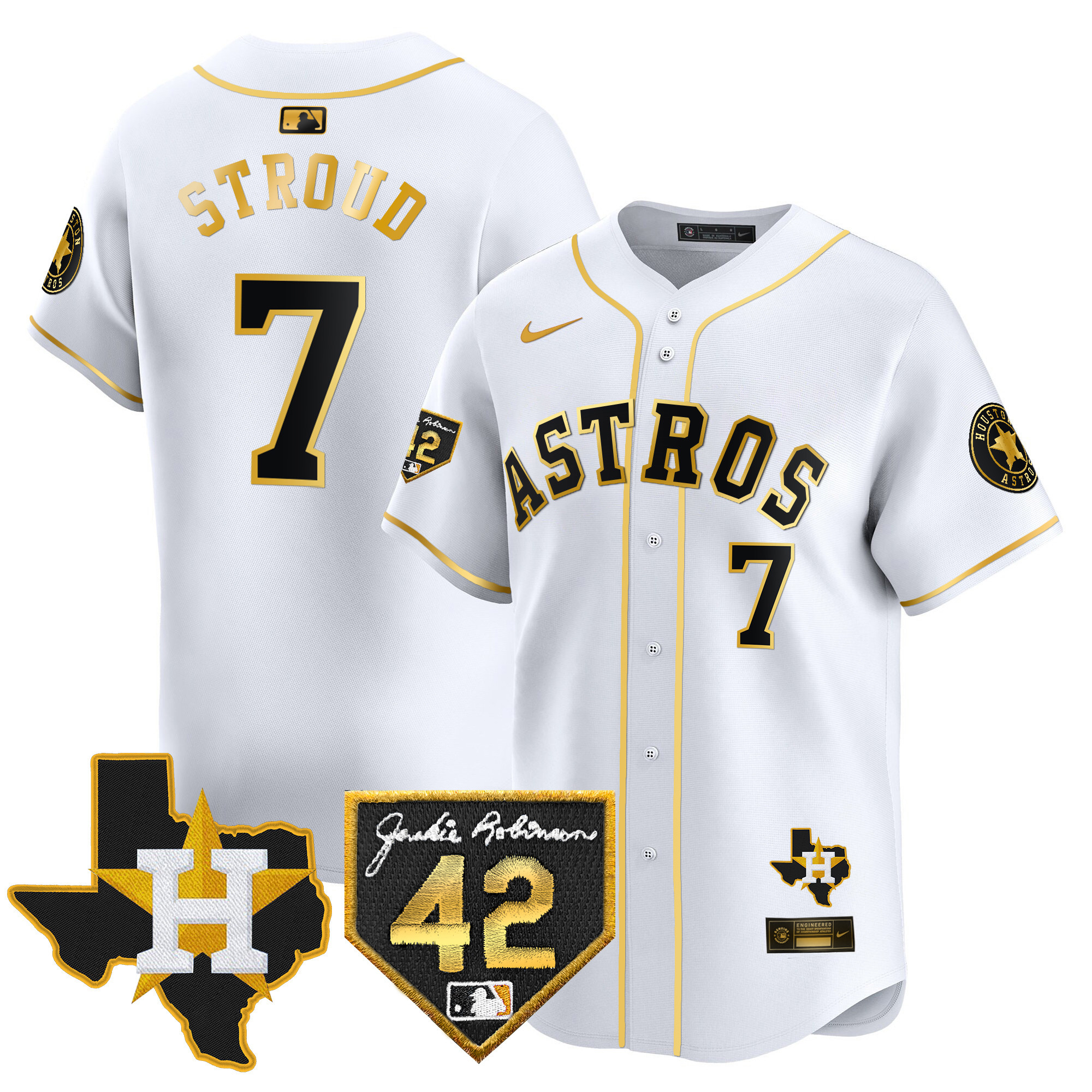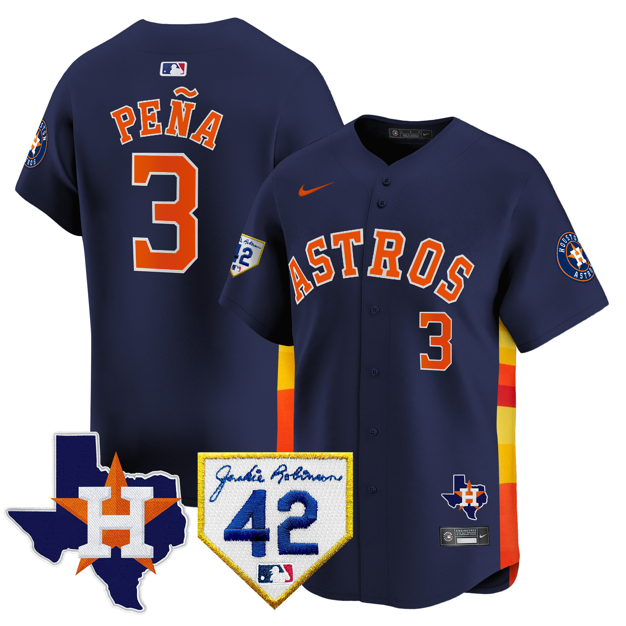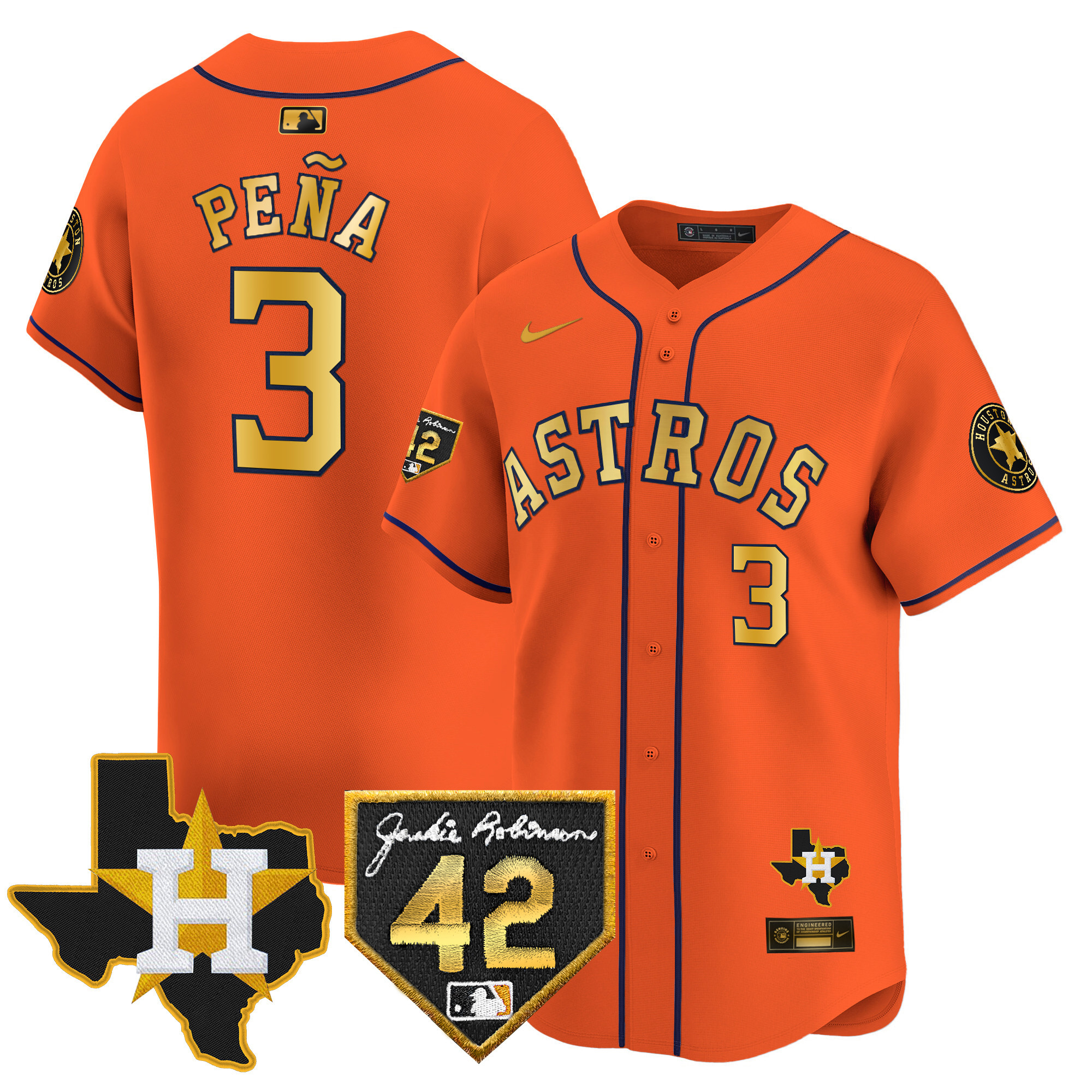 Men’s Houston Astros 2024 Robinson & Texas Patch Vapor Premier Limited Jersey – All Stitched