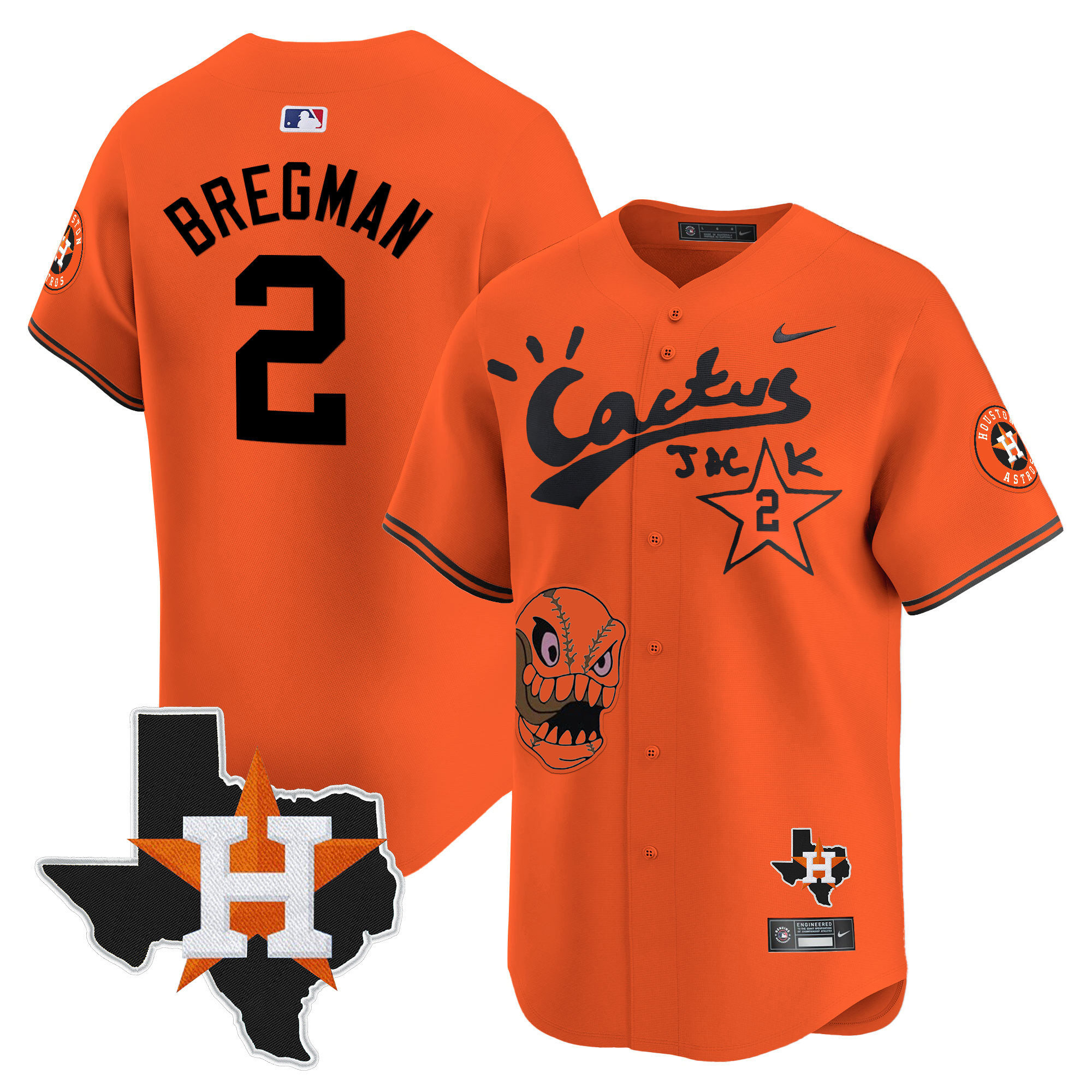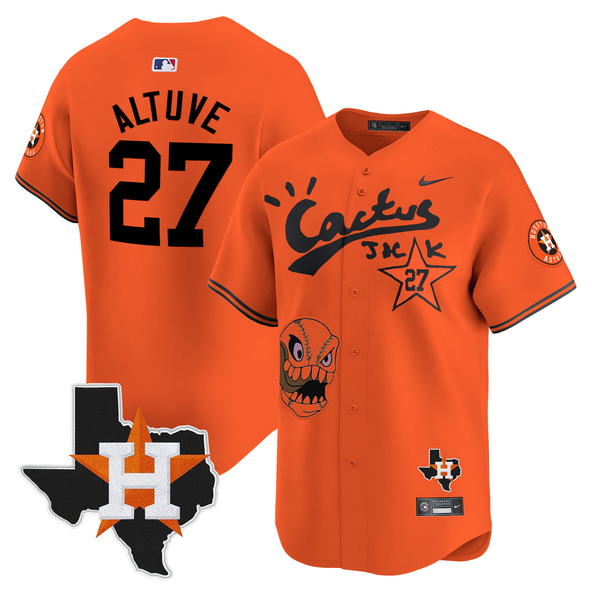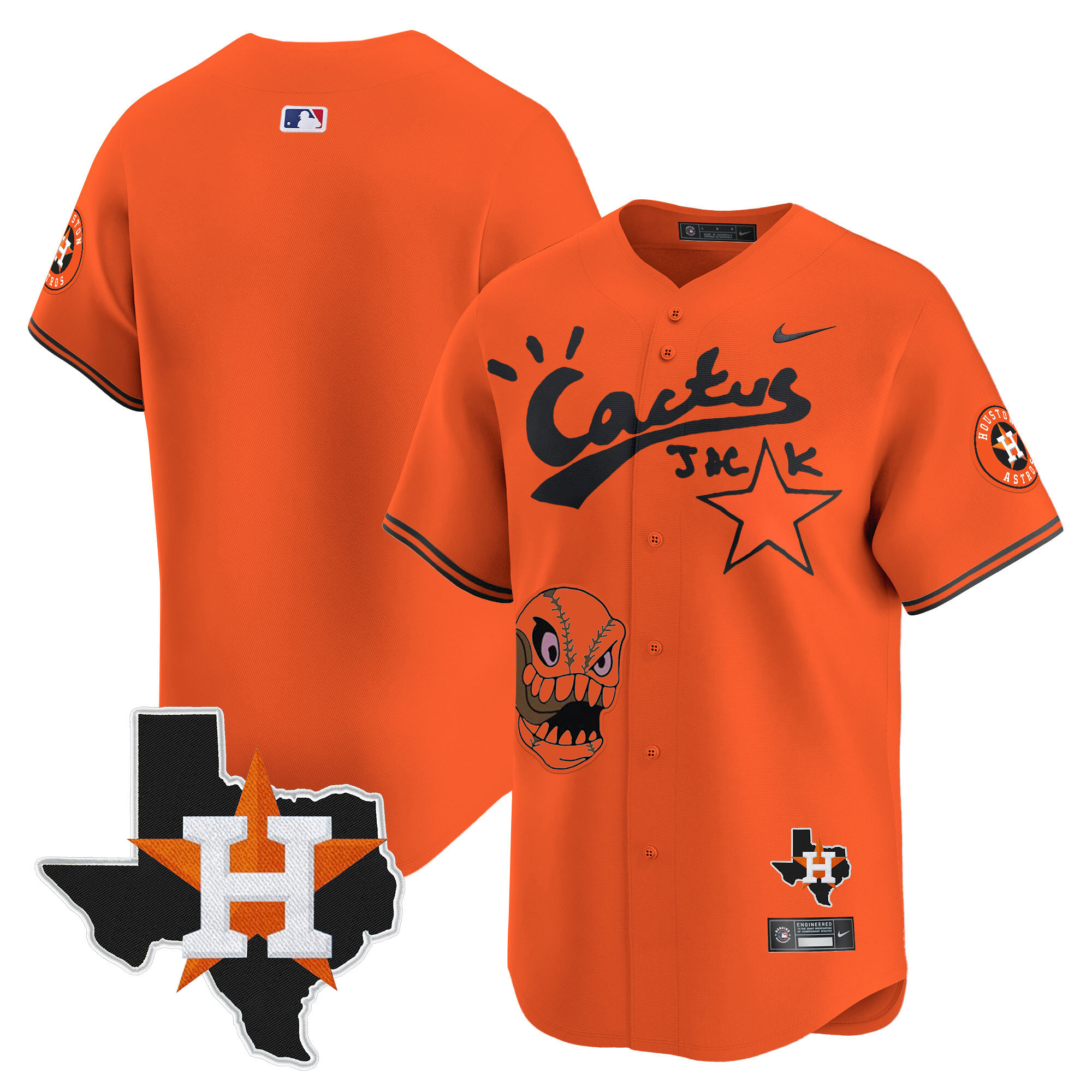 Men’s Houston Astros Cactus Jack Champions Patch Vapor Premier Limited Jersey – All Stitched