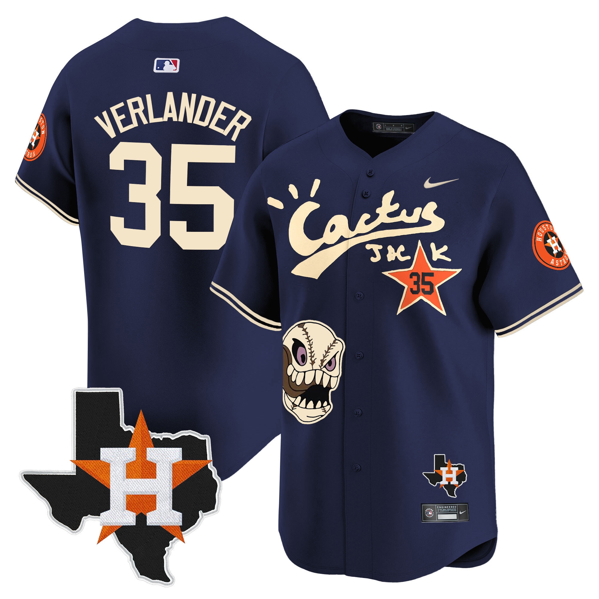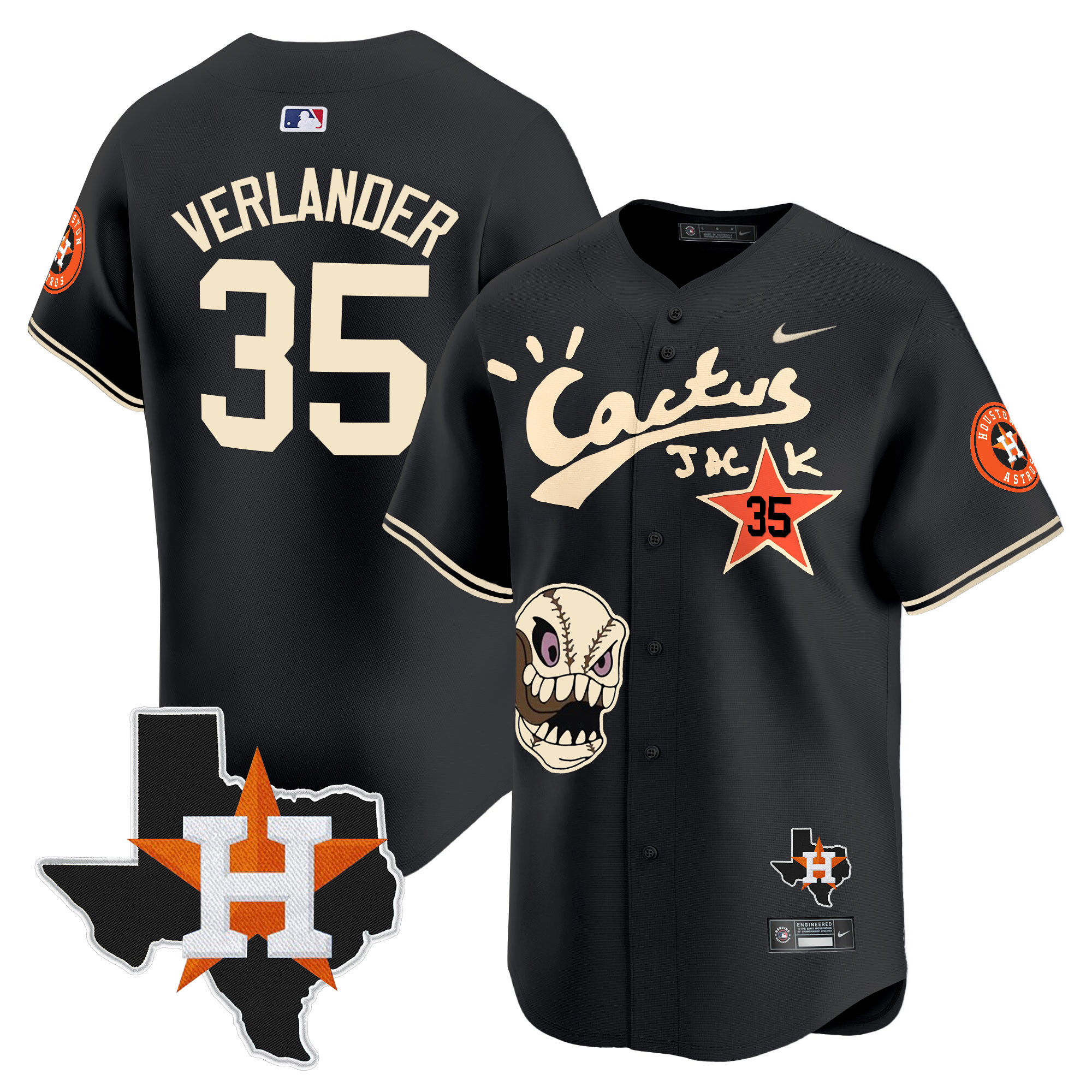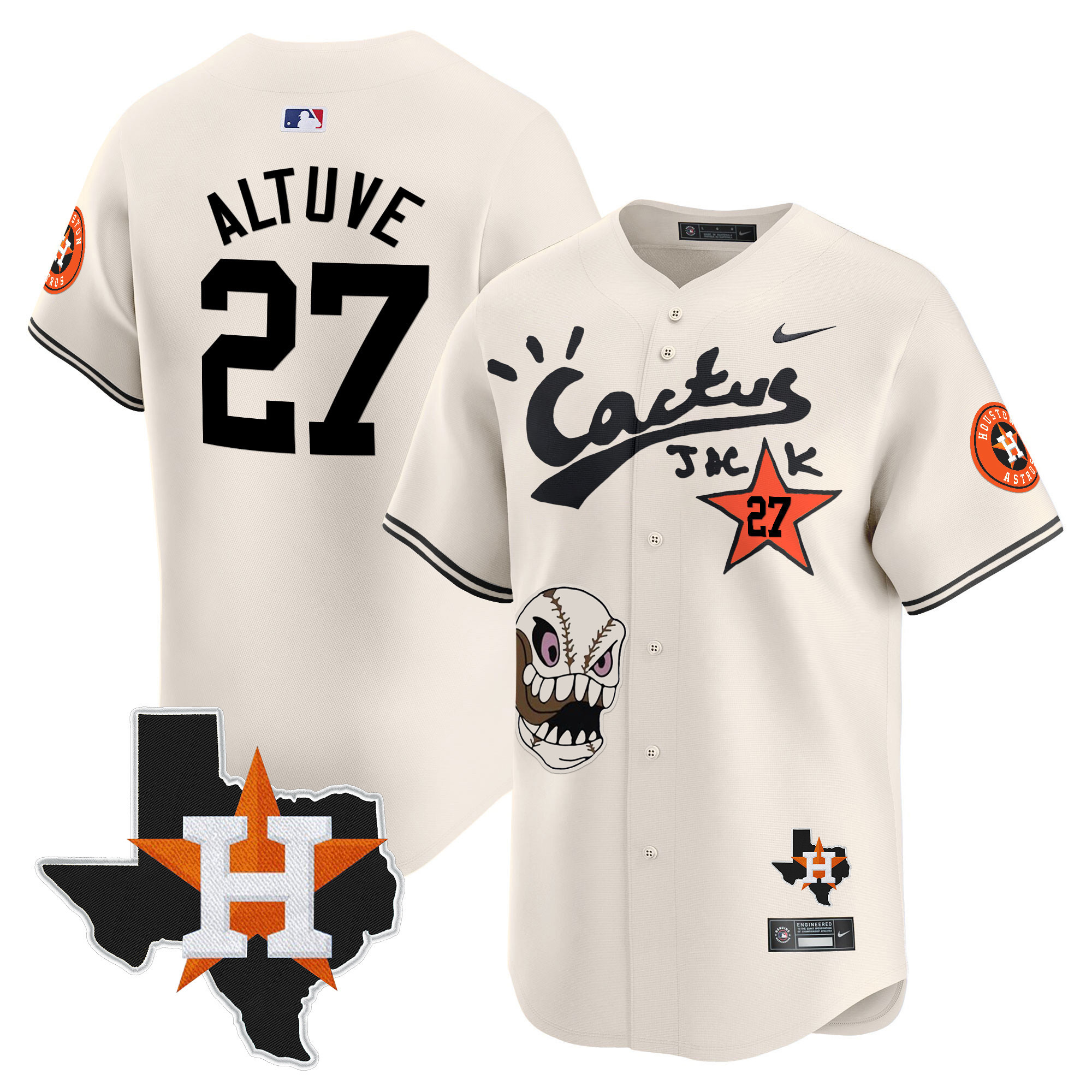 Men’s Houston Astros Cactus Jack Champions Patch Vapor Premier Limited Jersey – All Stitched