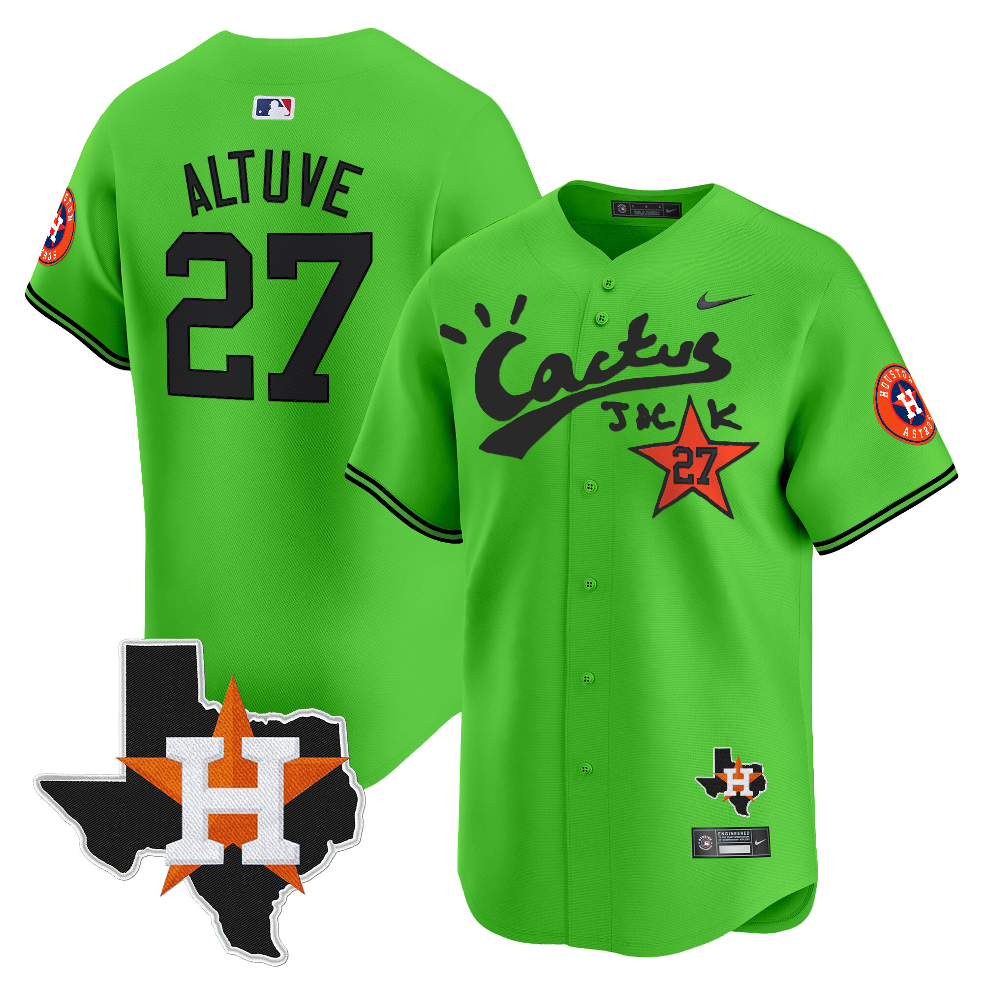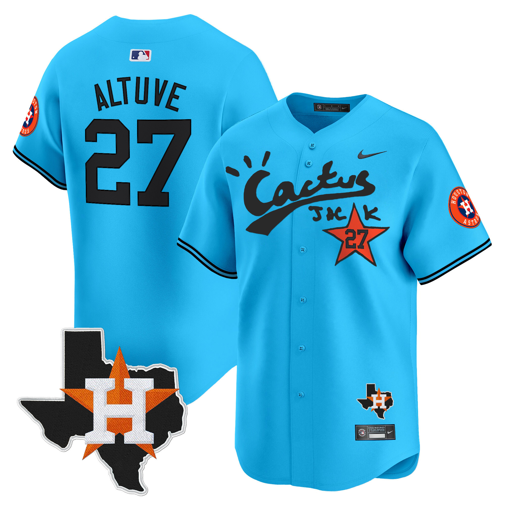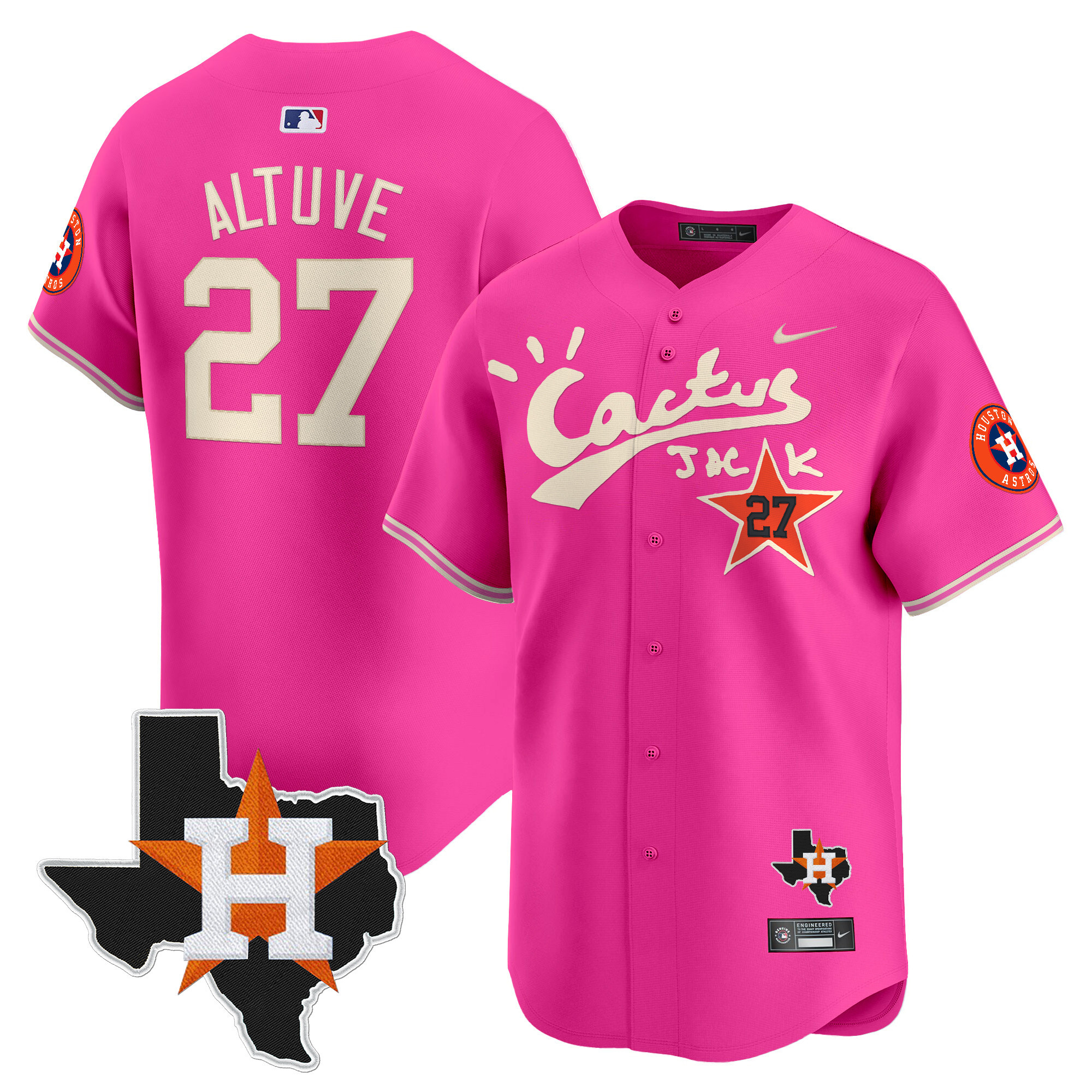 Men’s Houston Astros Cactus Jack Patch Vapor Premier Limited Jersey V11 – Stitched