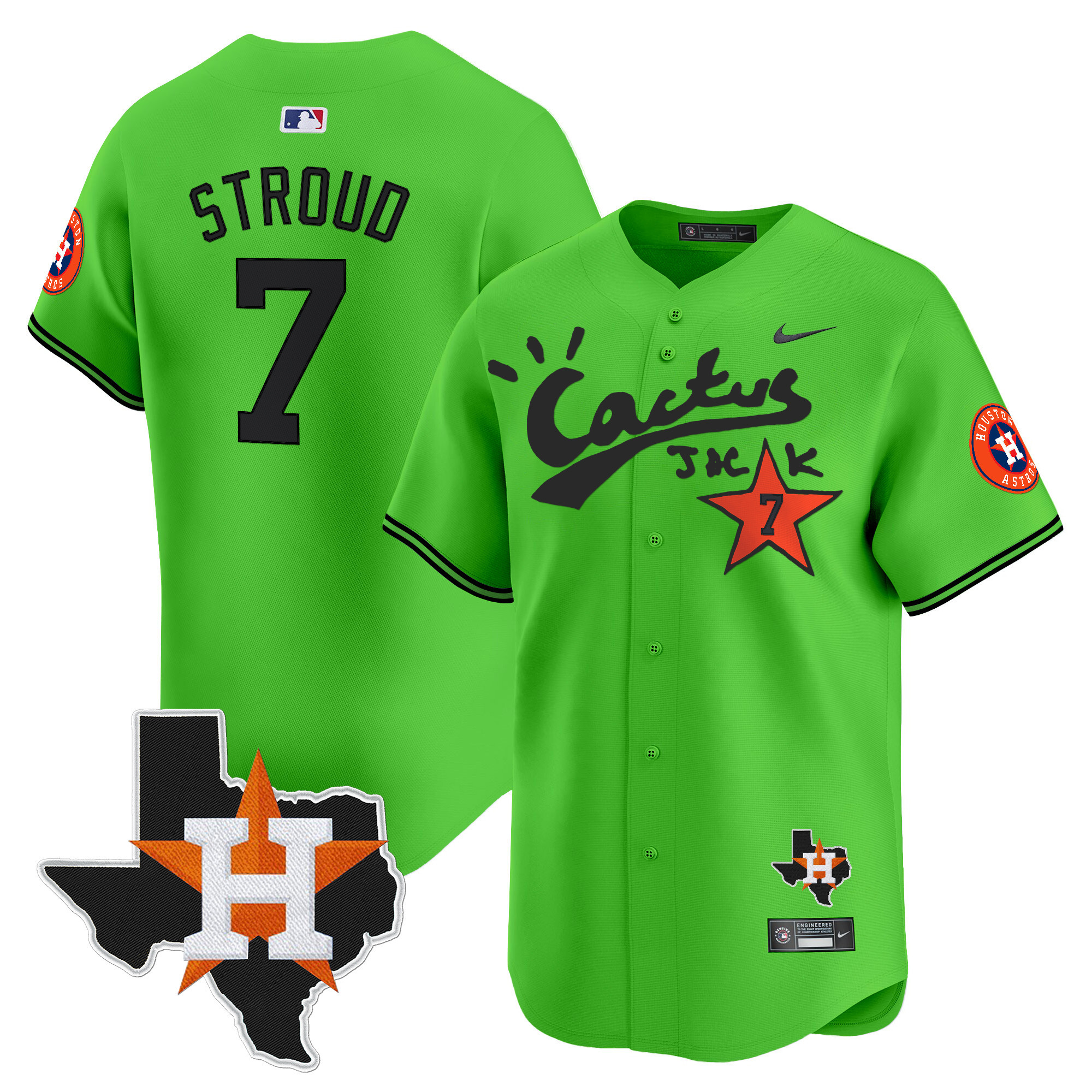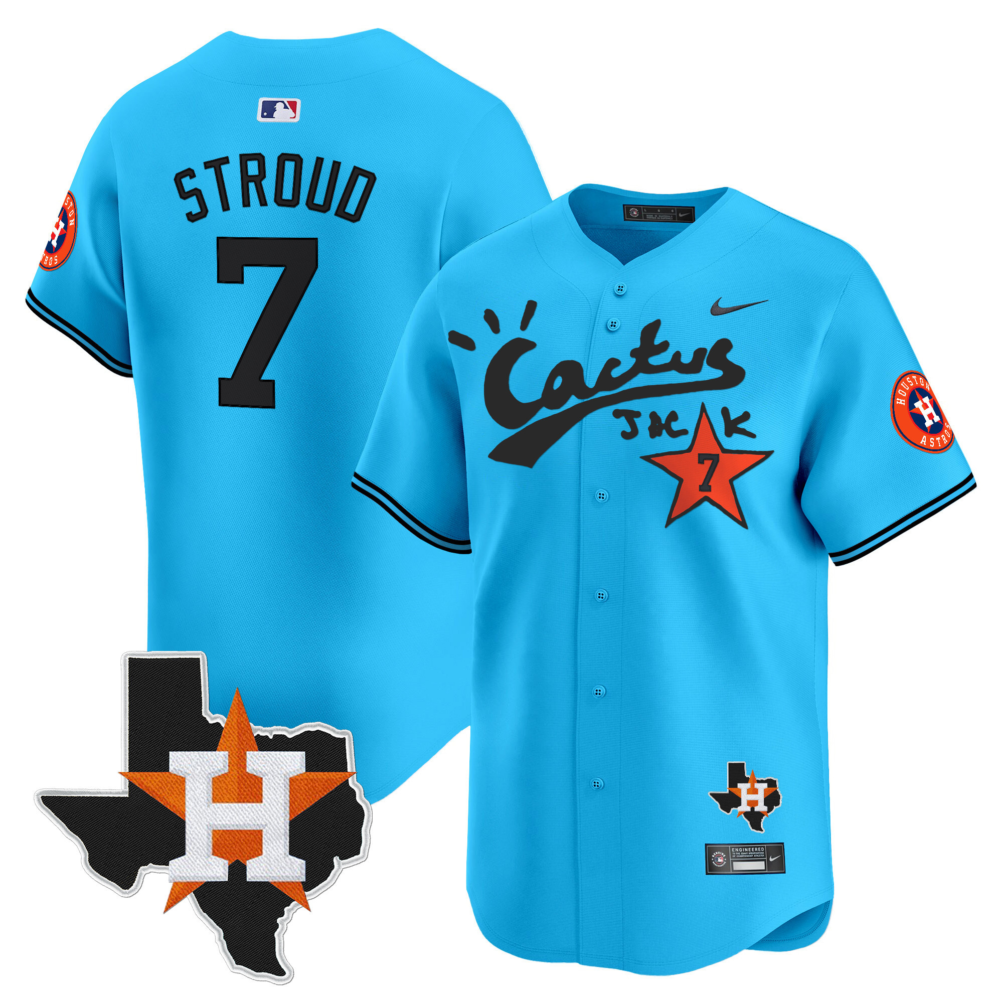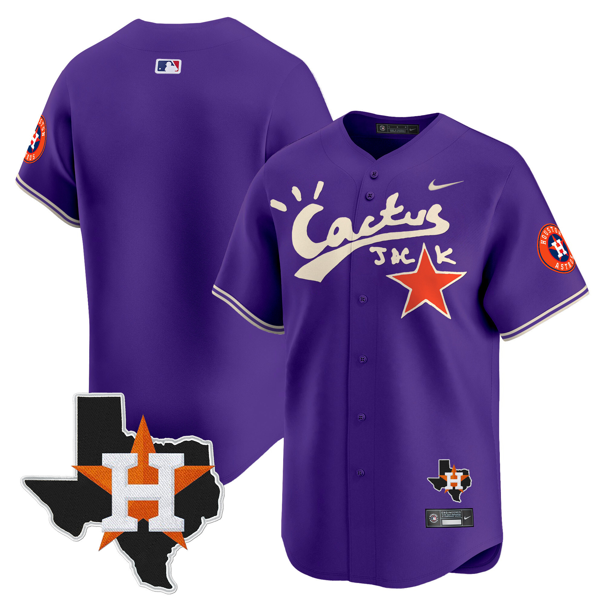 Men’s Houston Astros Cactus Jack Patch Vapor Premier Limited Jersey V11 – Stitched