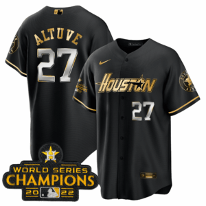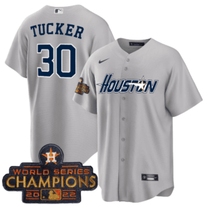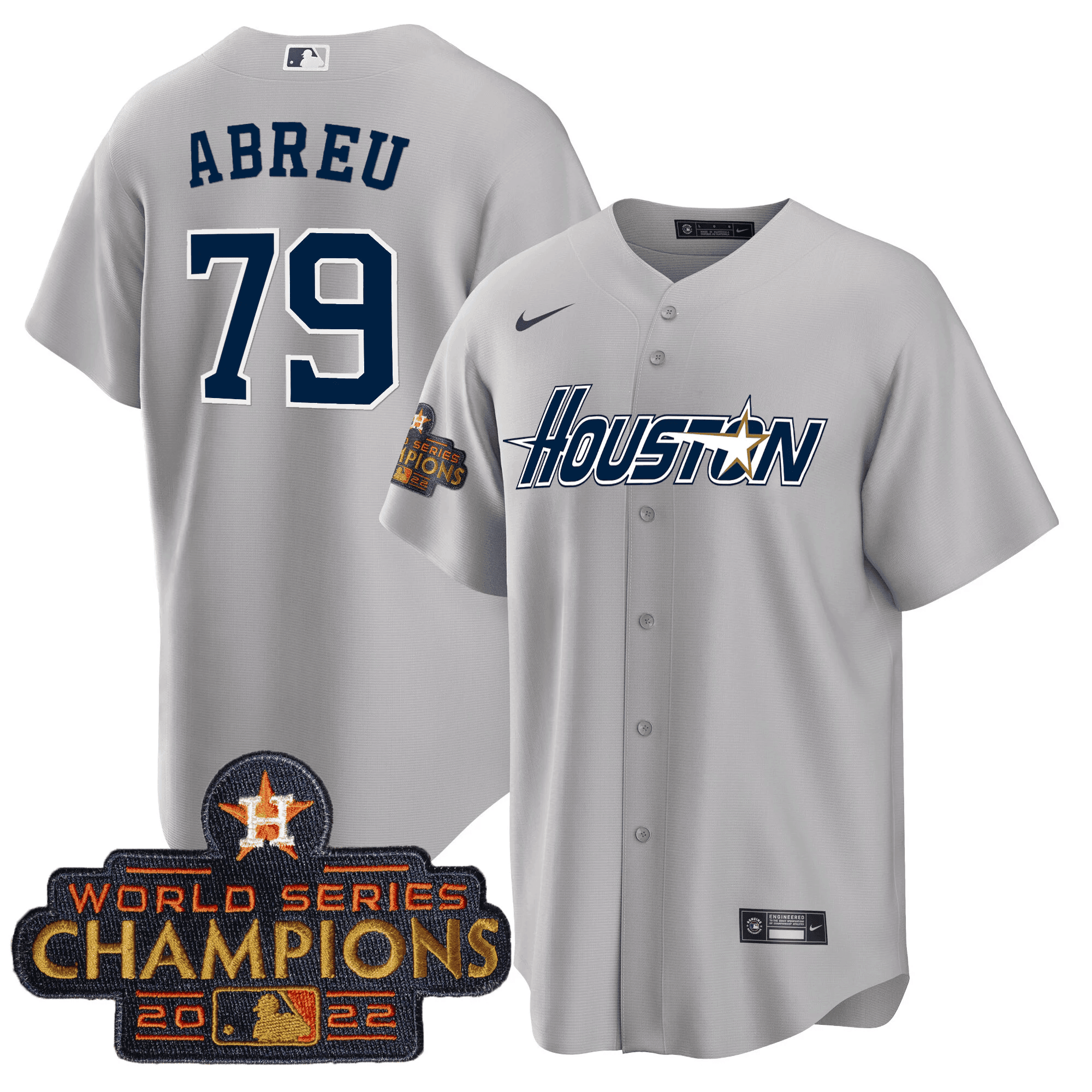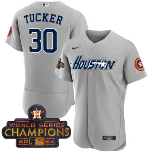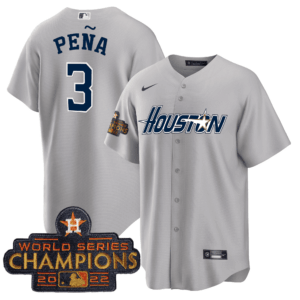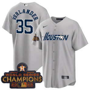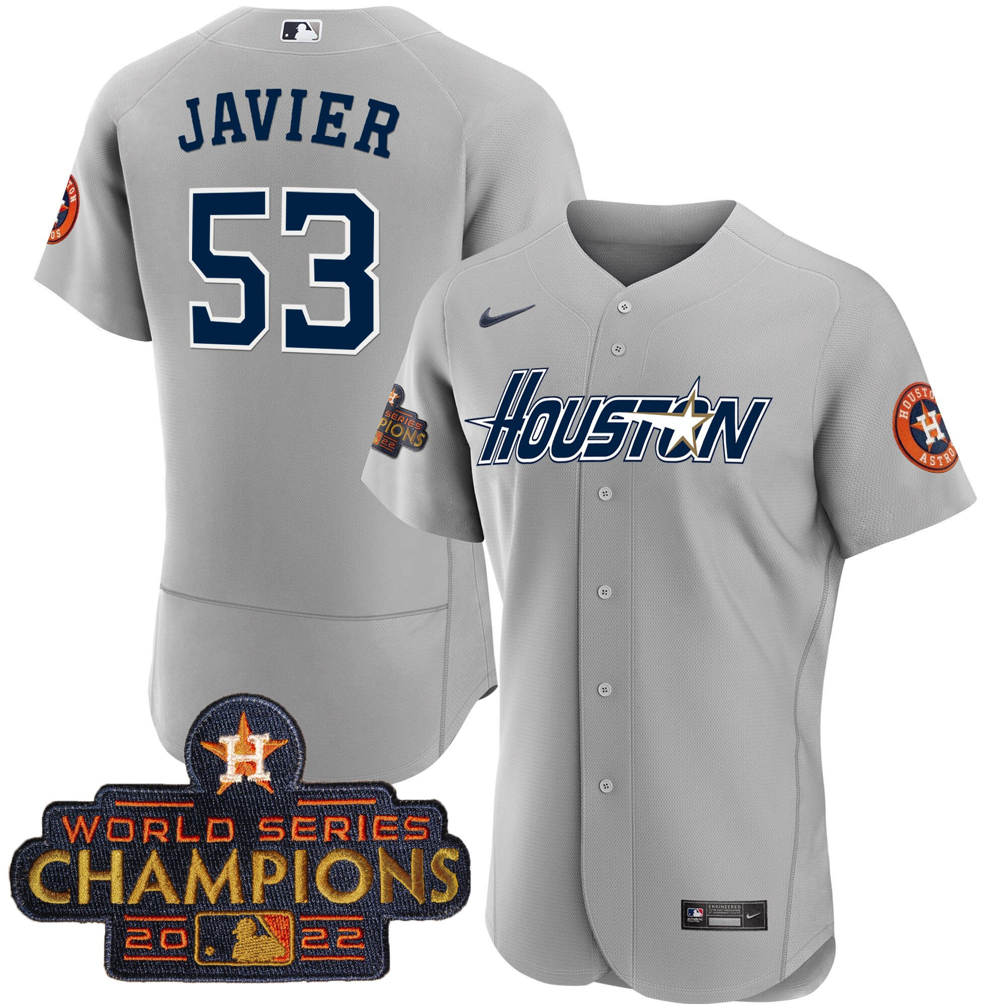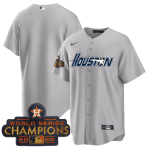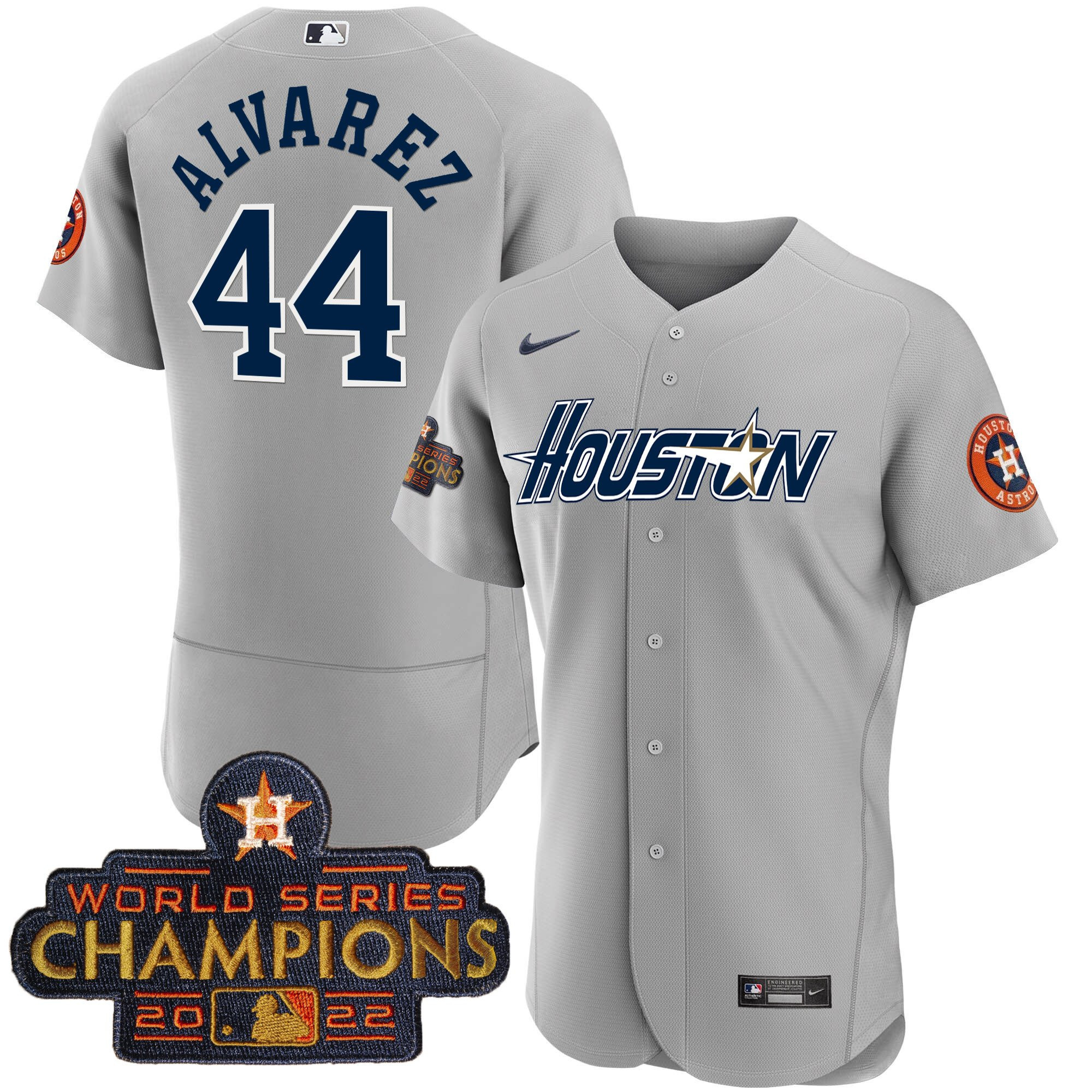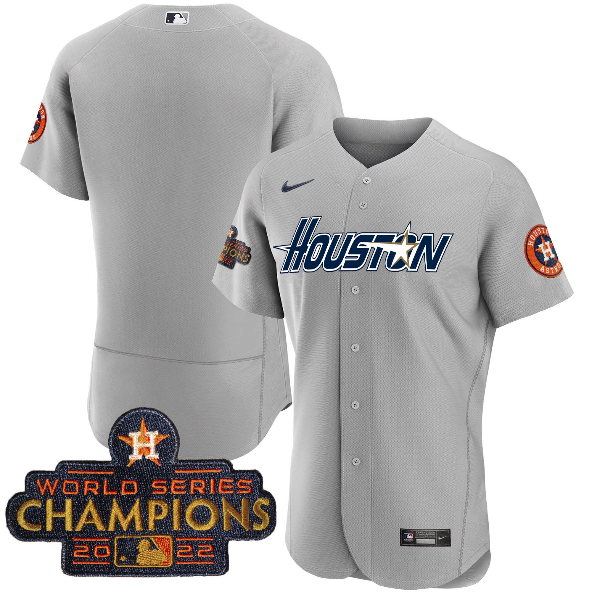 Men’s Houston Astros Gray & Gold 2023 Champions Patch Jersey – All Stitched