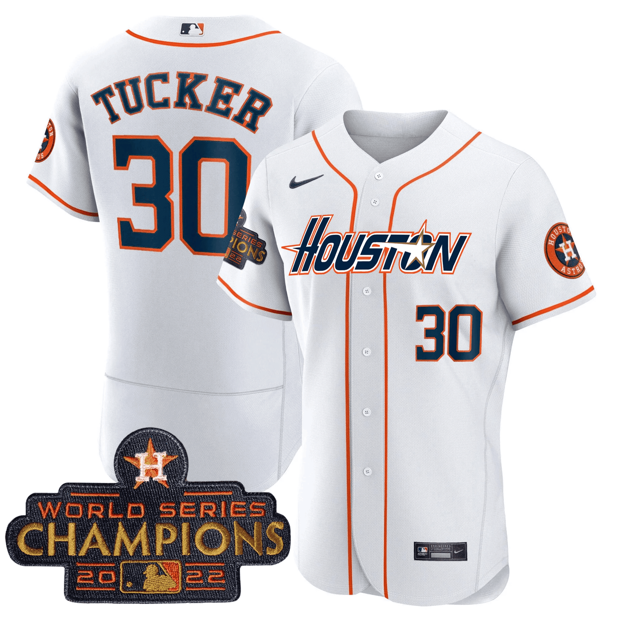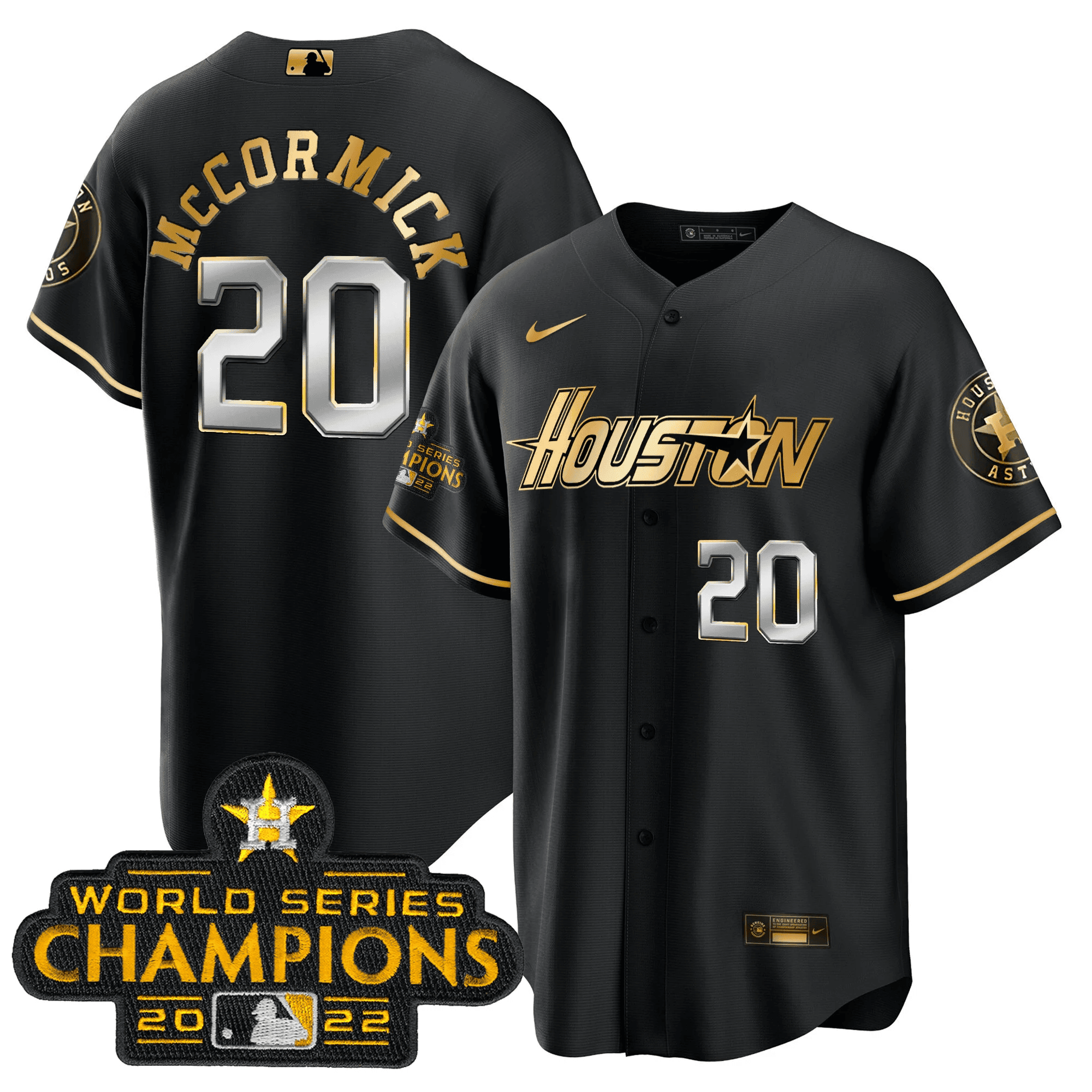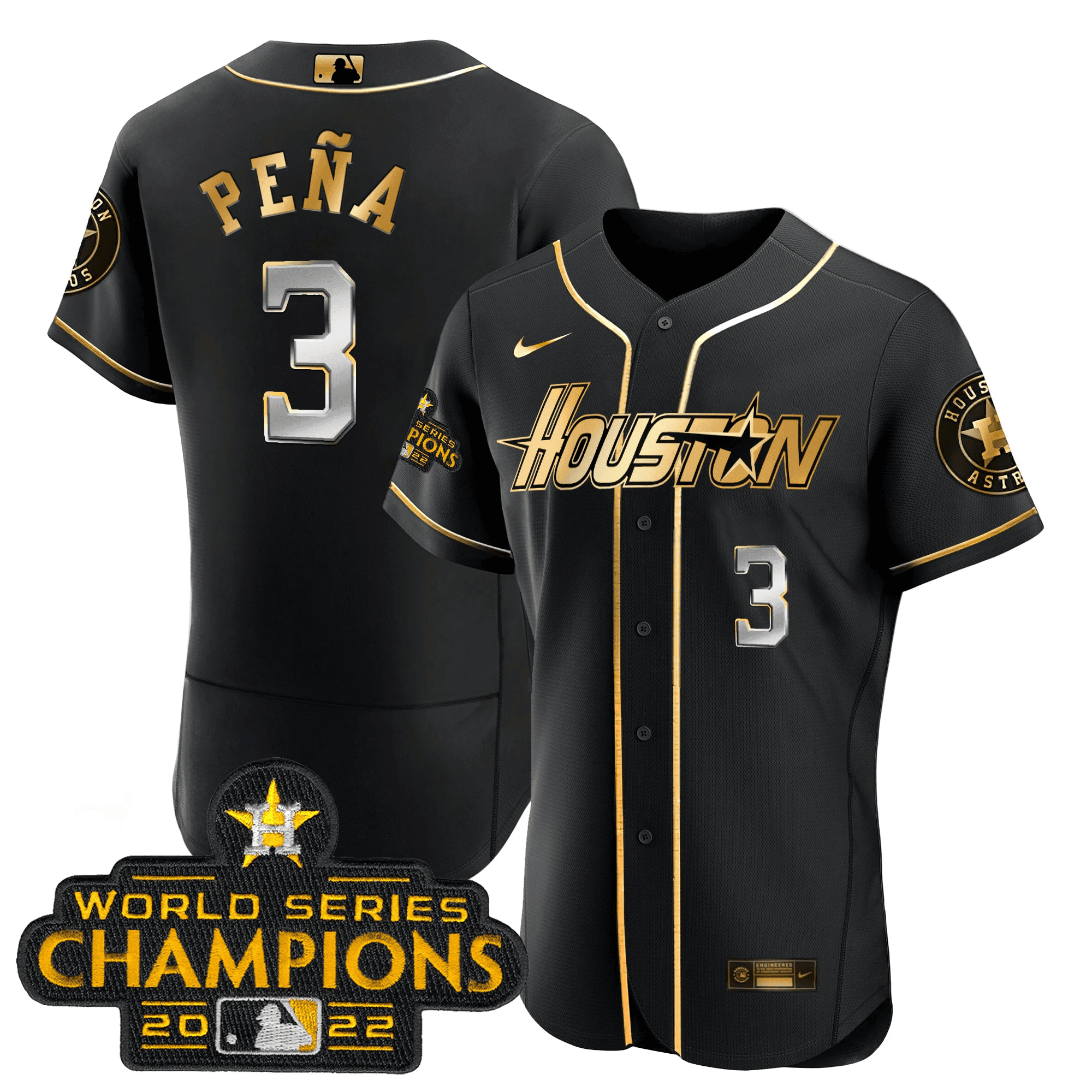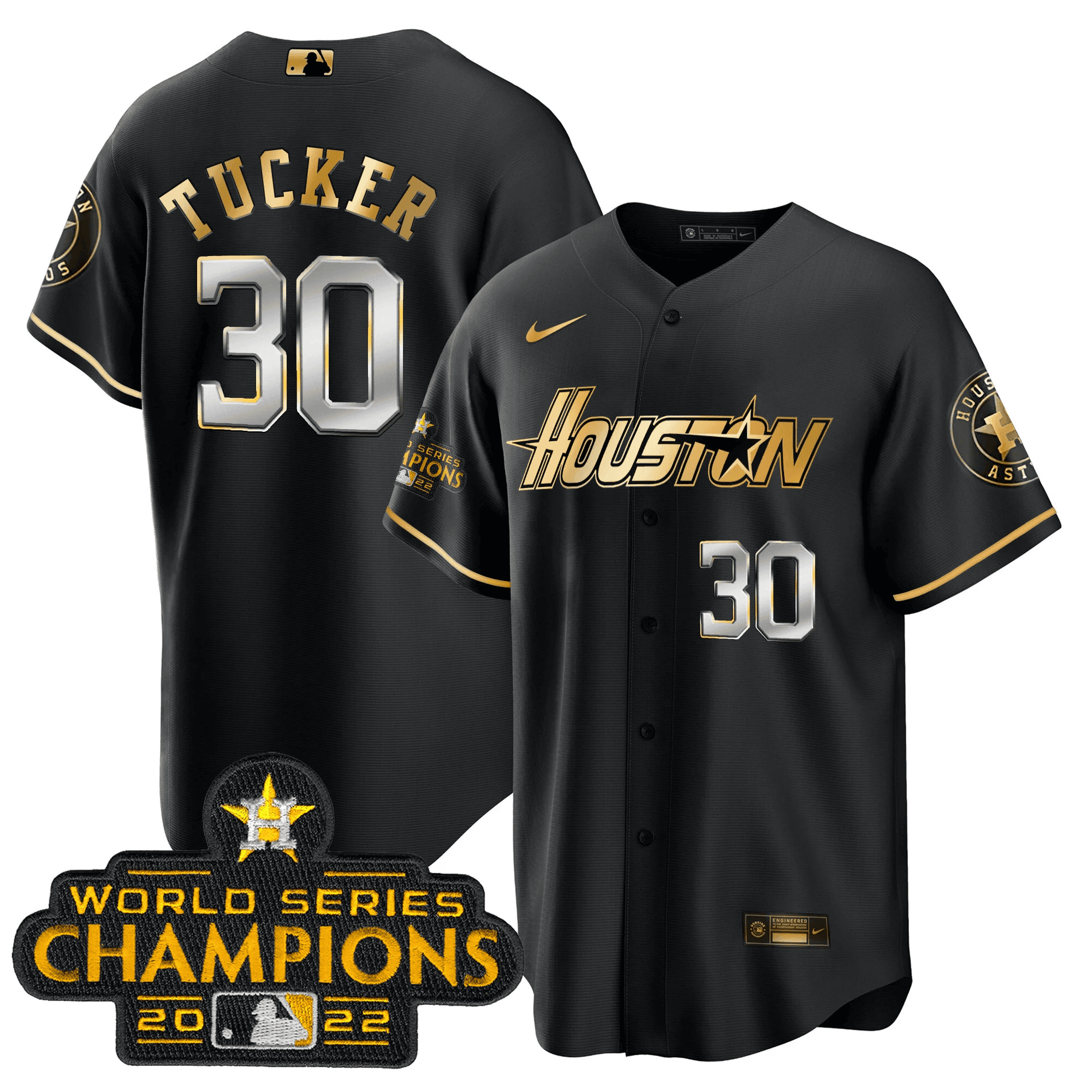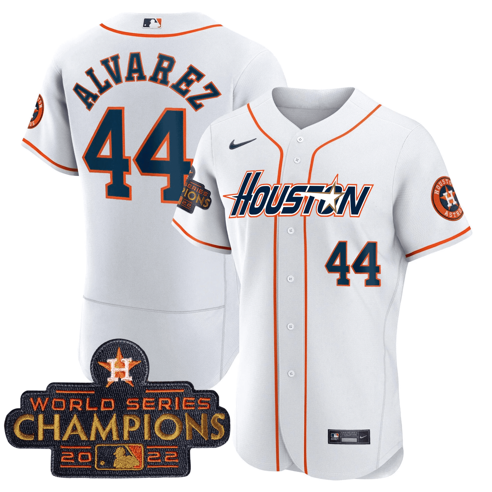 Men’s Houston Astros Gray & Gold 2023 Champions Patch Jersey – All Stitched