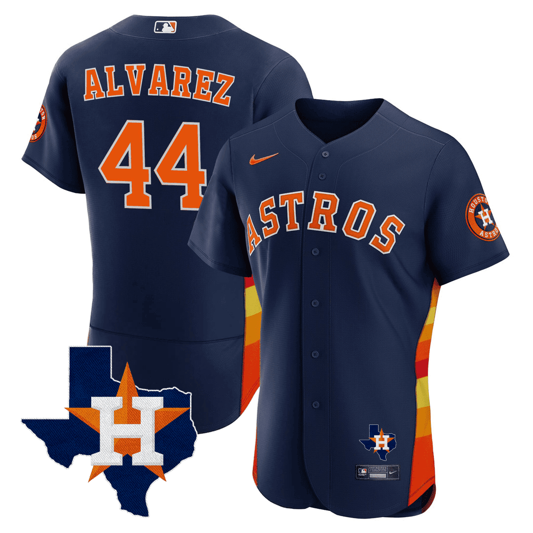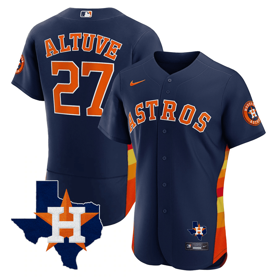Men’s Houston Astros Texas State Patch Jersey – Navy – All Stitched