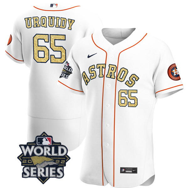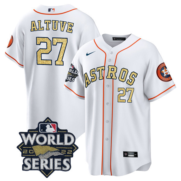 Men’s Houston Astros White Gold 2022 World Series Jersey – All Stitched