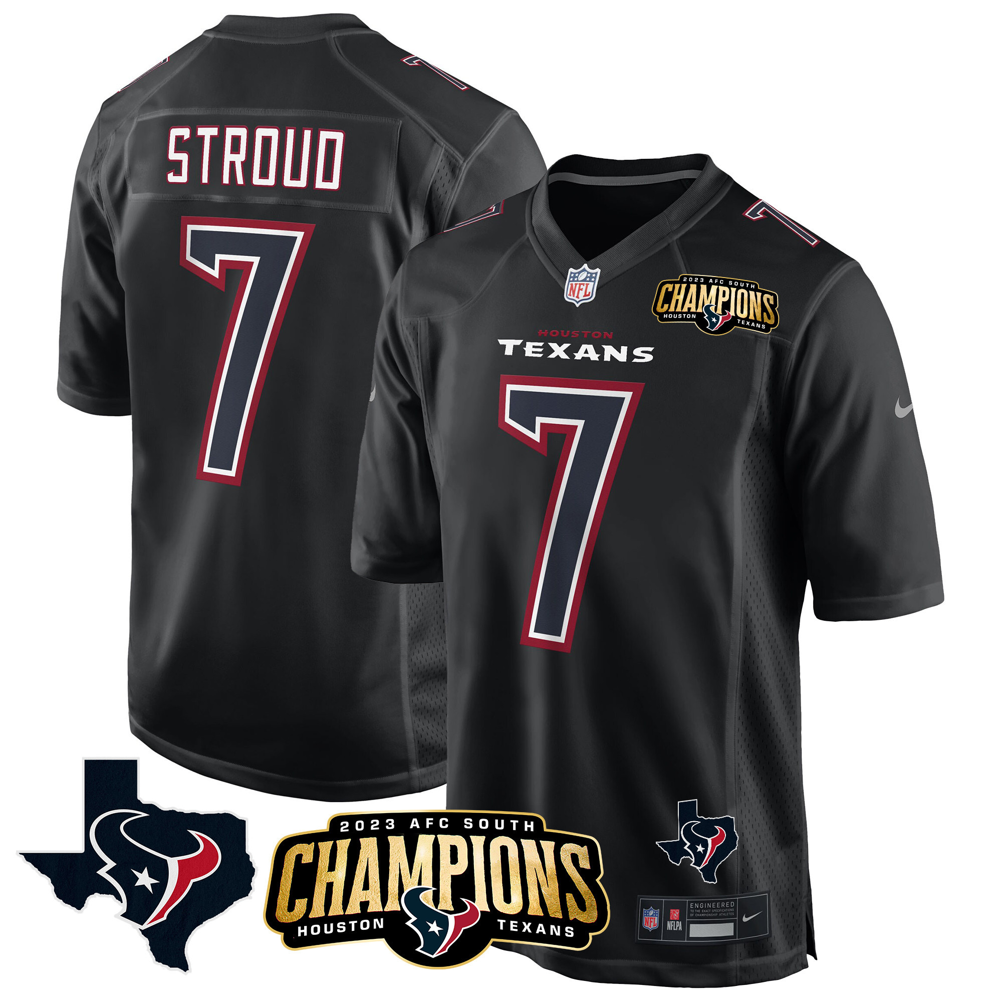 Men’s Houston Texans 2023 AFC South Champions Patch Game Jersey – All Stitched