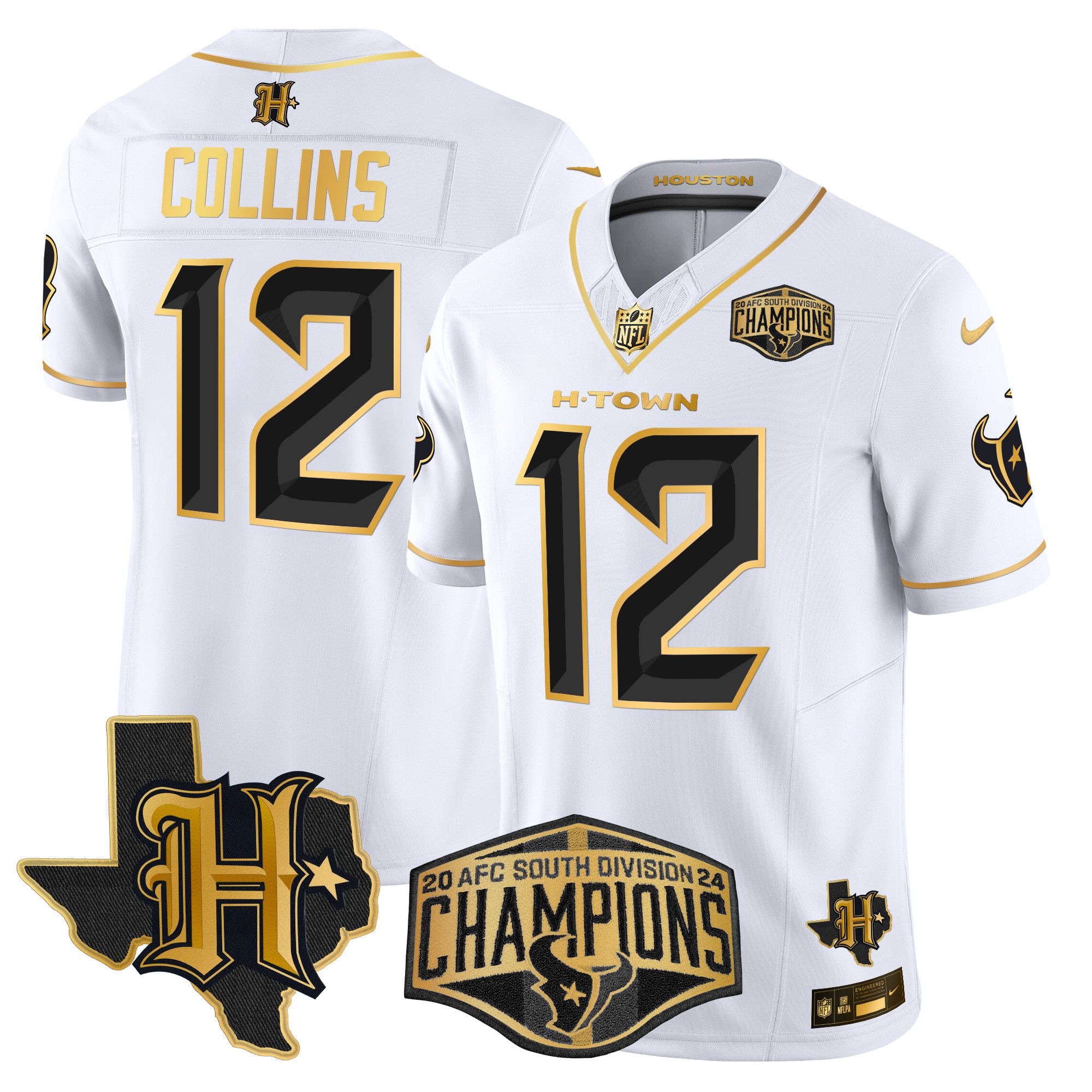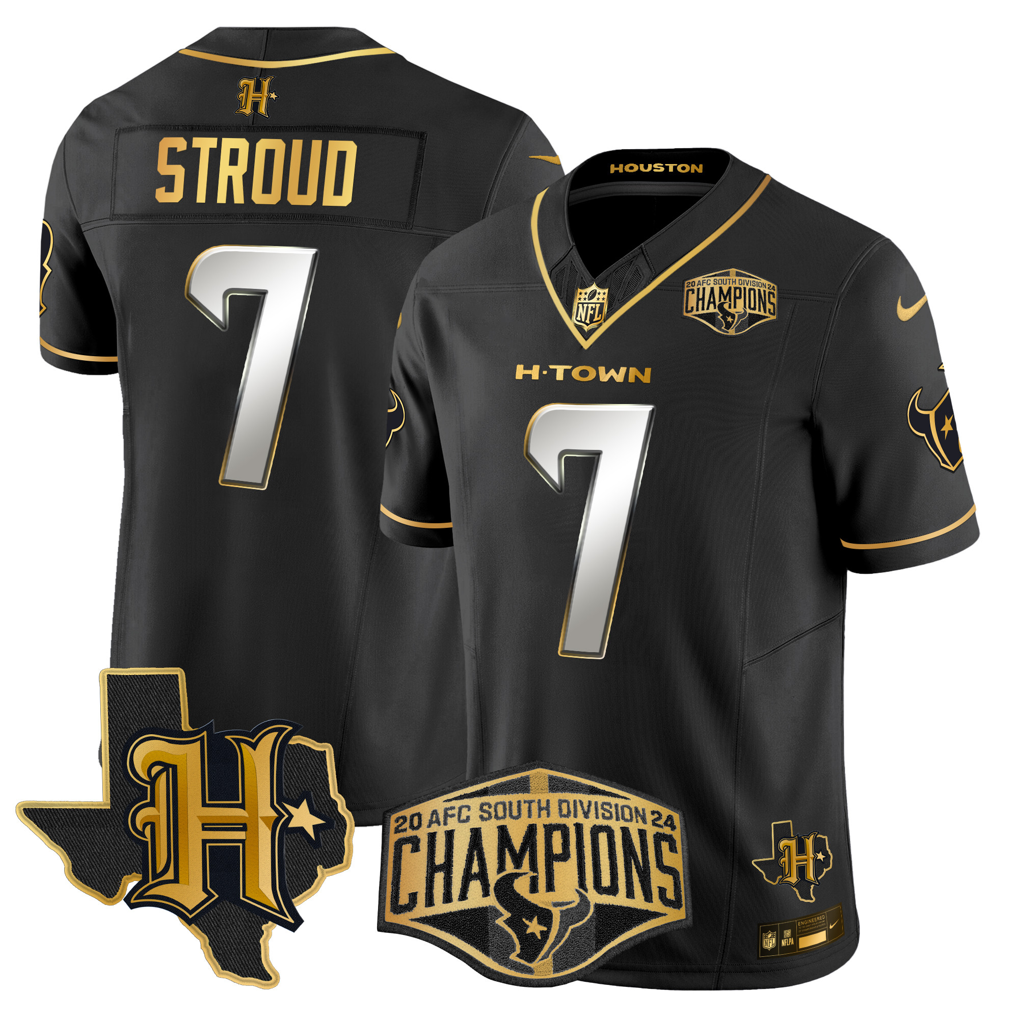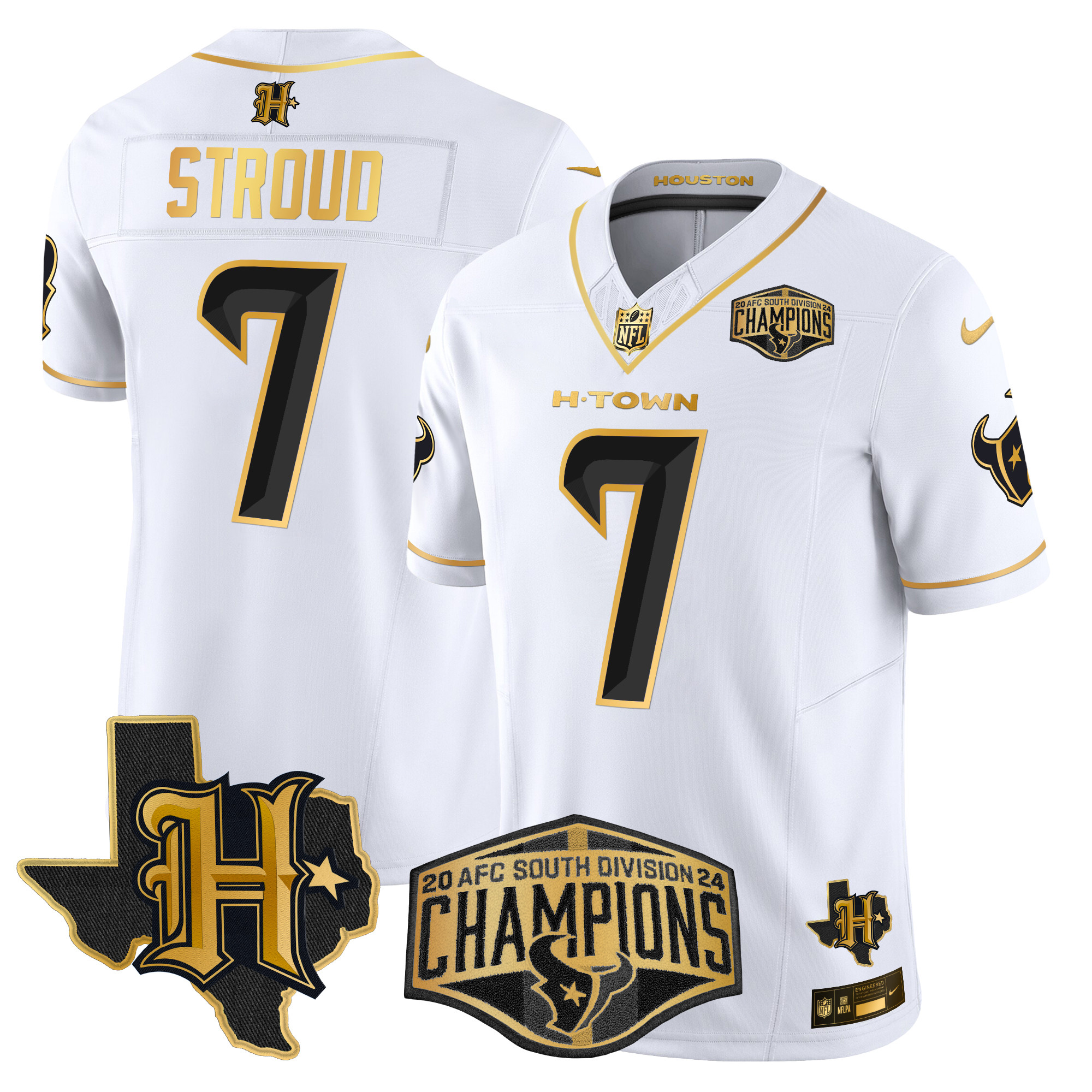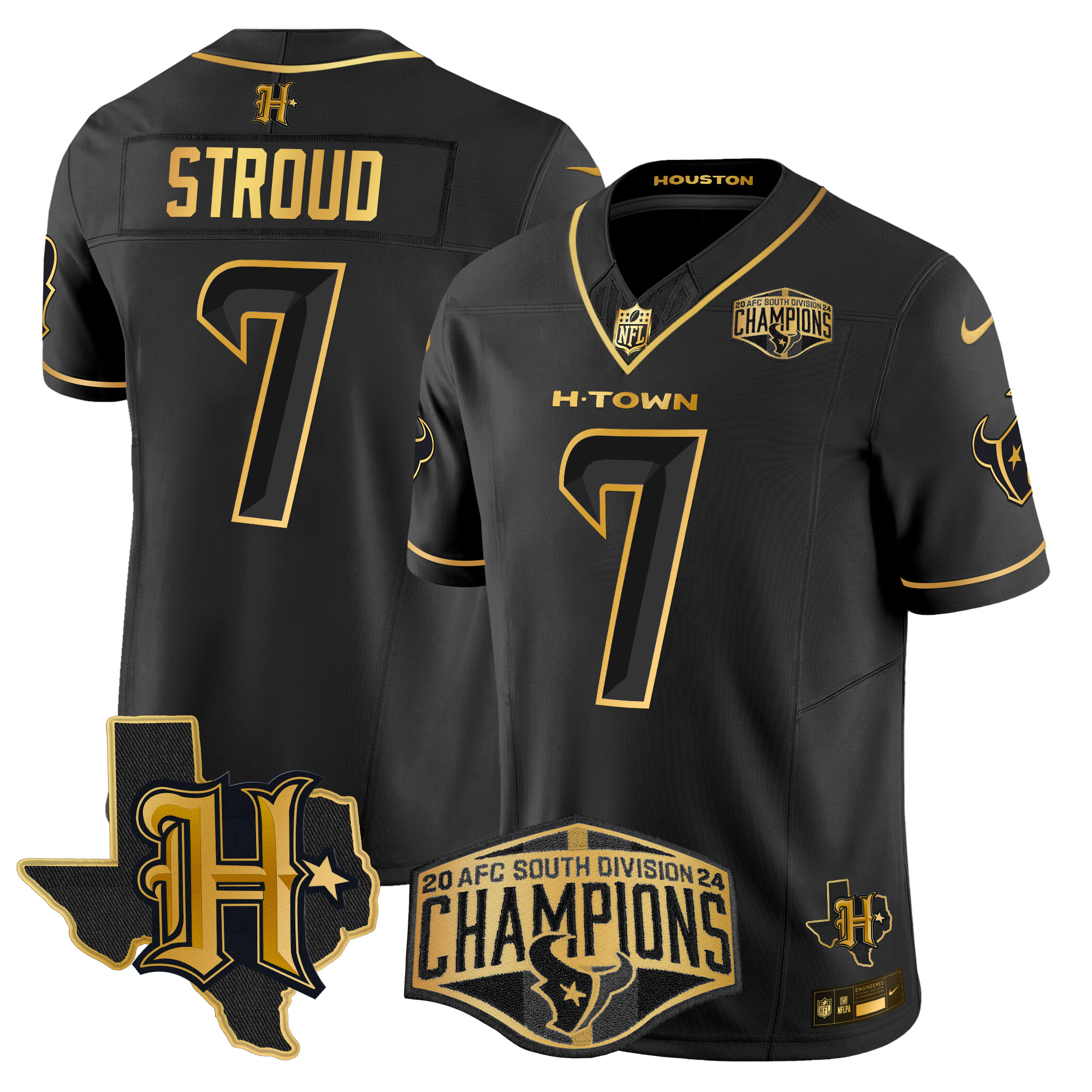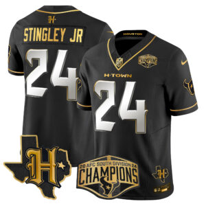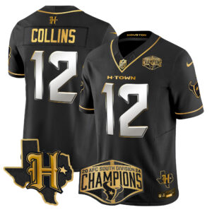 Men’s Houston Texans 2024 AFC South Division Champions Patch Gold Vapor Limited Jersey – All Stitched