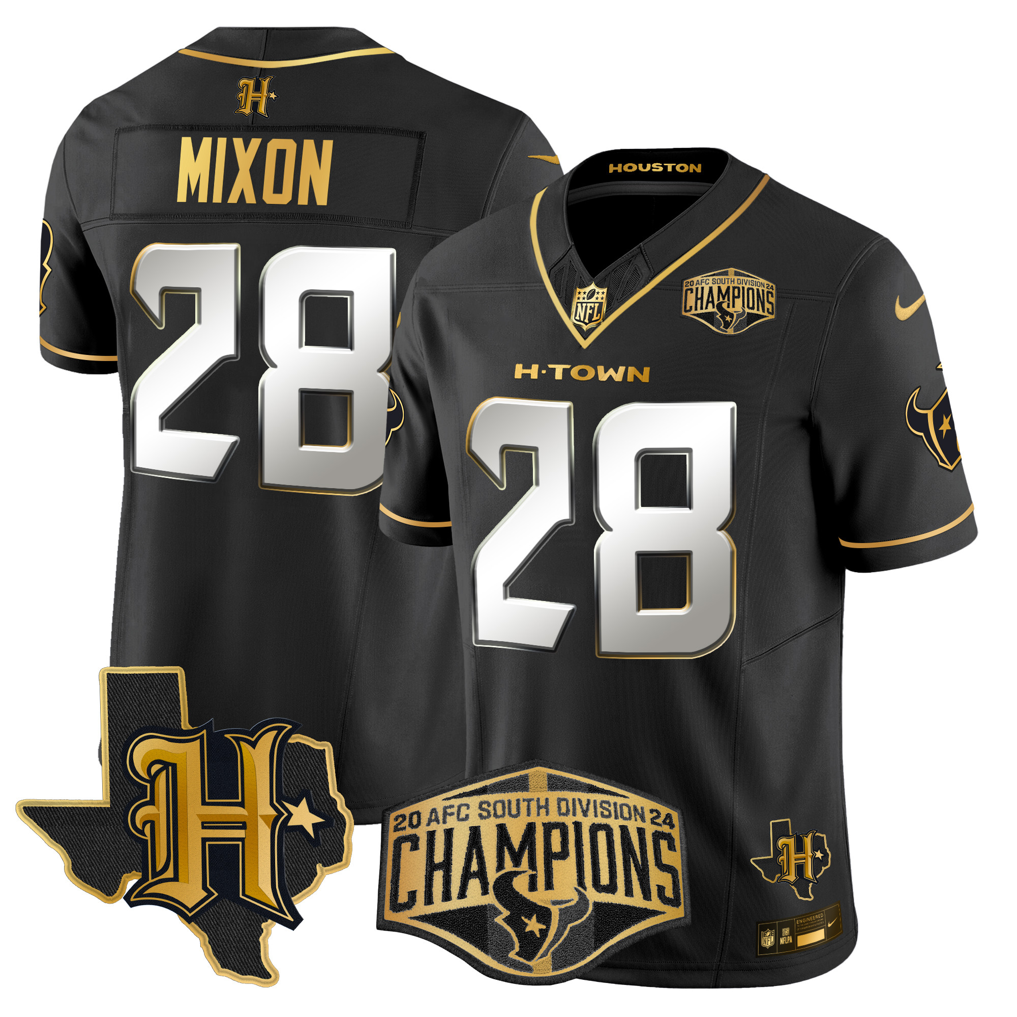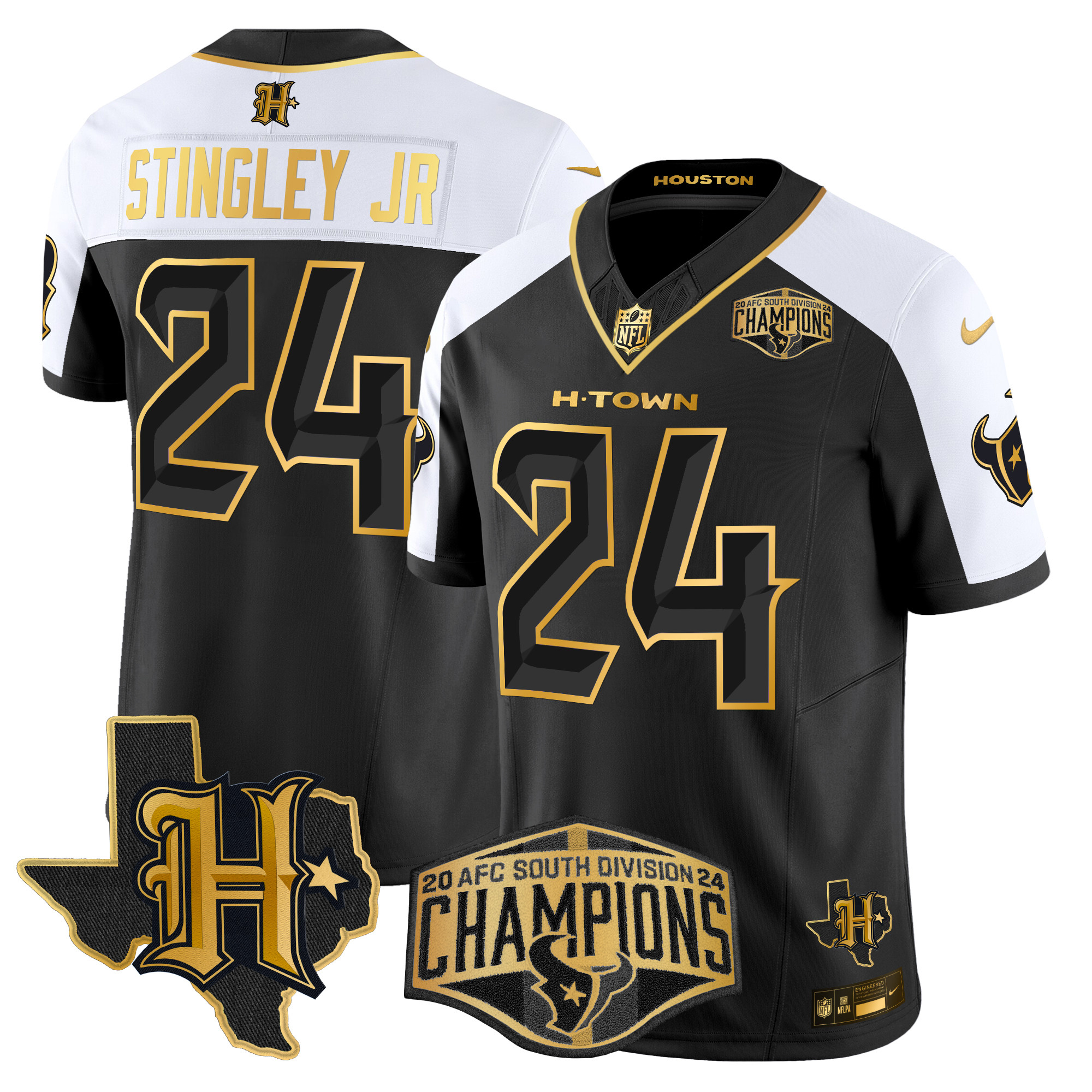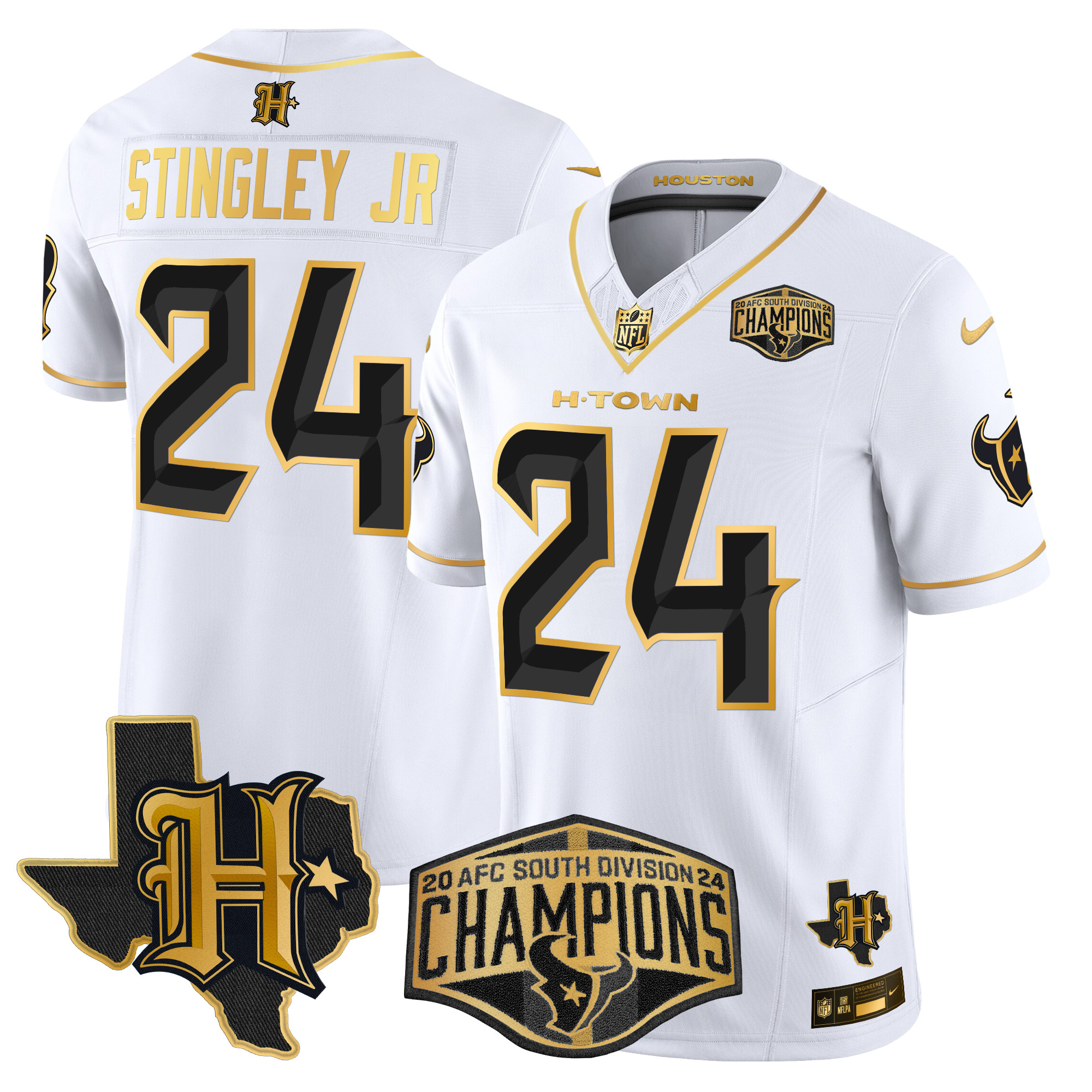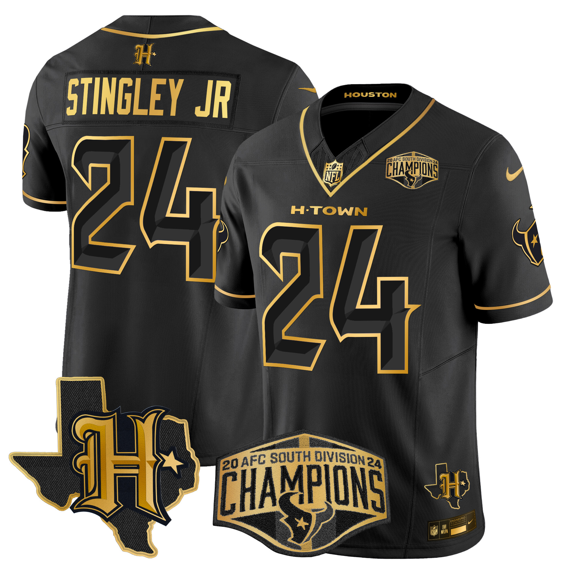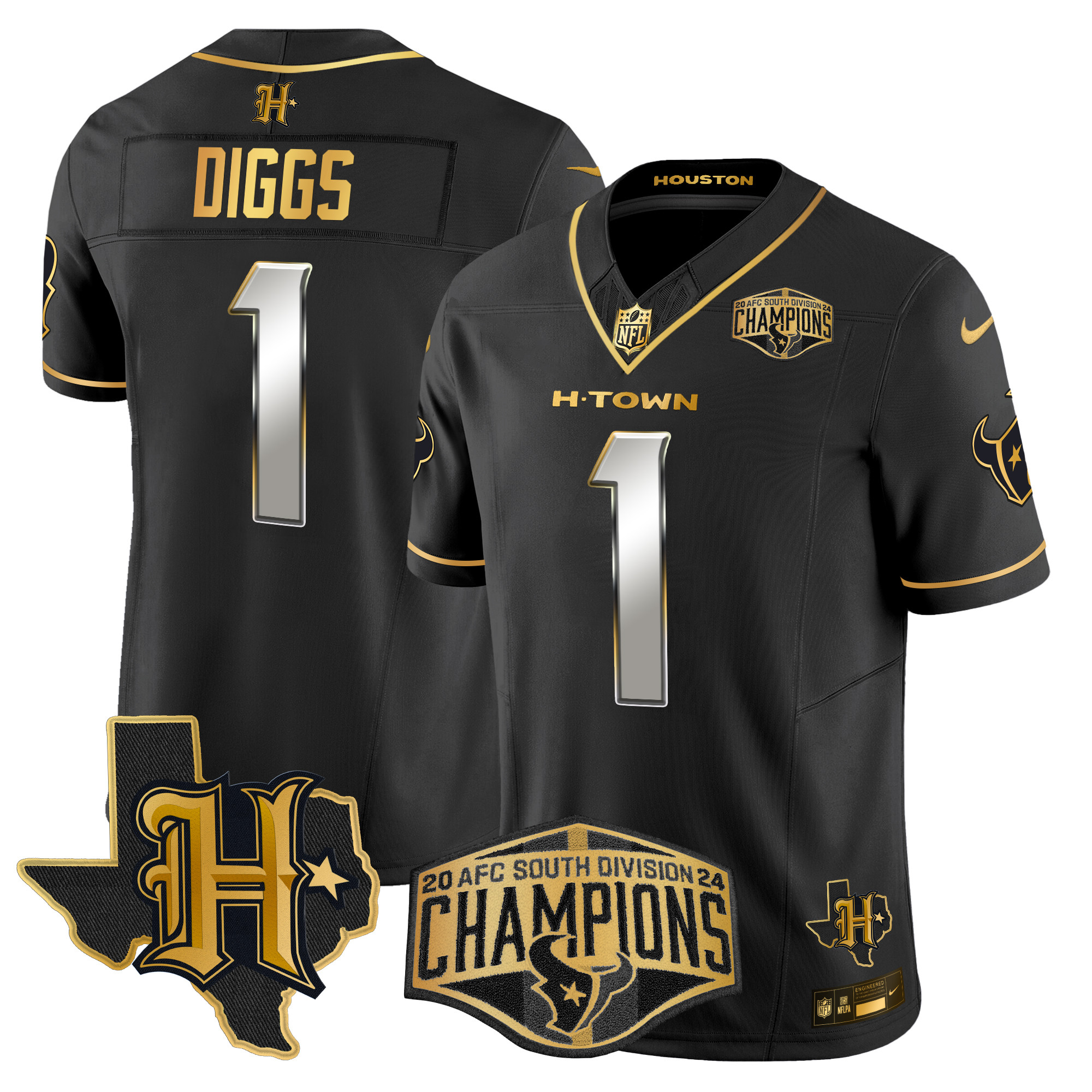 Men’s Houston Texans 2024 AFC South Division Champions Patch Gold Vapor Limited Jersey – All Stitched