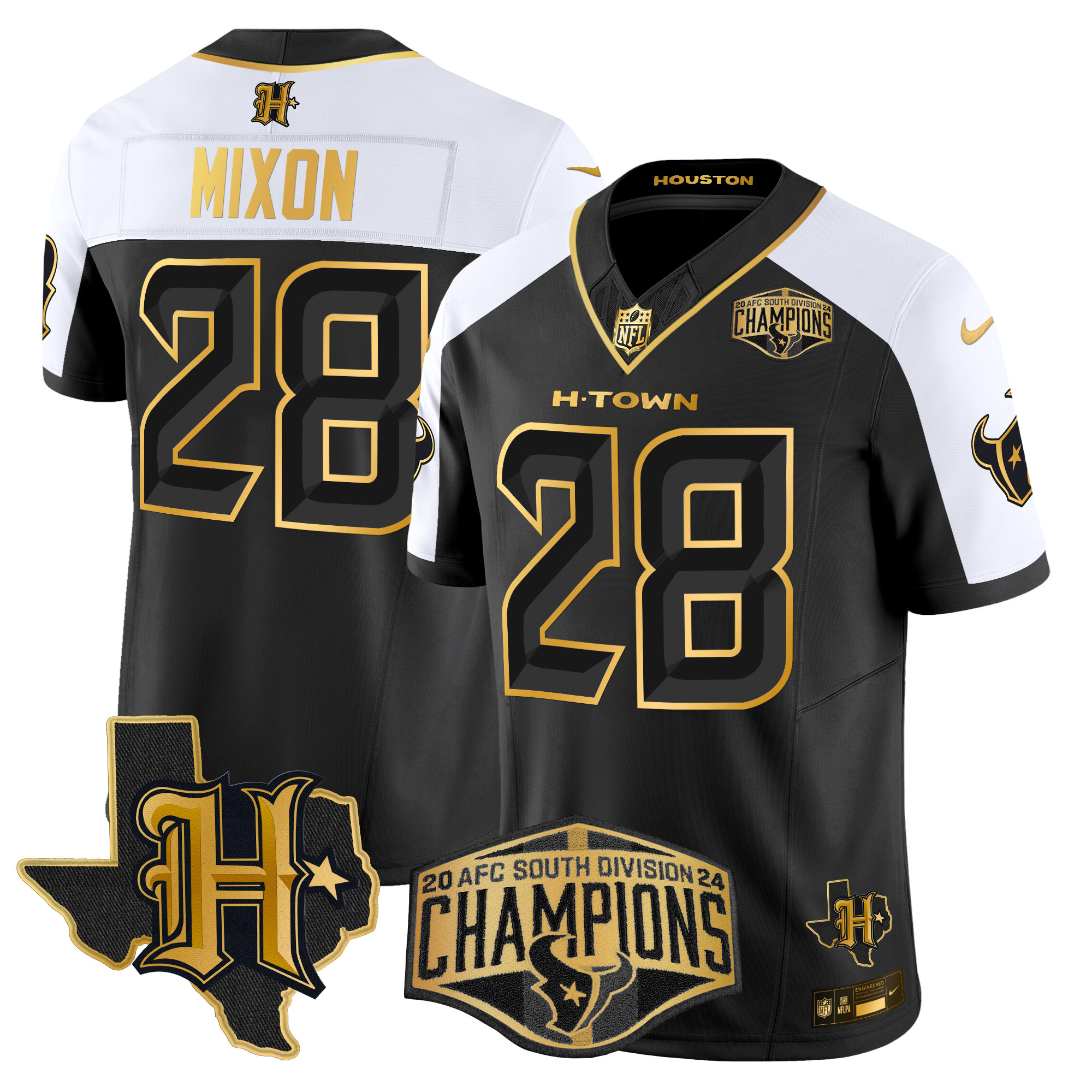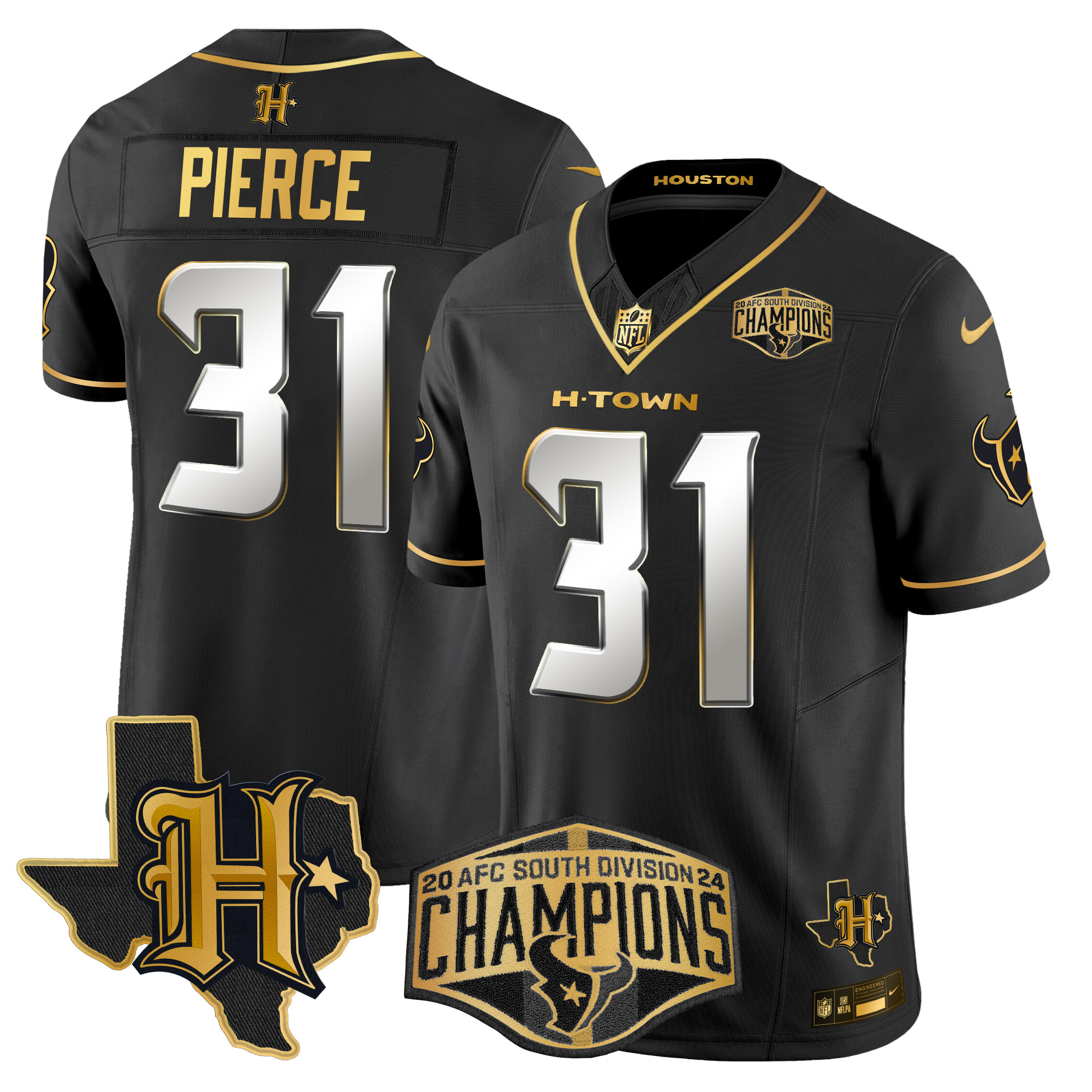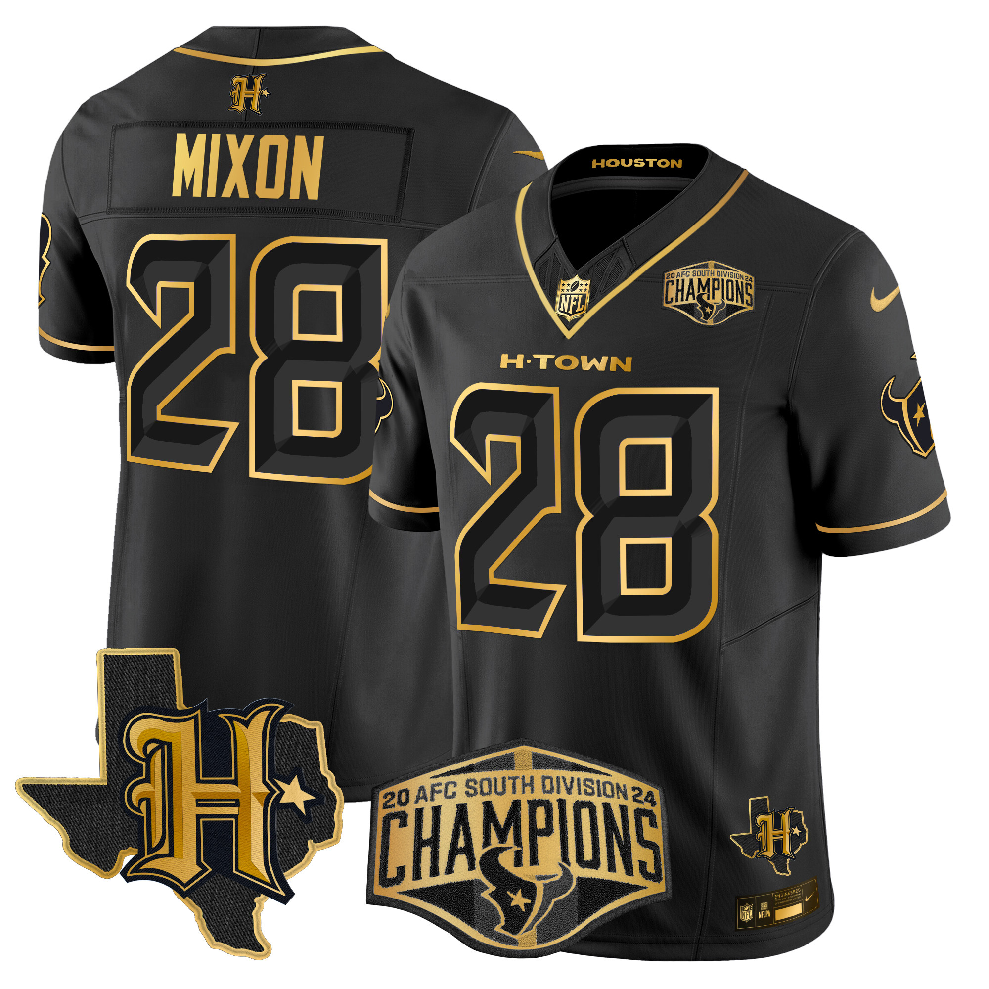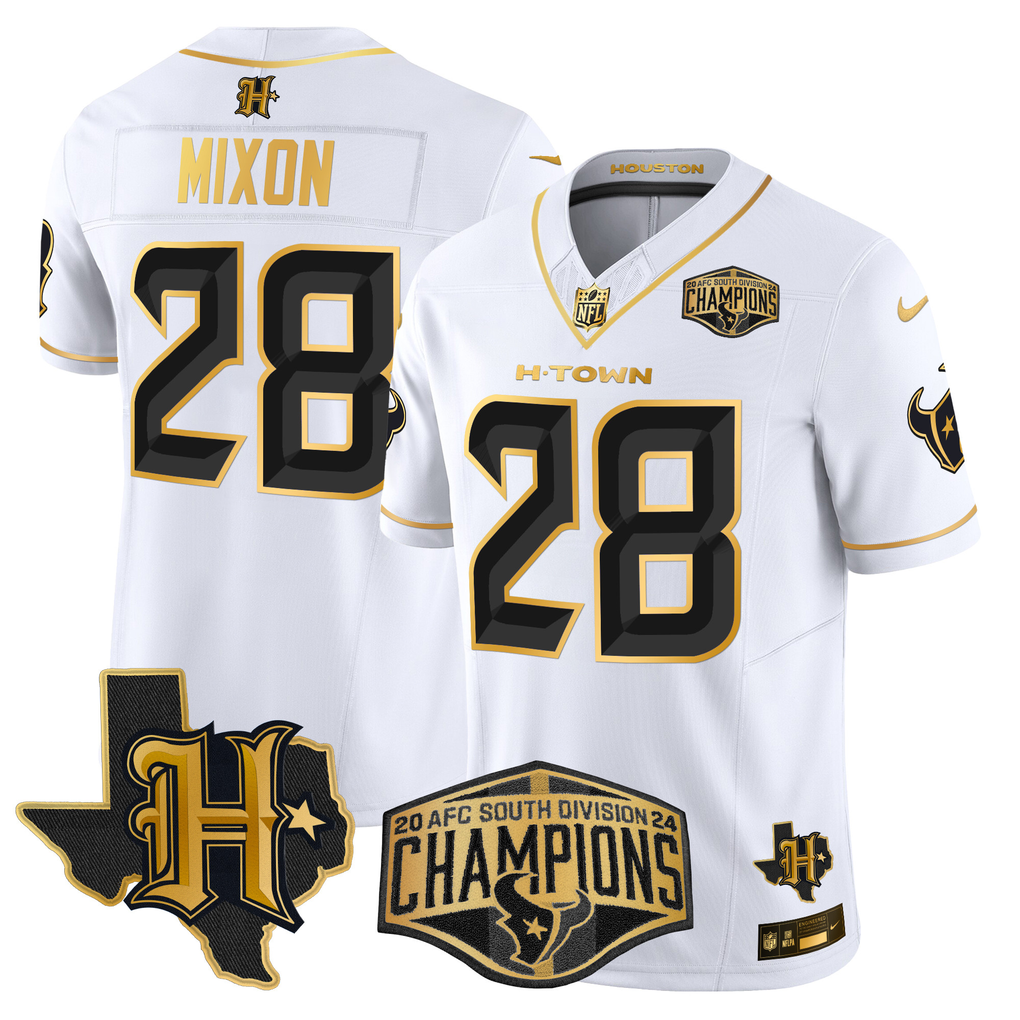 Men’s Houston Texans 2024 AFC South Division Champions Patch Gold Vapor Limited Jersey – All Stitched