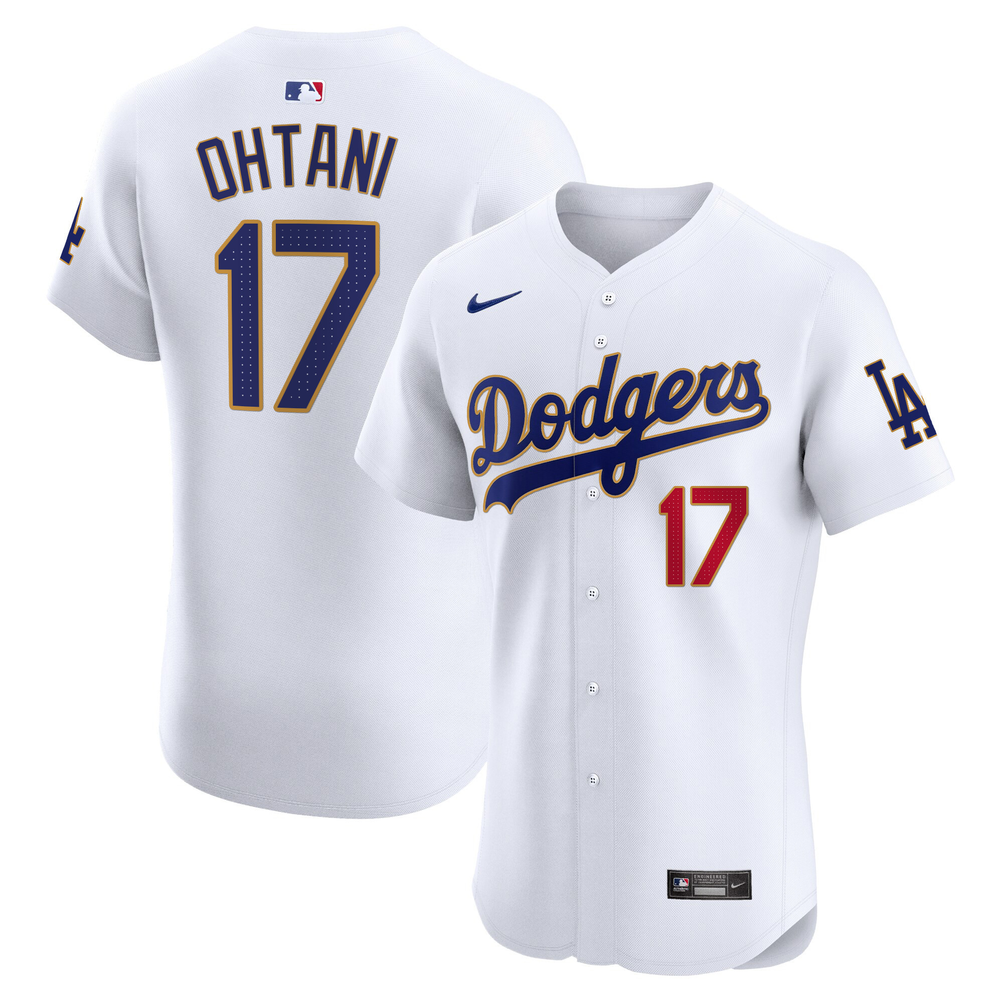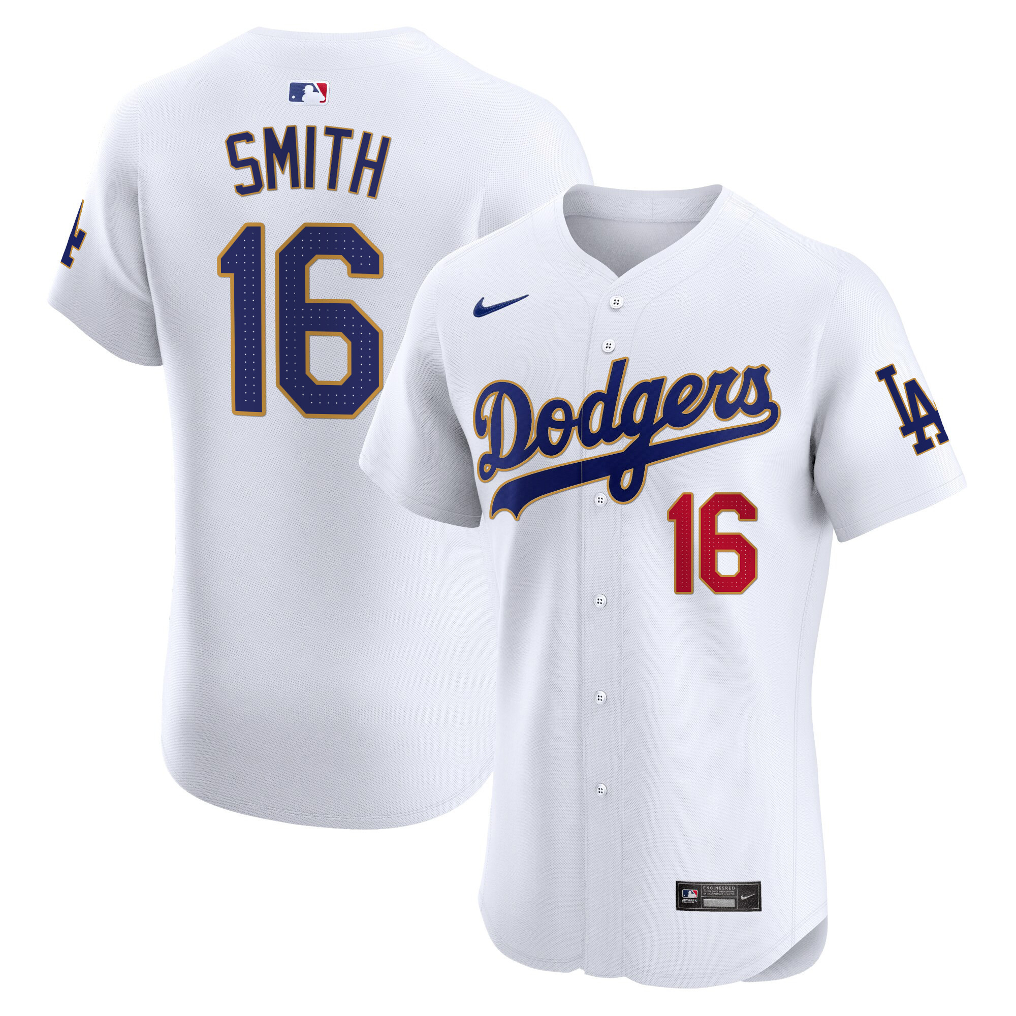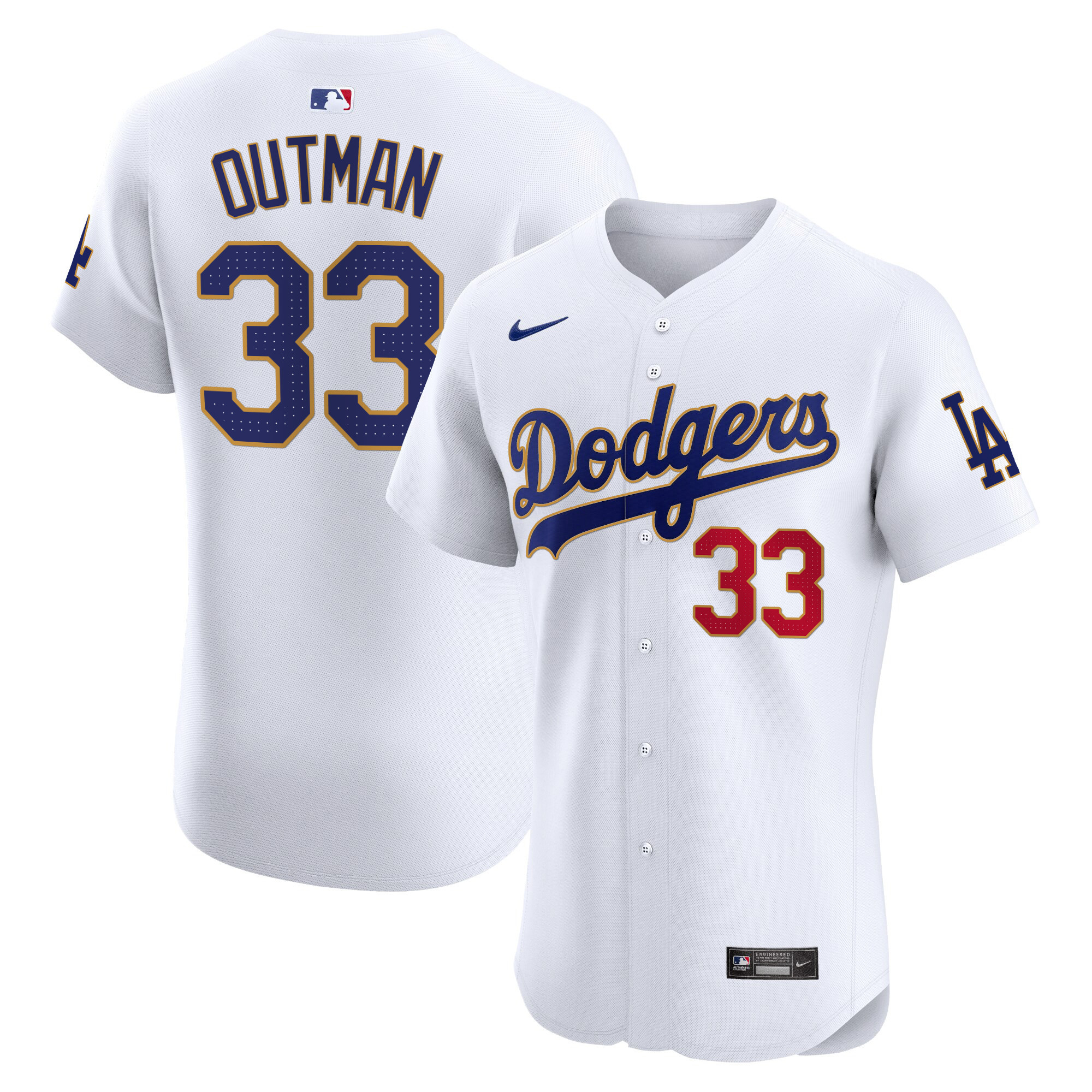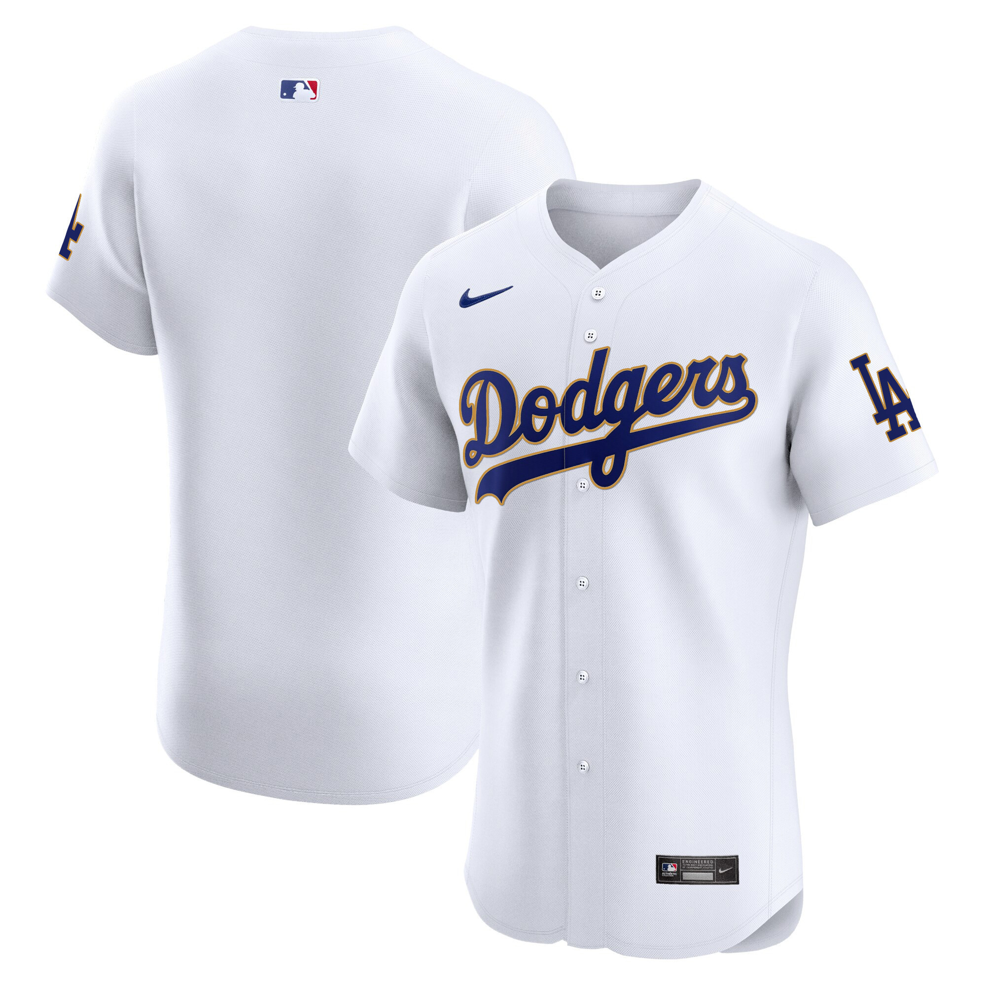 Men’s Los Angeles Dodgers Gold Trim Premier Elite Jersey – All Stitched