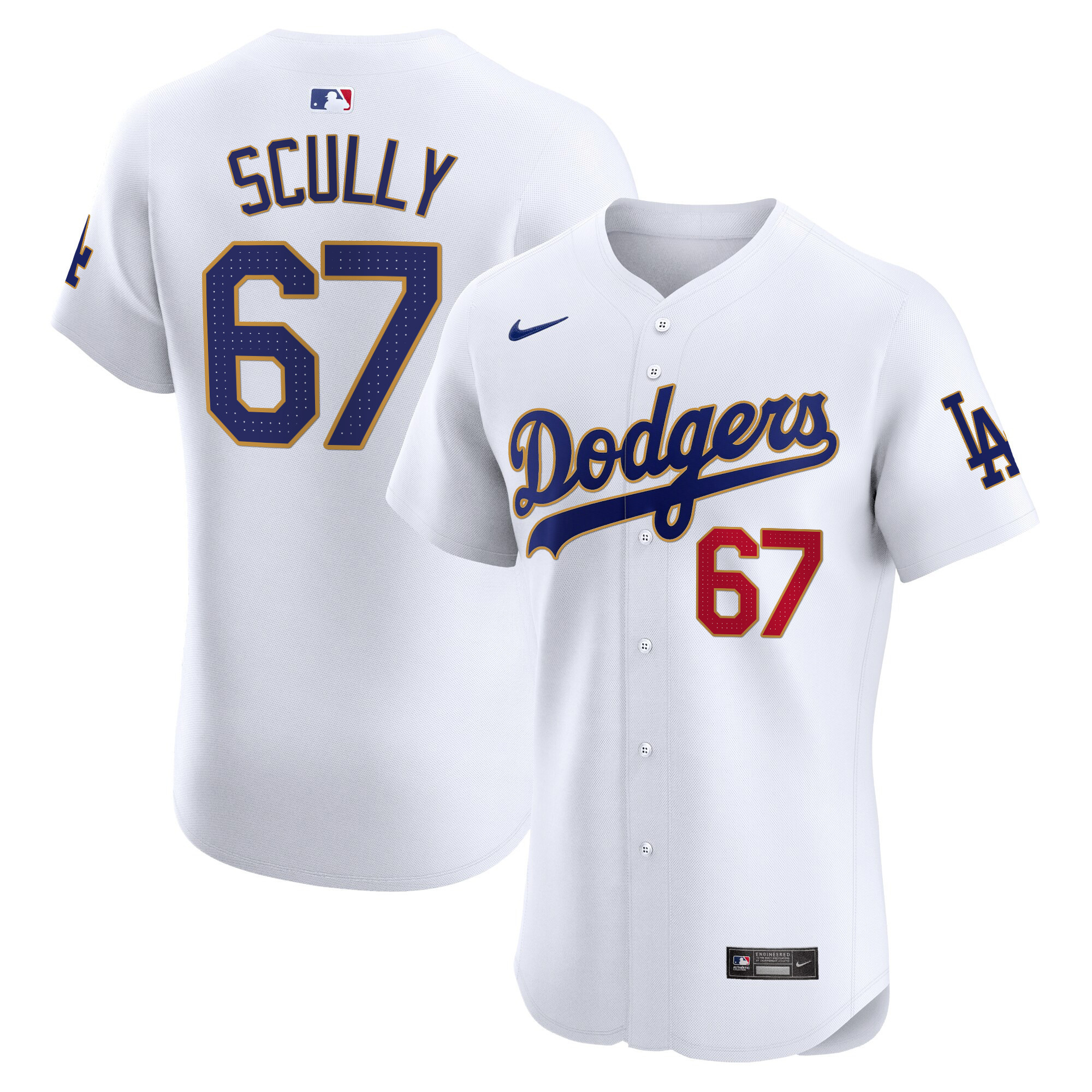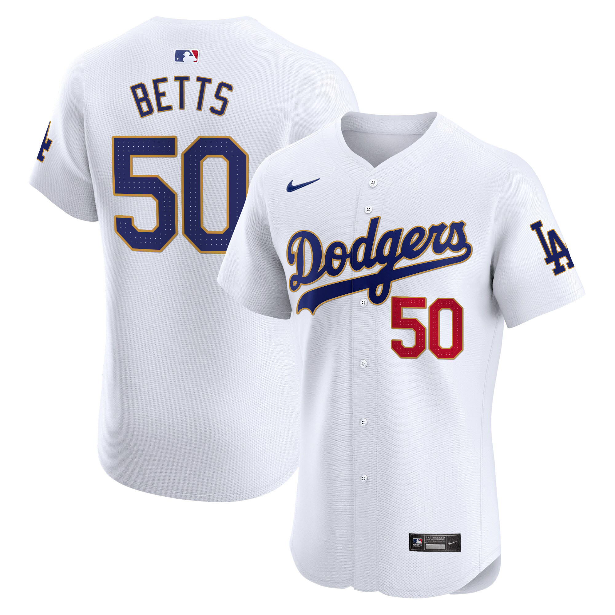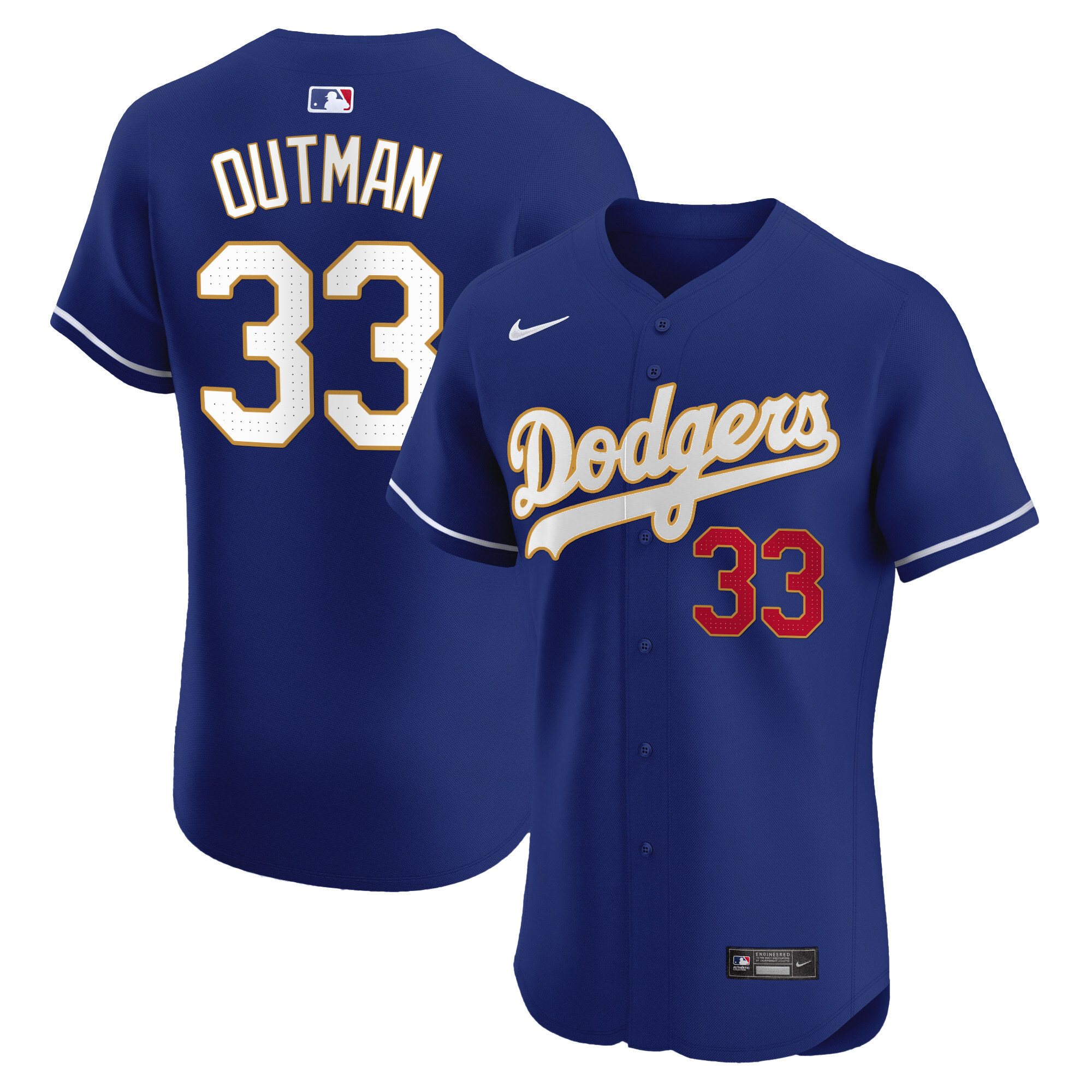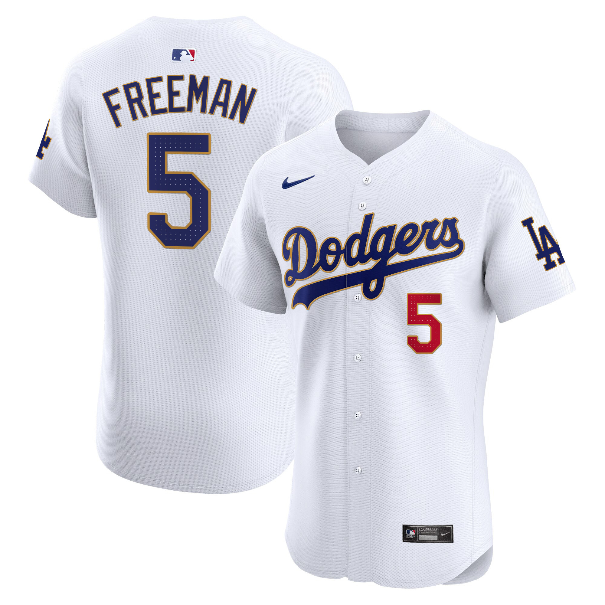 Men’s Los Angeles Dodgers Gold Trim Premier Elite Jersey – All Stitched
