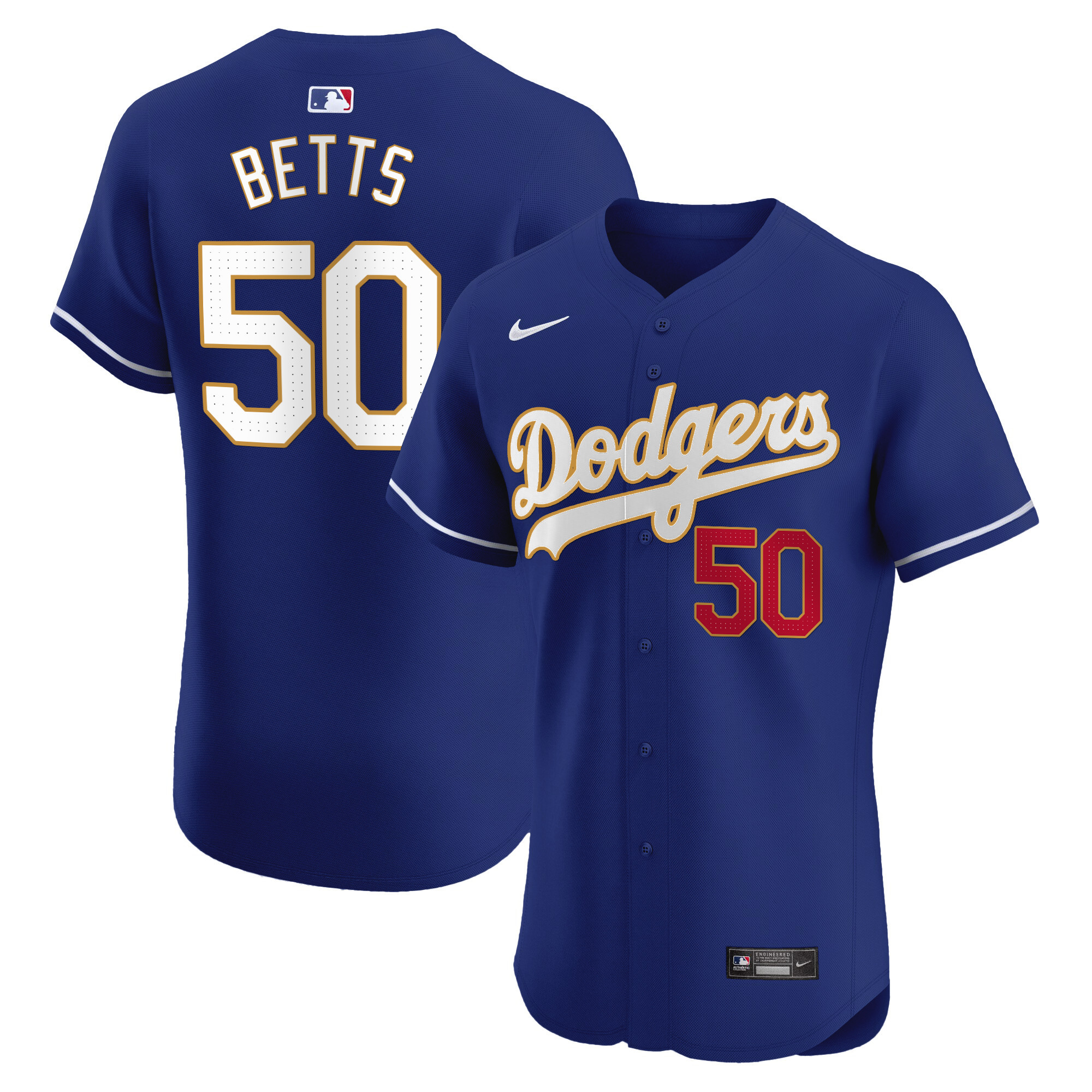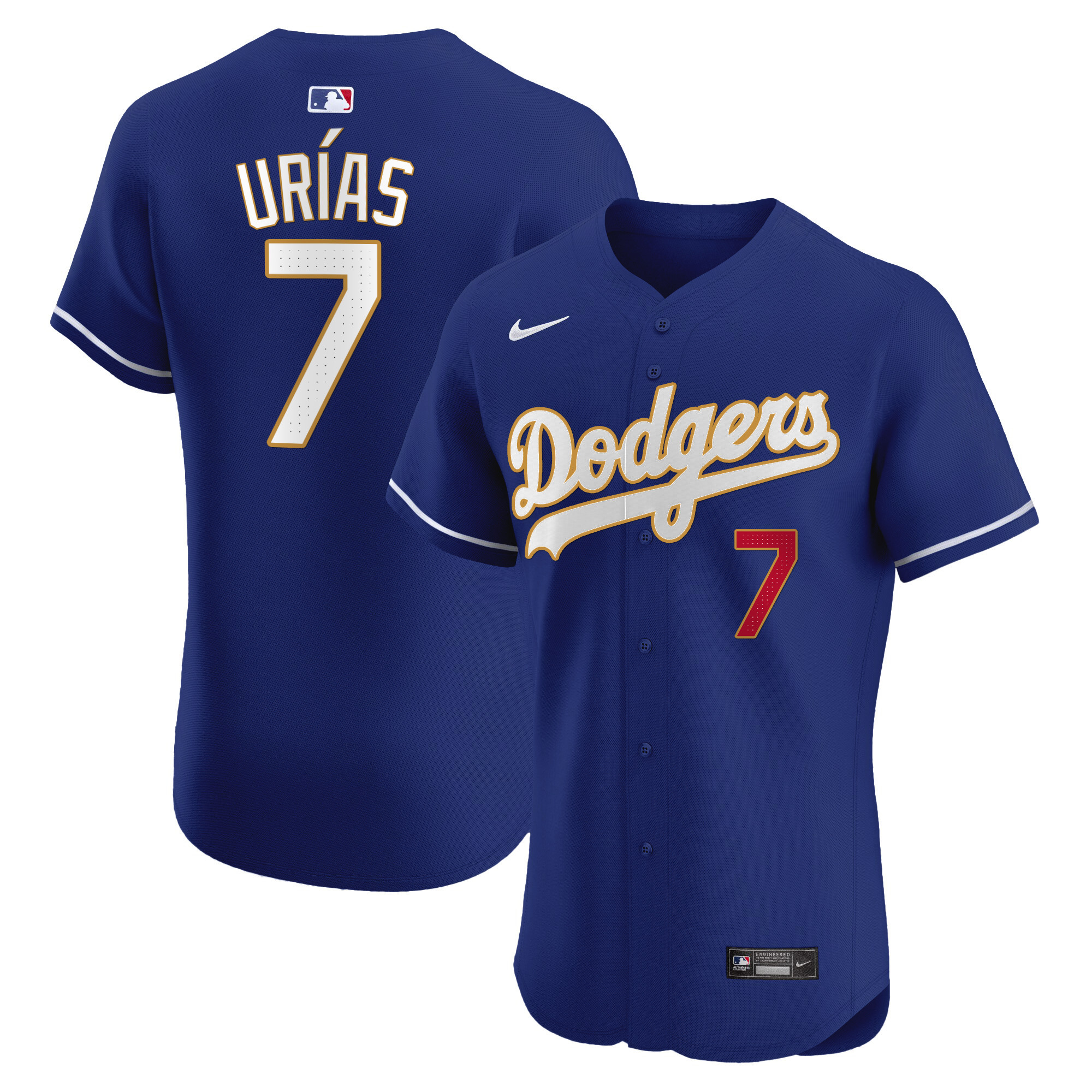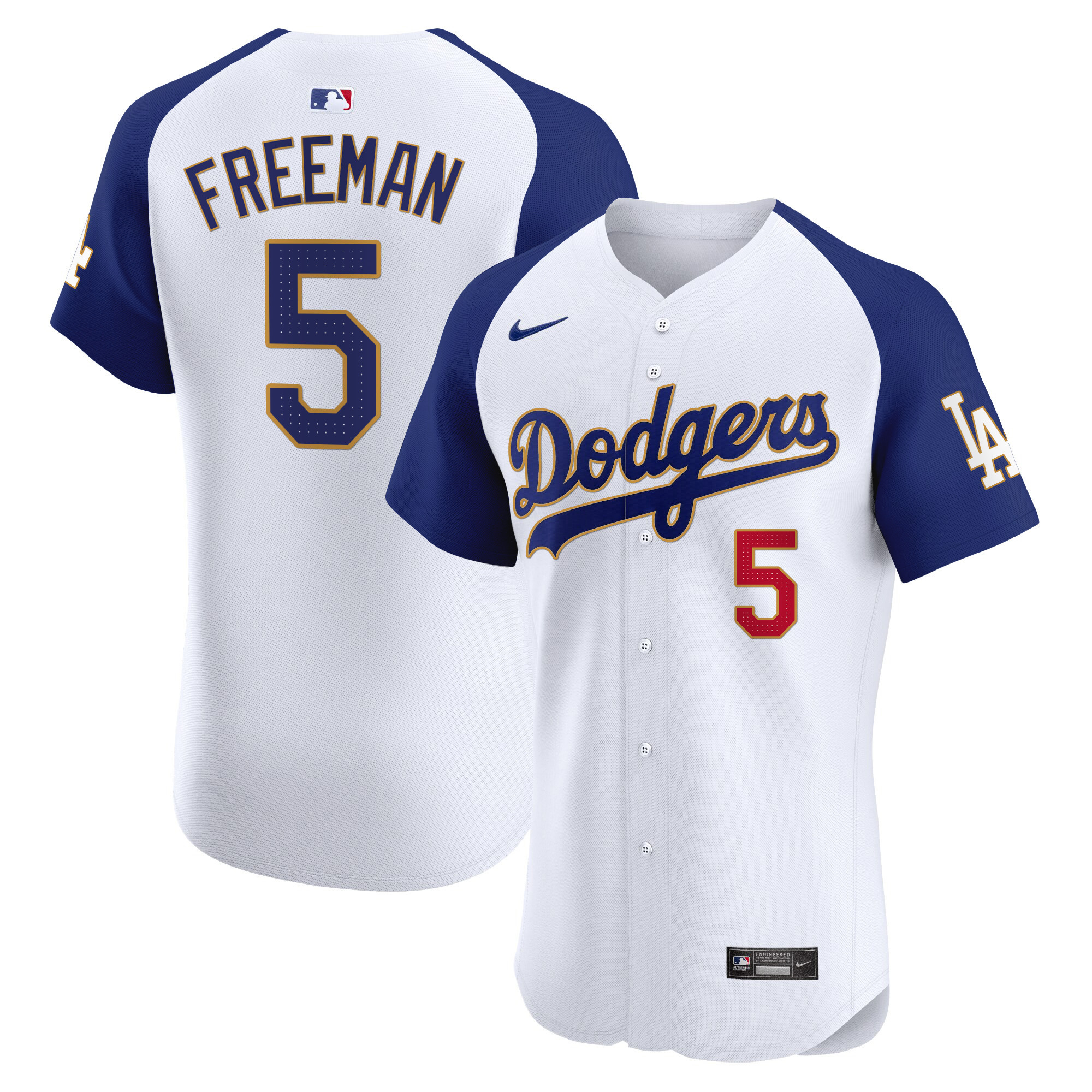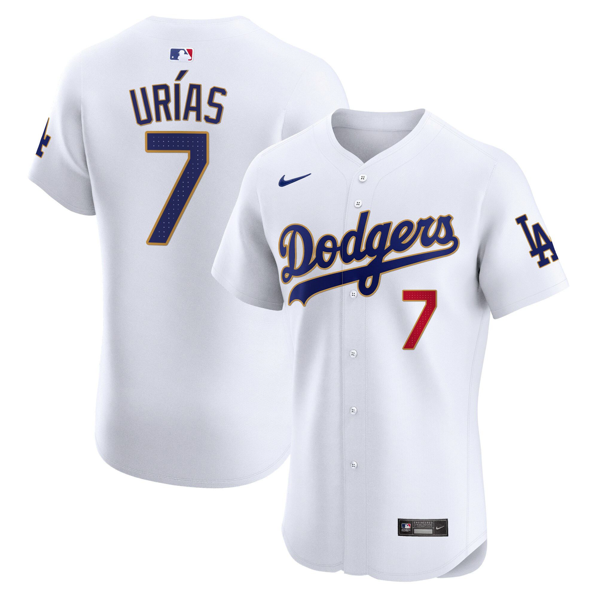 Men’s Los Angeles Dodgers Gold Trim Premier Elite Jersey – All Stitched