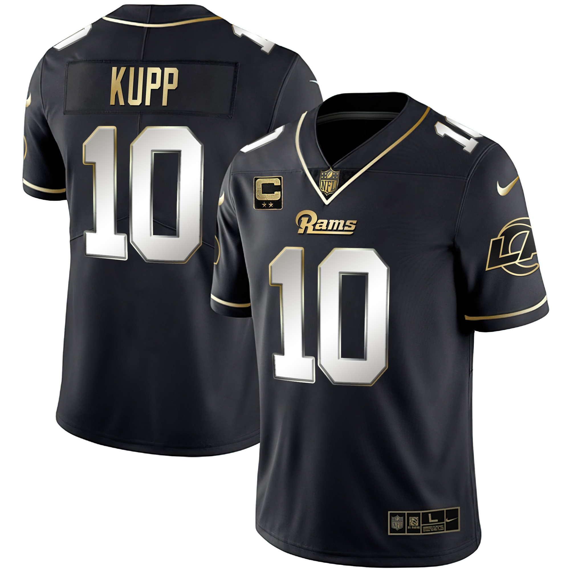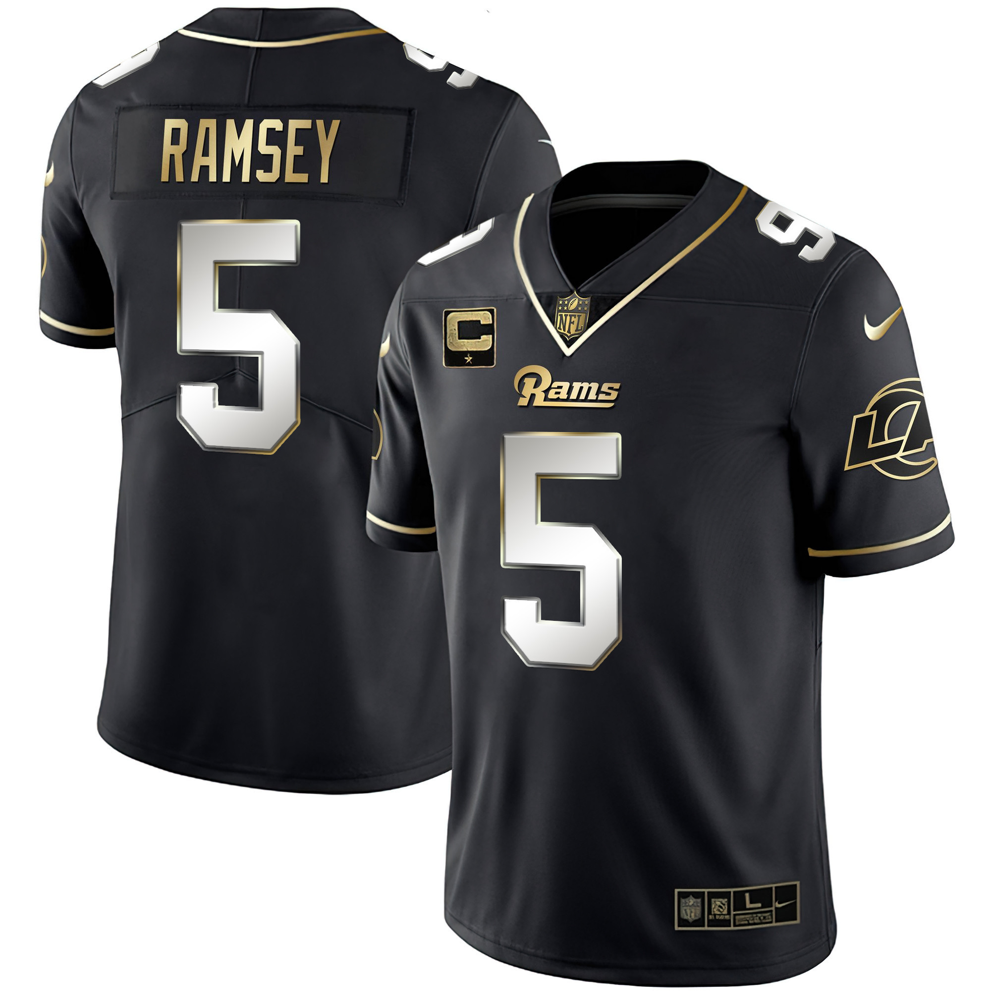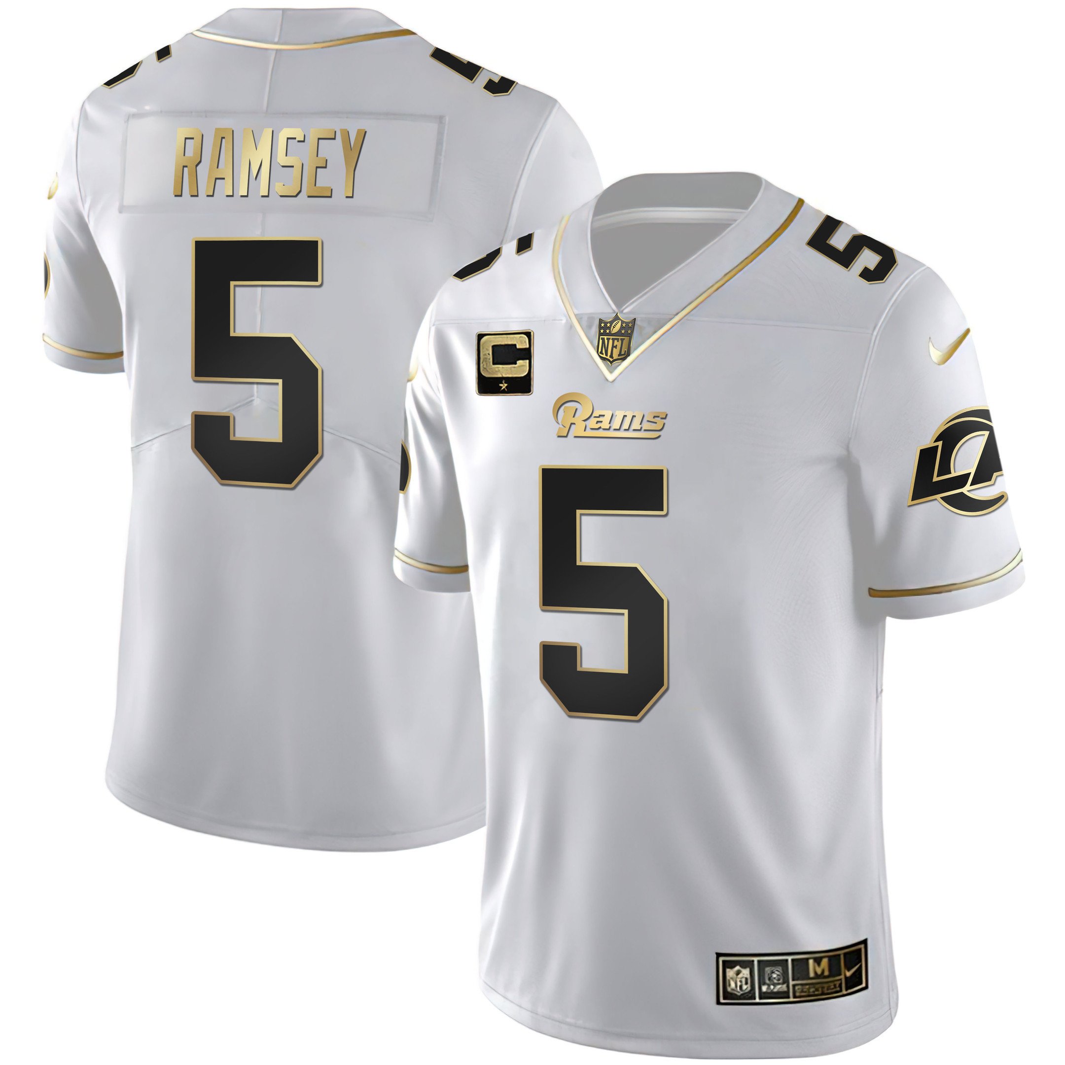 Men’s Los Angeles Rams White Gold & Black Gold Jersey – All Stitched