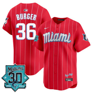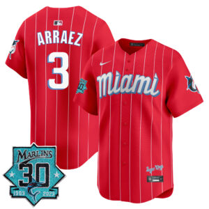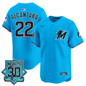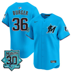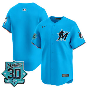 Men’s Miami Marlins 30 Seasons Anniversary Patch Vapor Premier Limited Jersey – All Stitched