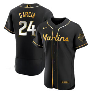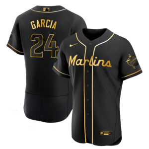 Men’s Miami Marlins Black Limited & Gold Jersey – All Stitched