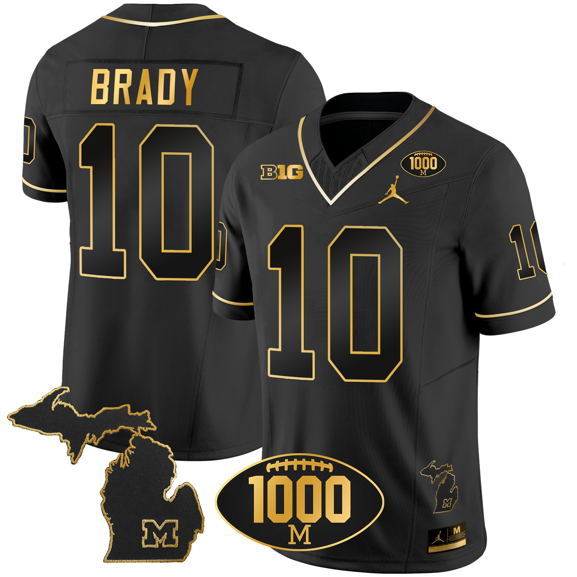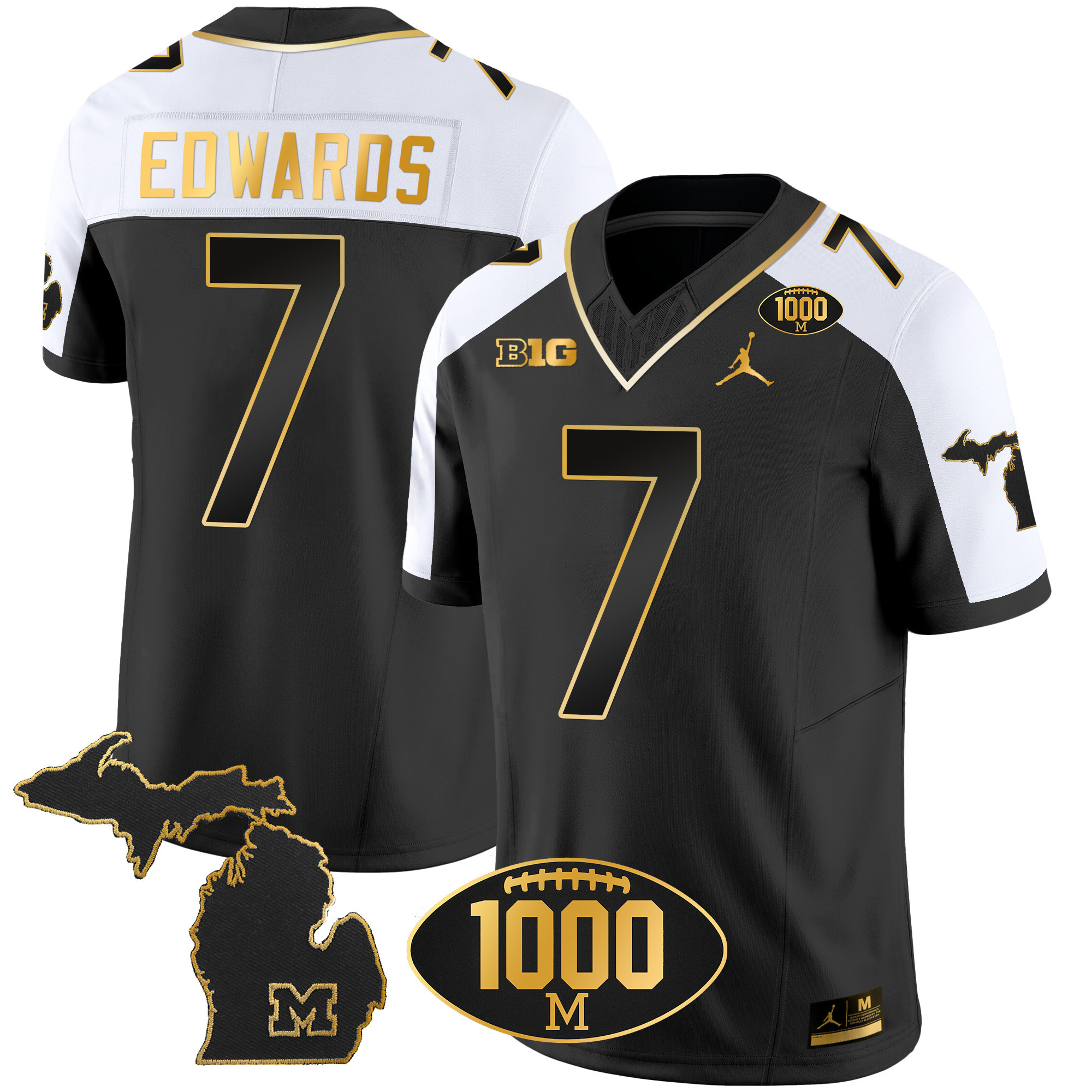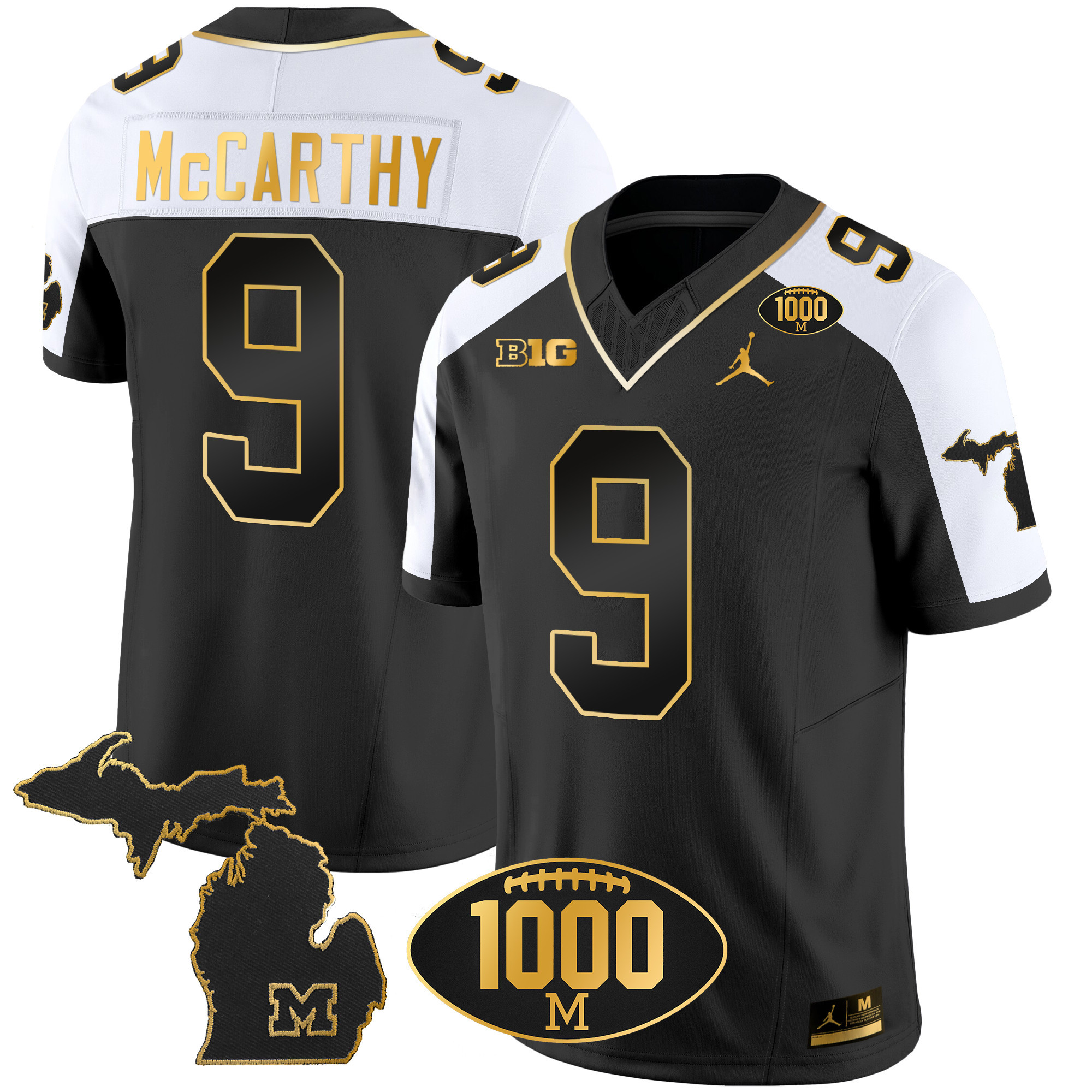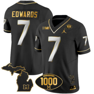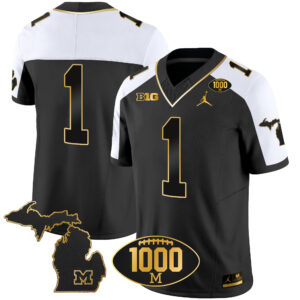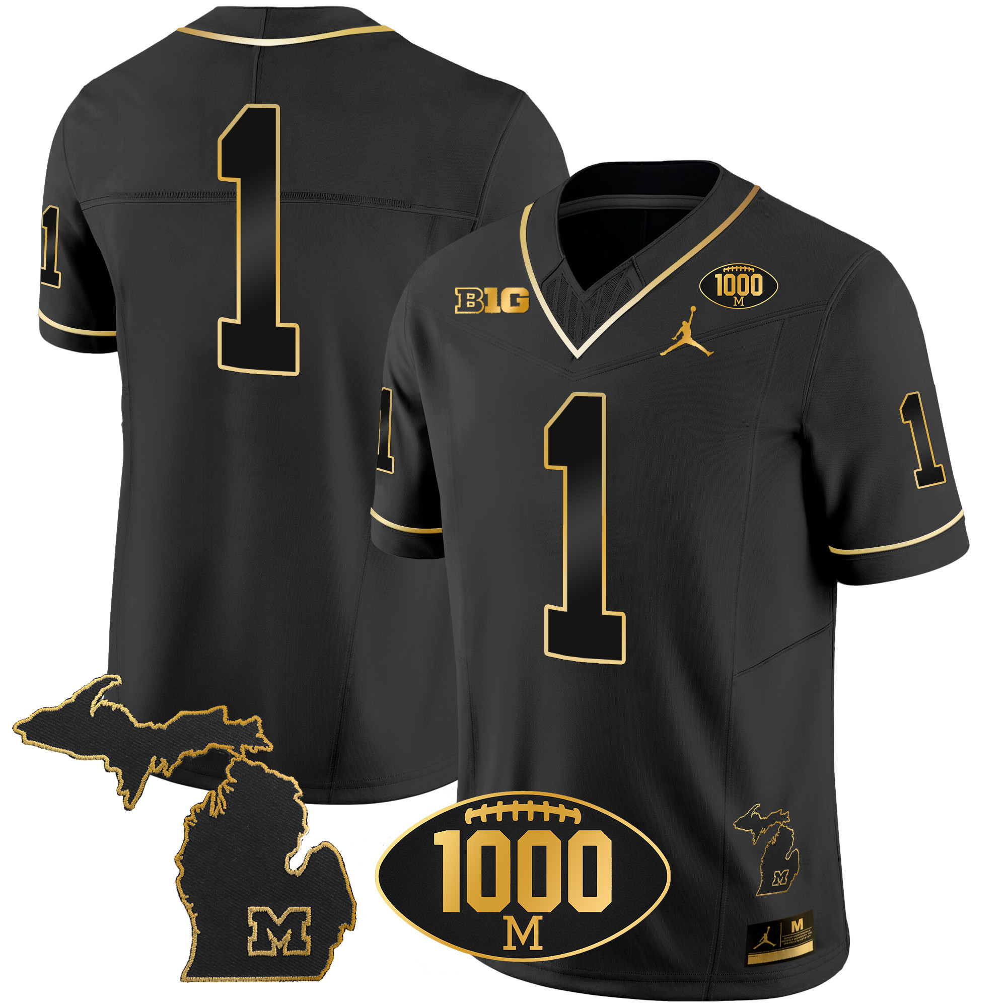 Men’s Michigan Wolverines 1000 Wins Patch Gold Jersey V2 – All Stitched