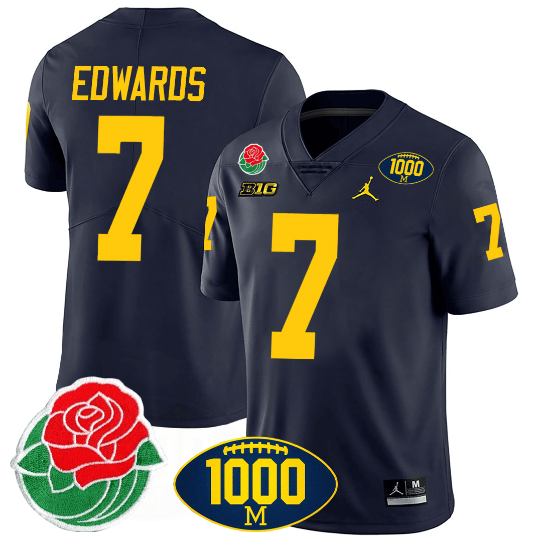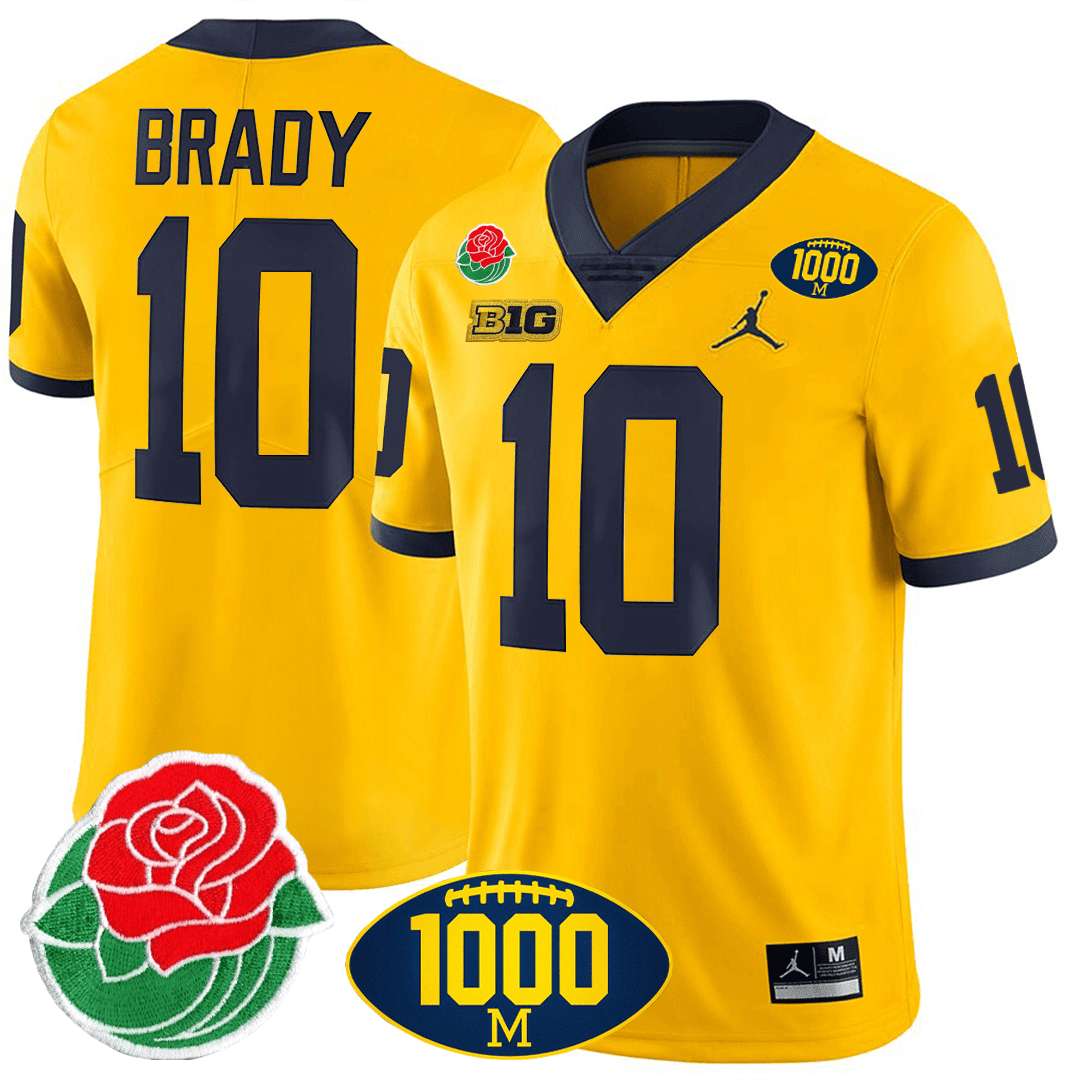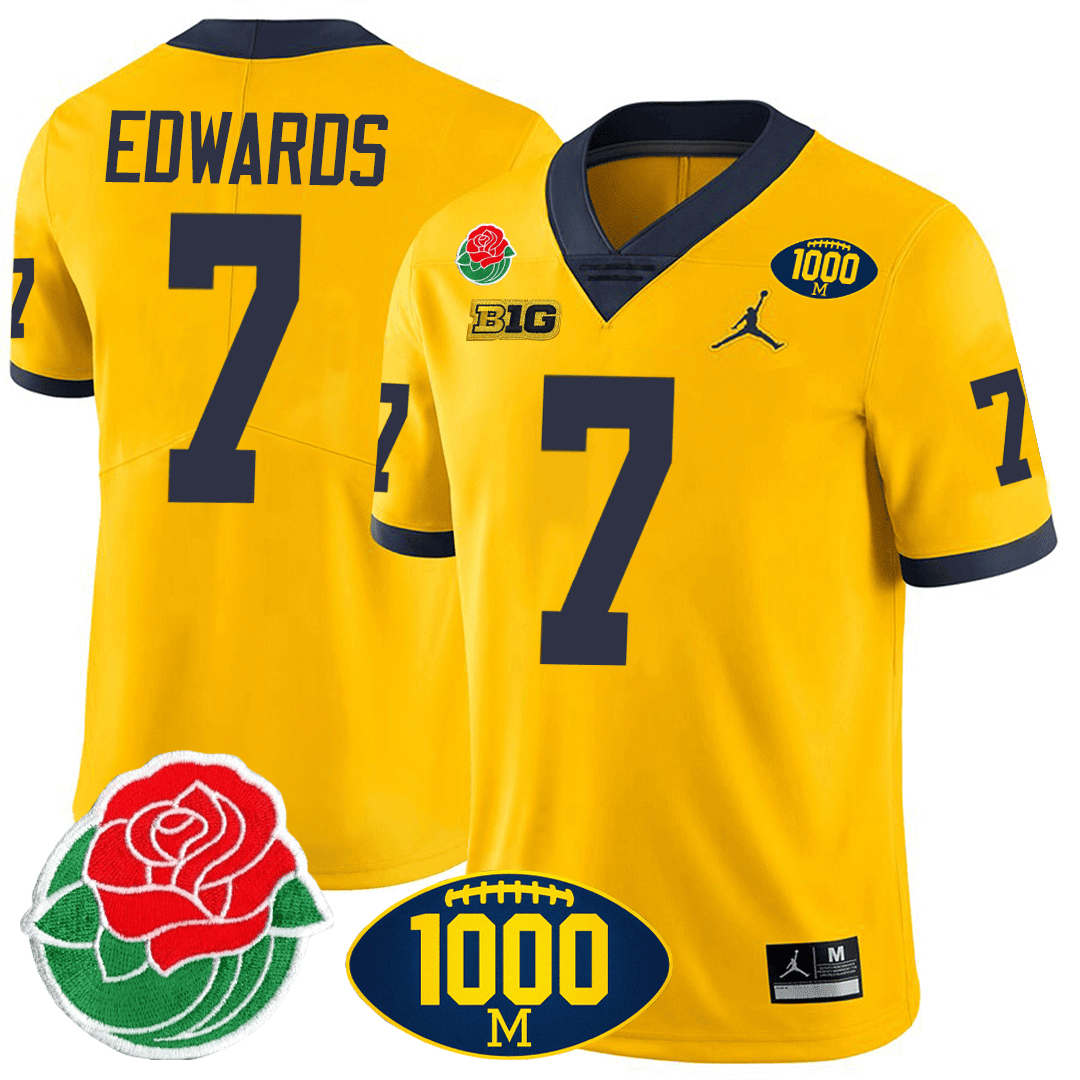 Men’s Michigan Wolverines 1000 Wins & Rose Bowl Patch Special Jersey – All Stitched