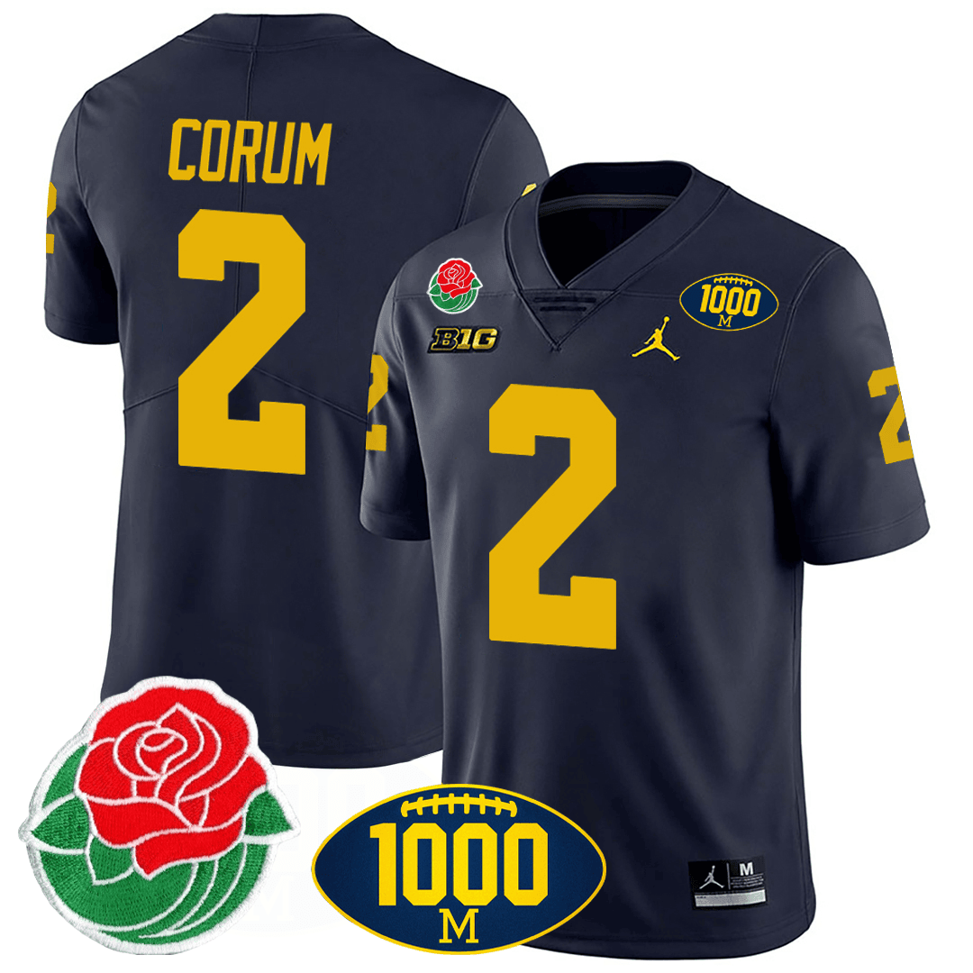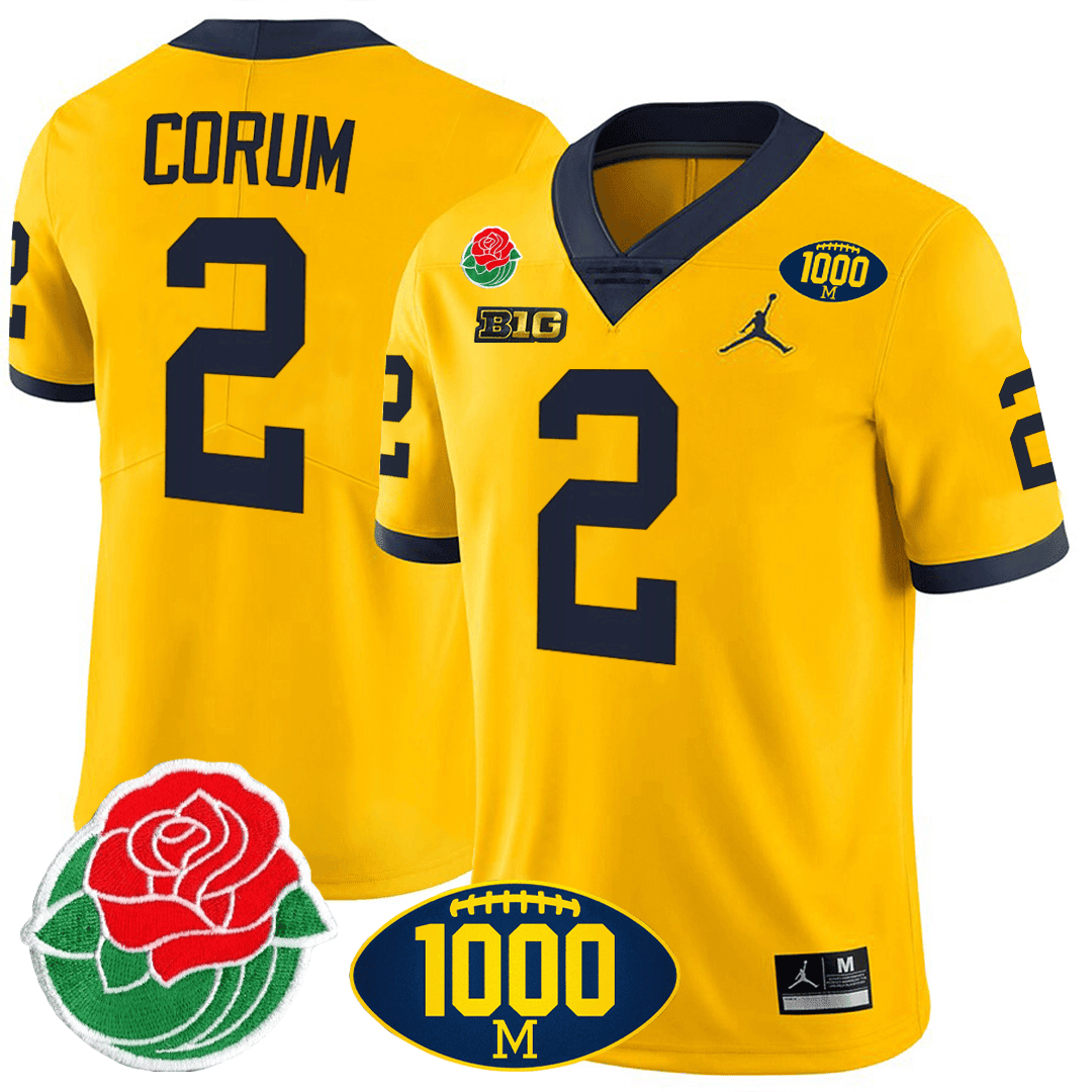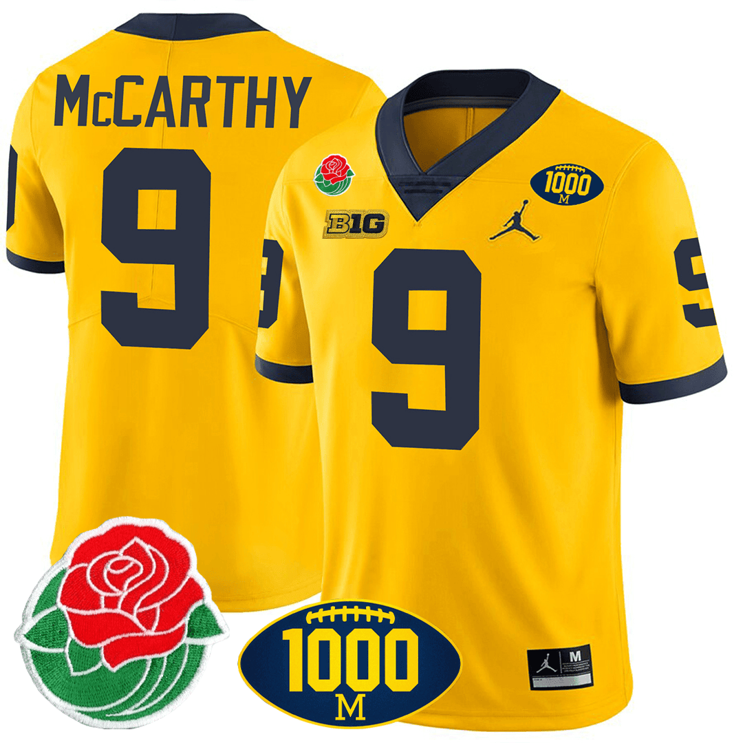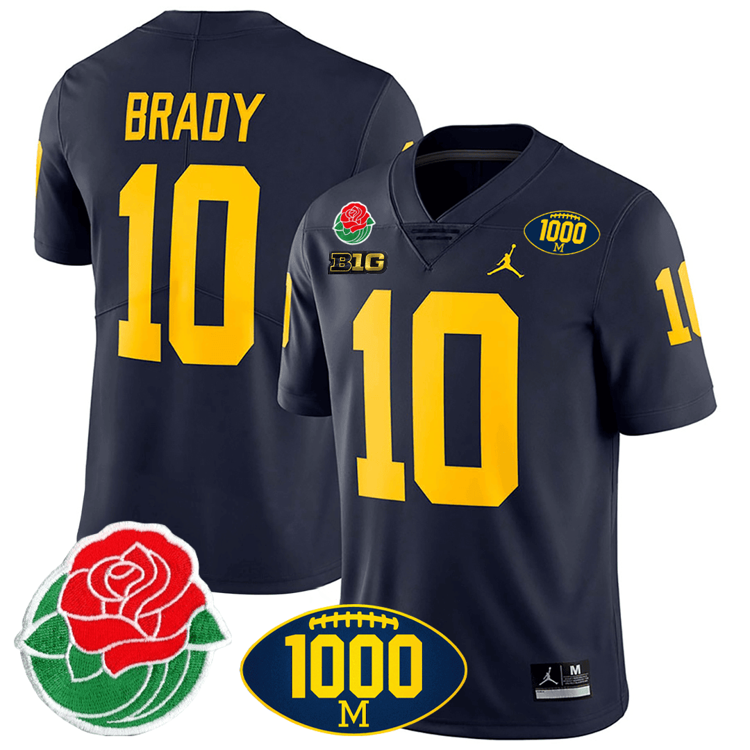 Men’s Michigan Wolverines 1000 Wins & Rose Bowl Patch Special Jersey – All Stitched