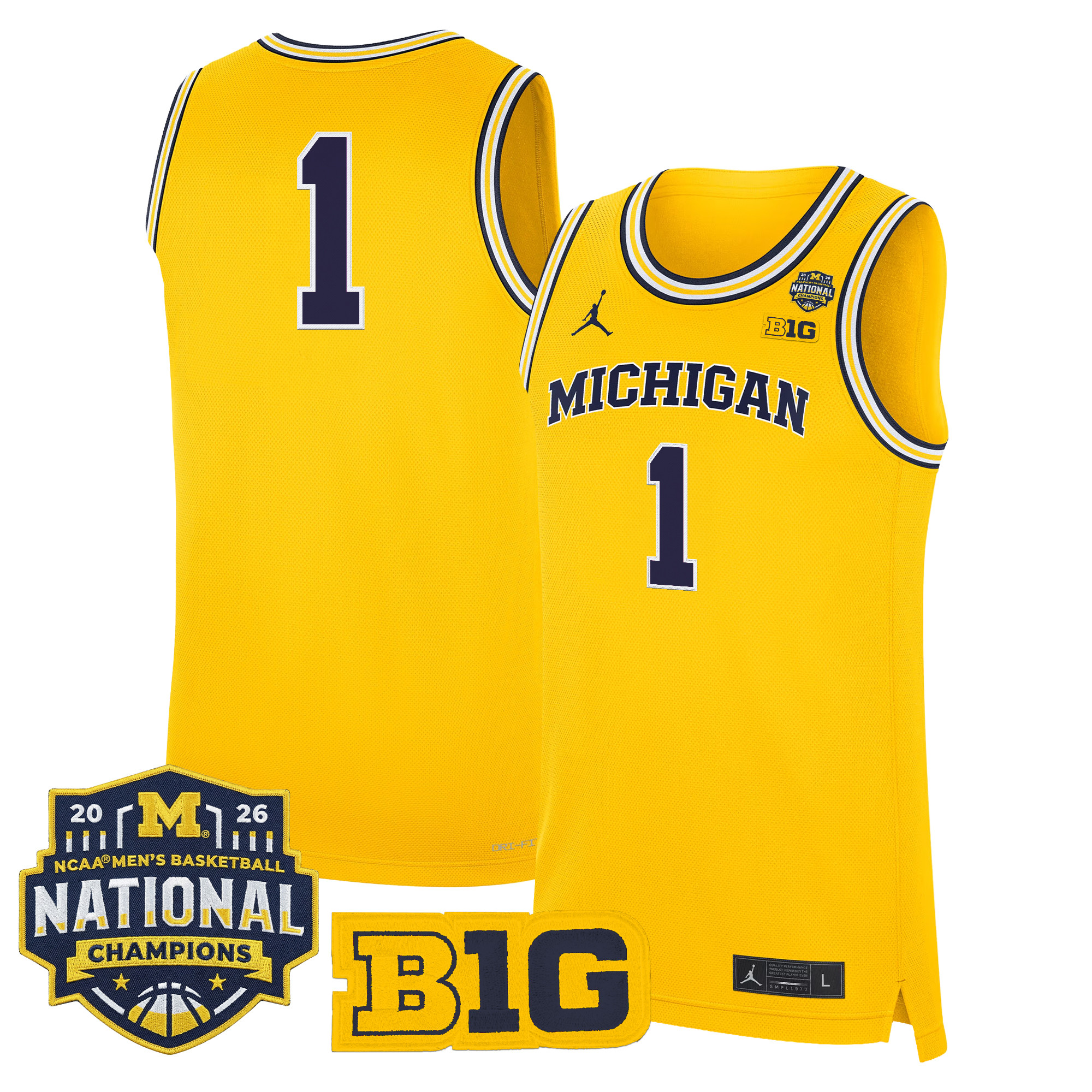 Michigan Wolverines 2026 National Champions Patch Basketball Custom Jersey – All Stitched