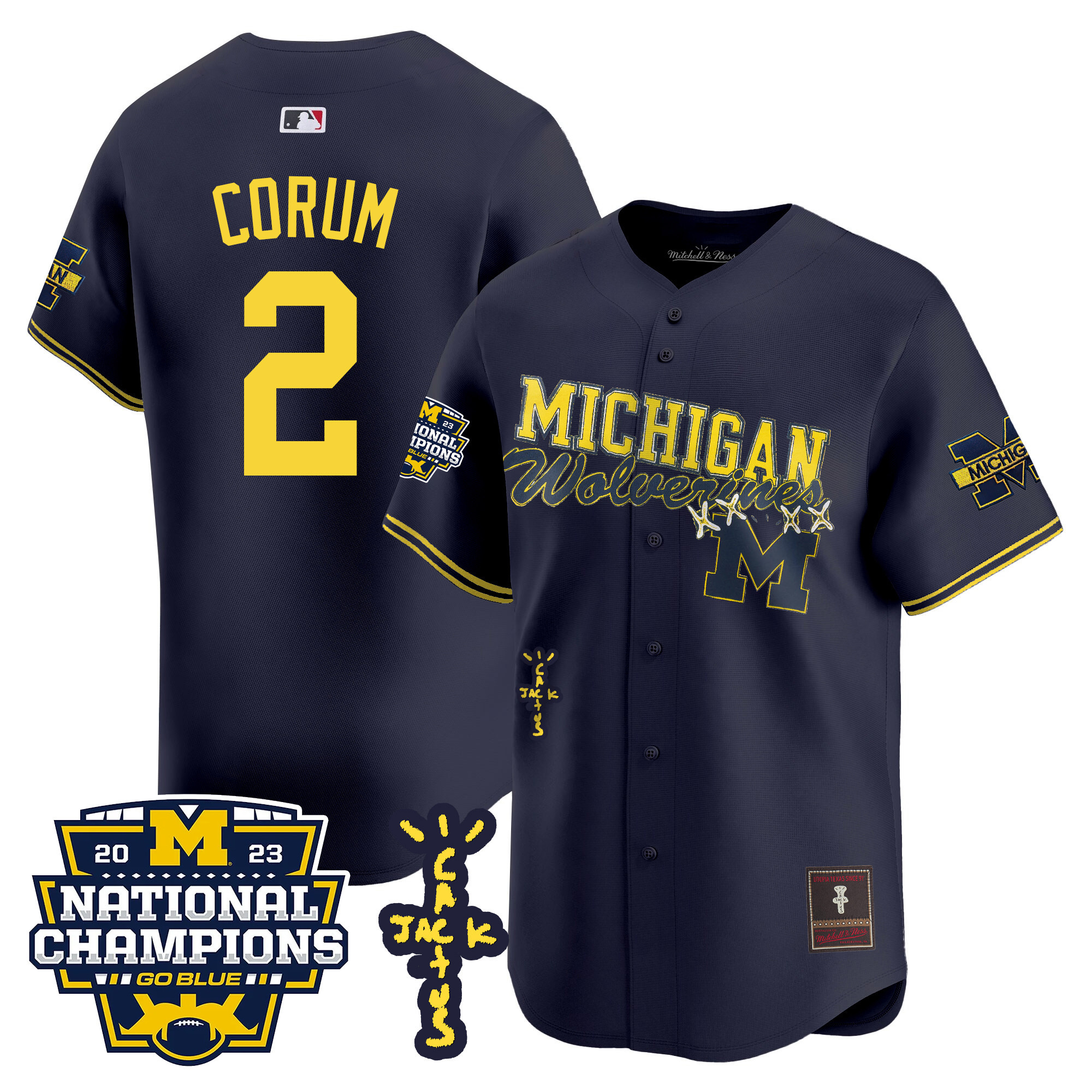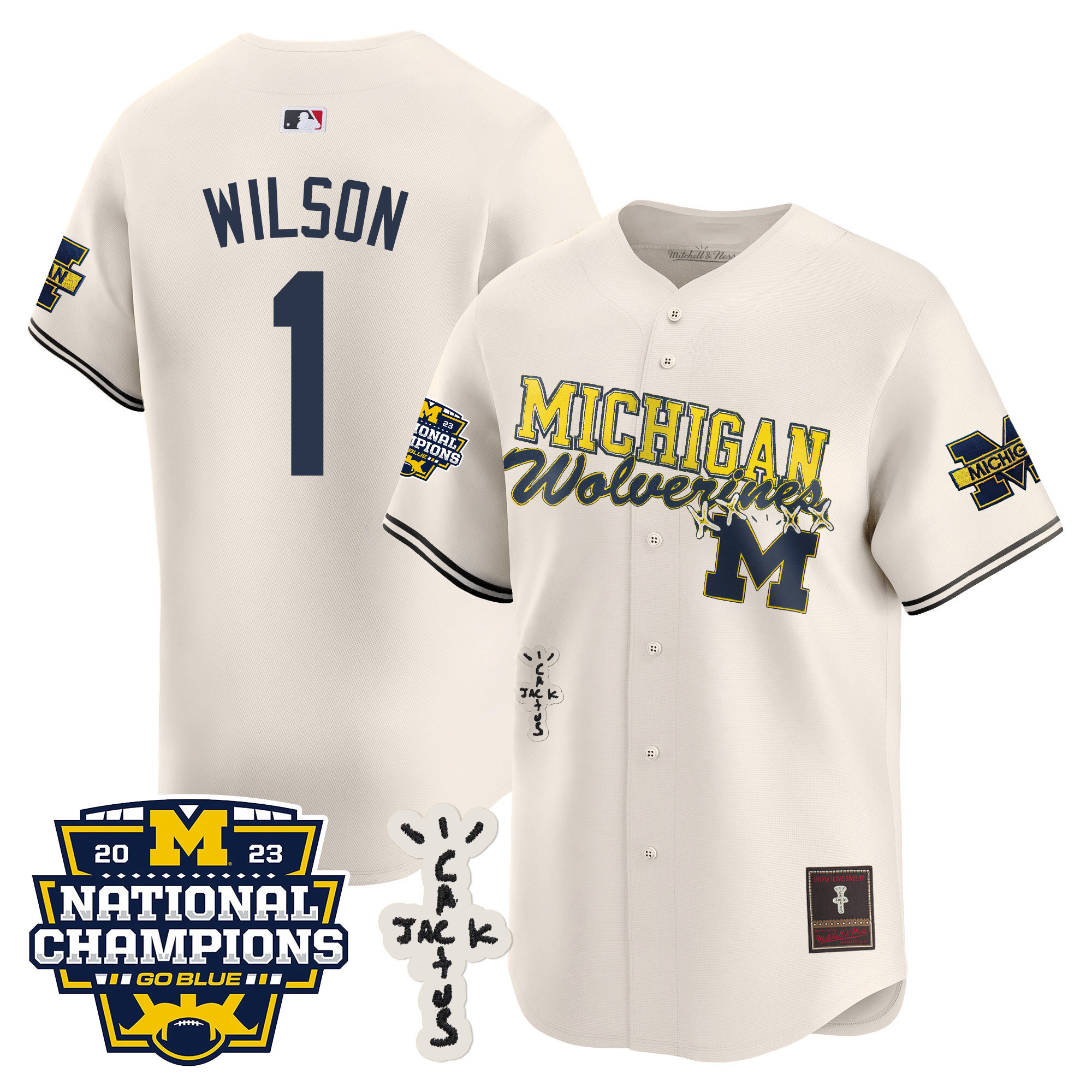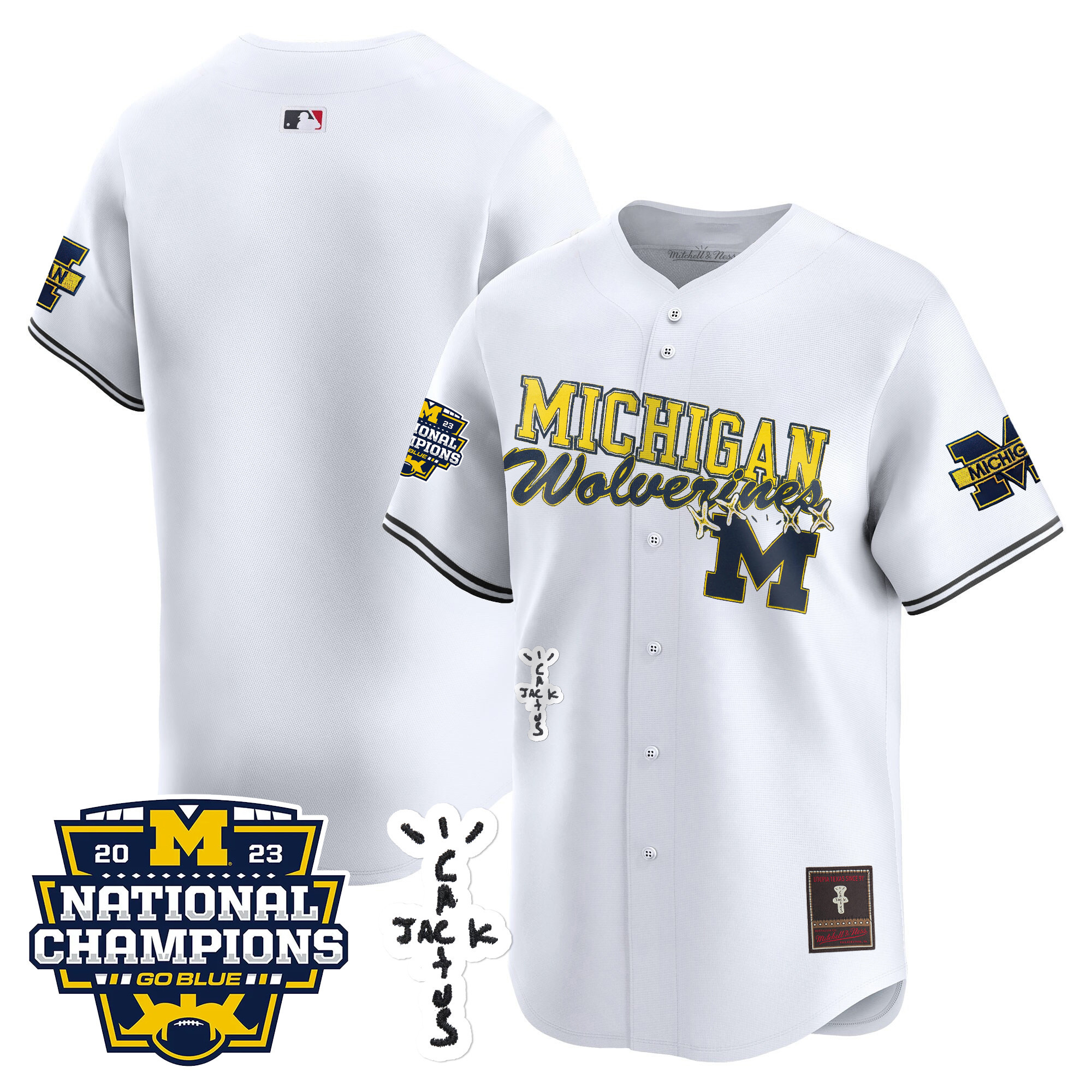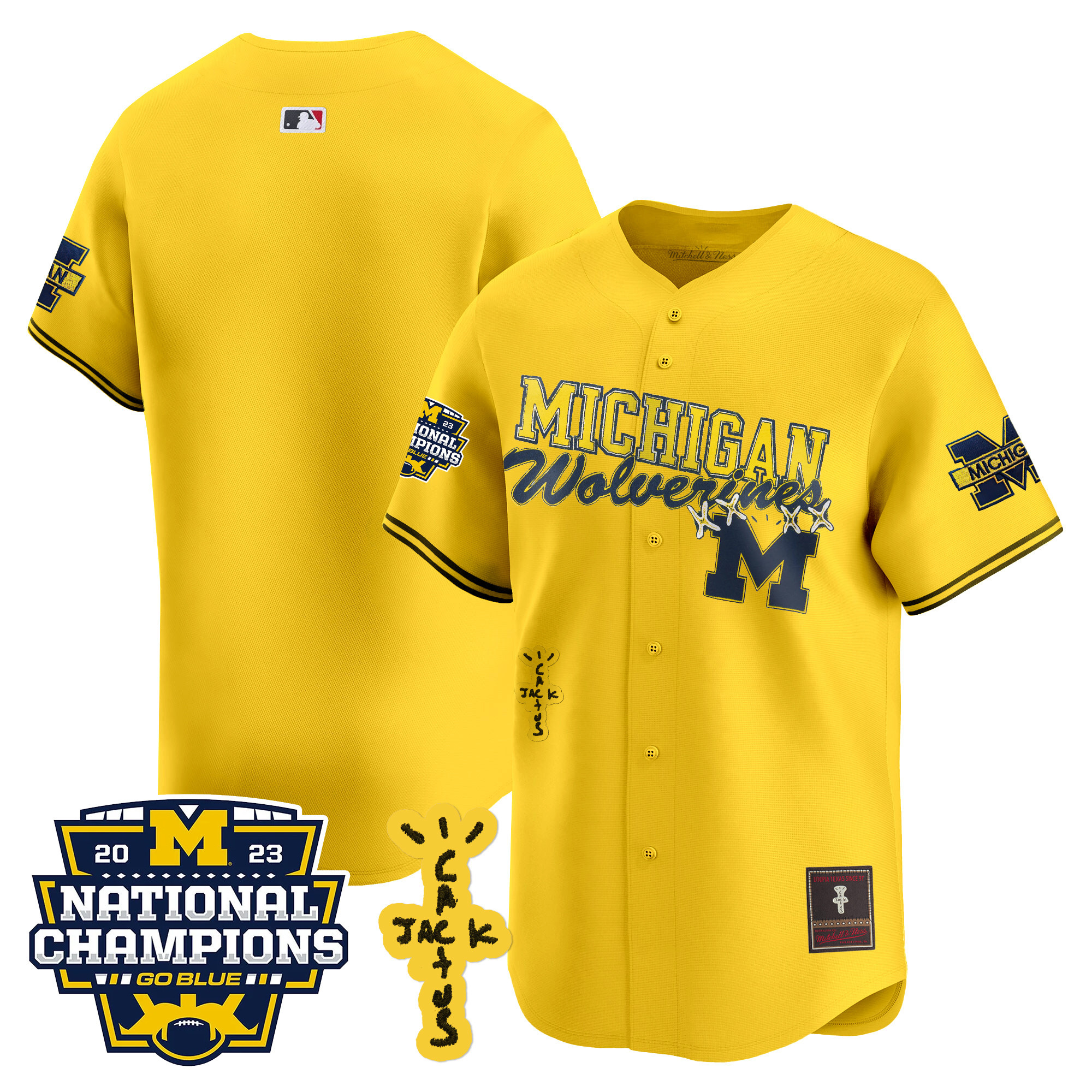 Men’s Michigan Wolverines Cactus Jack Champions Baseball Jersey – All Stitched