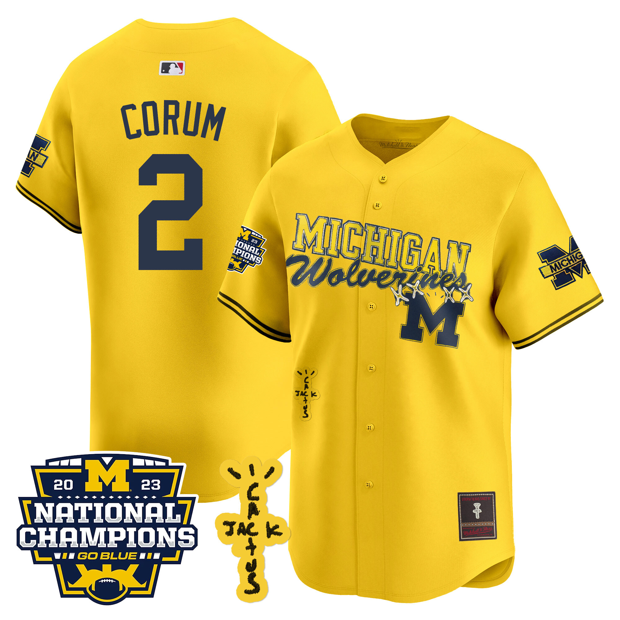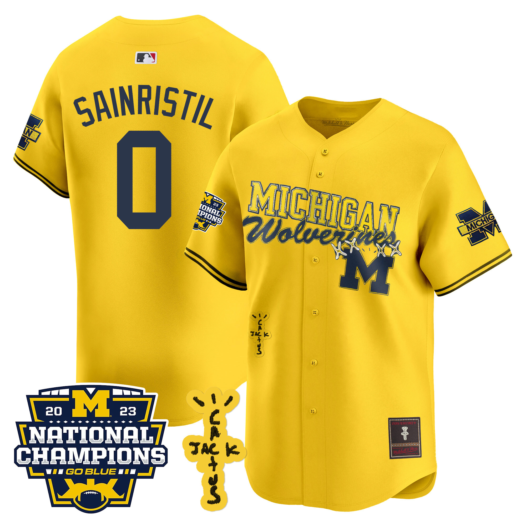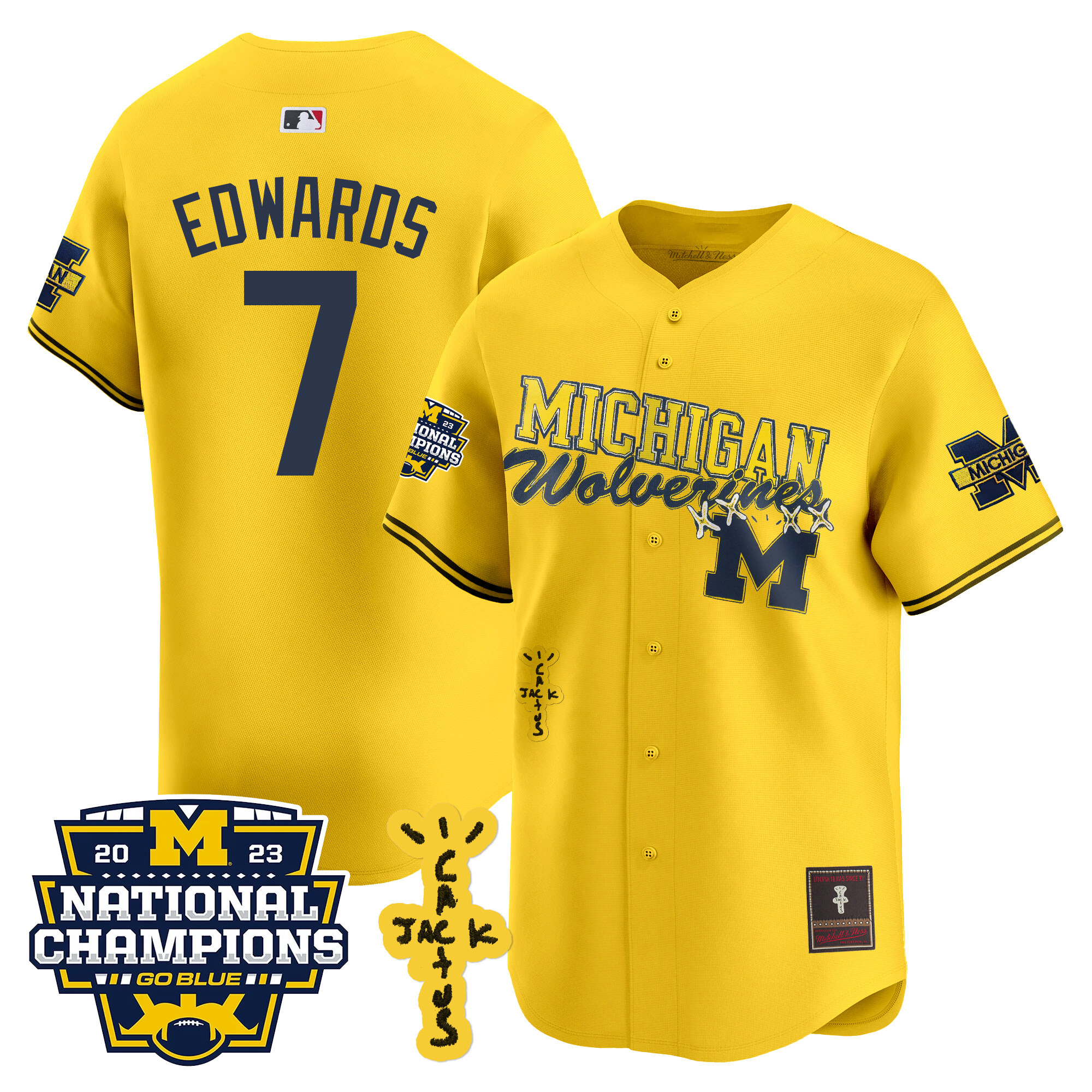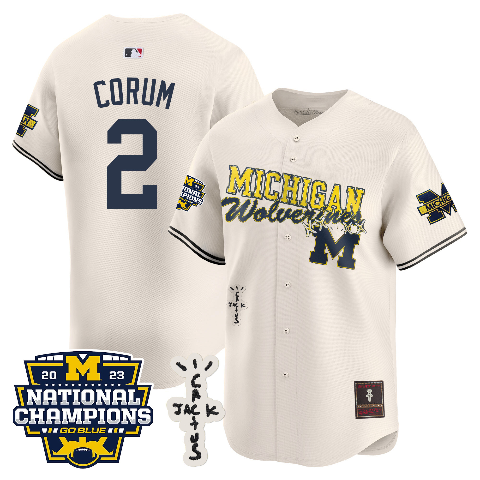 Men’s Michigan Wolverines Cactus Jack Champions Baseball Jersey – All Stitched