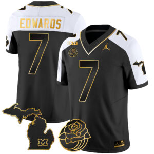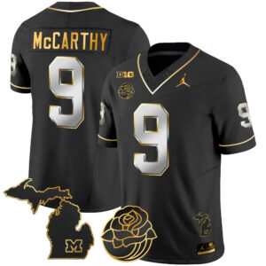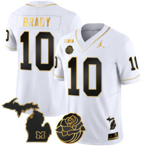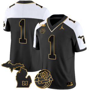Men’s Michigan Wolverines Rose Bowl Patch Gold Vapor Jersey – All Stitched