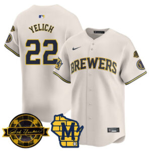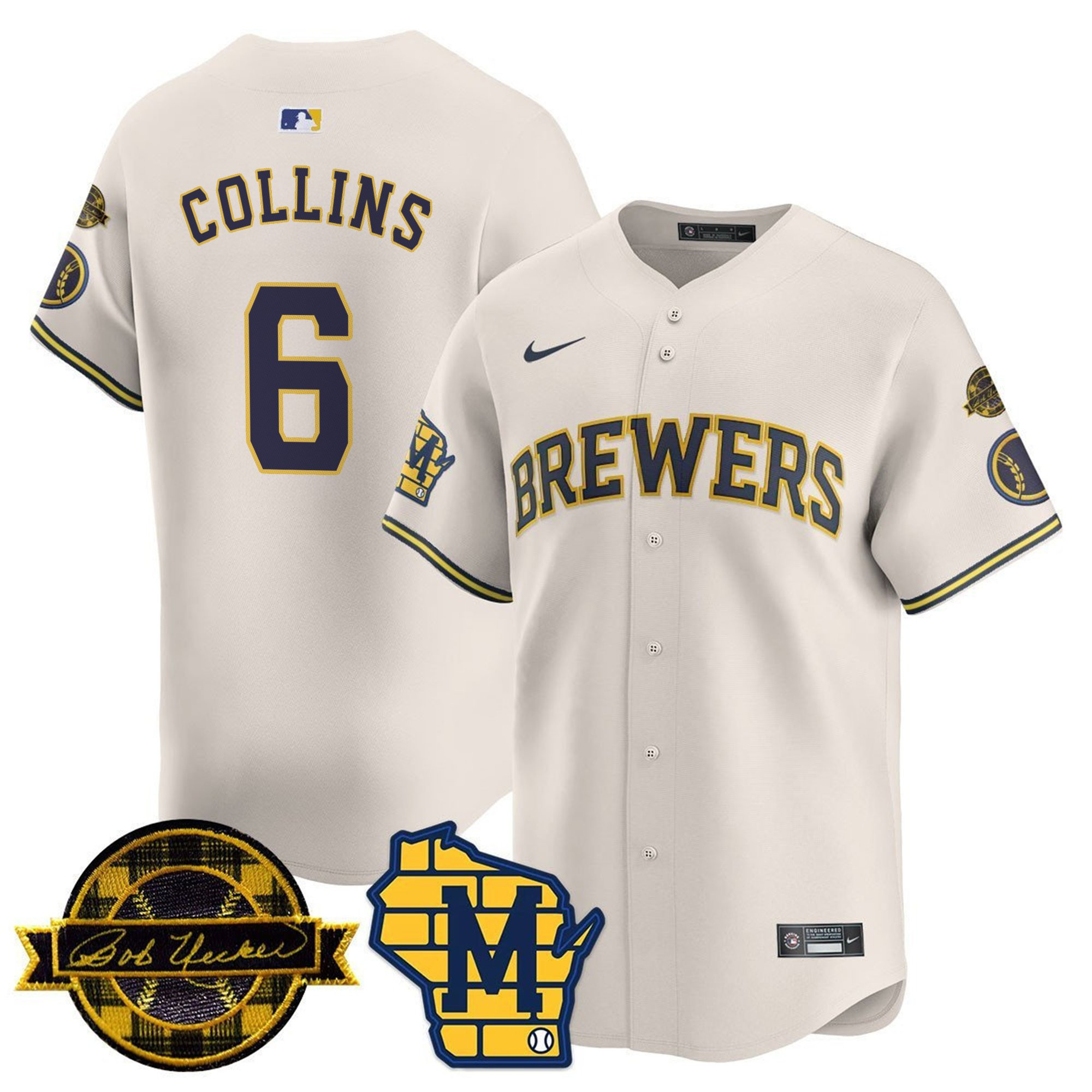 Men’s Milwaukee Brewers Home & Bob Uecker Patch Vapor Premier Limited Jersey – All Stitched