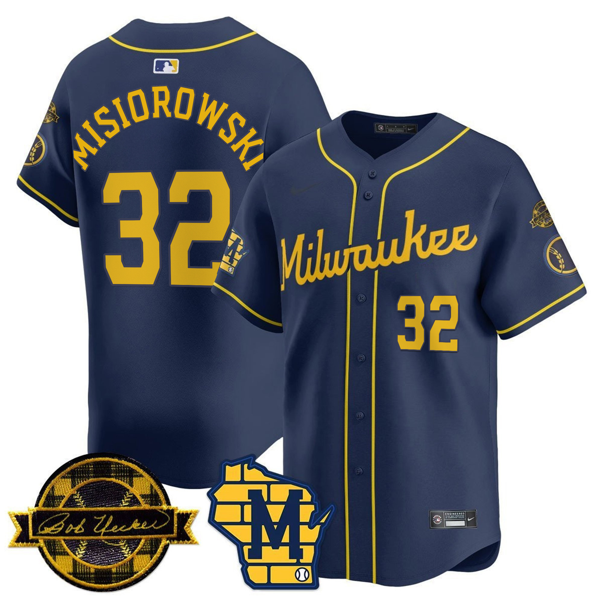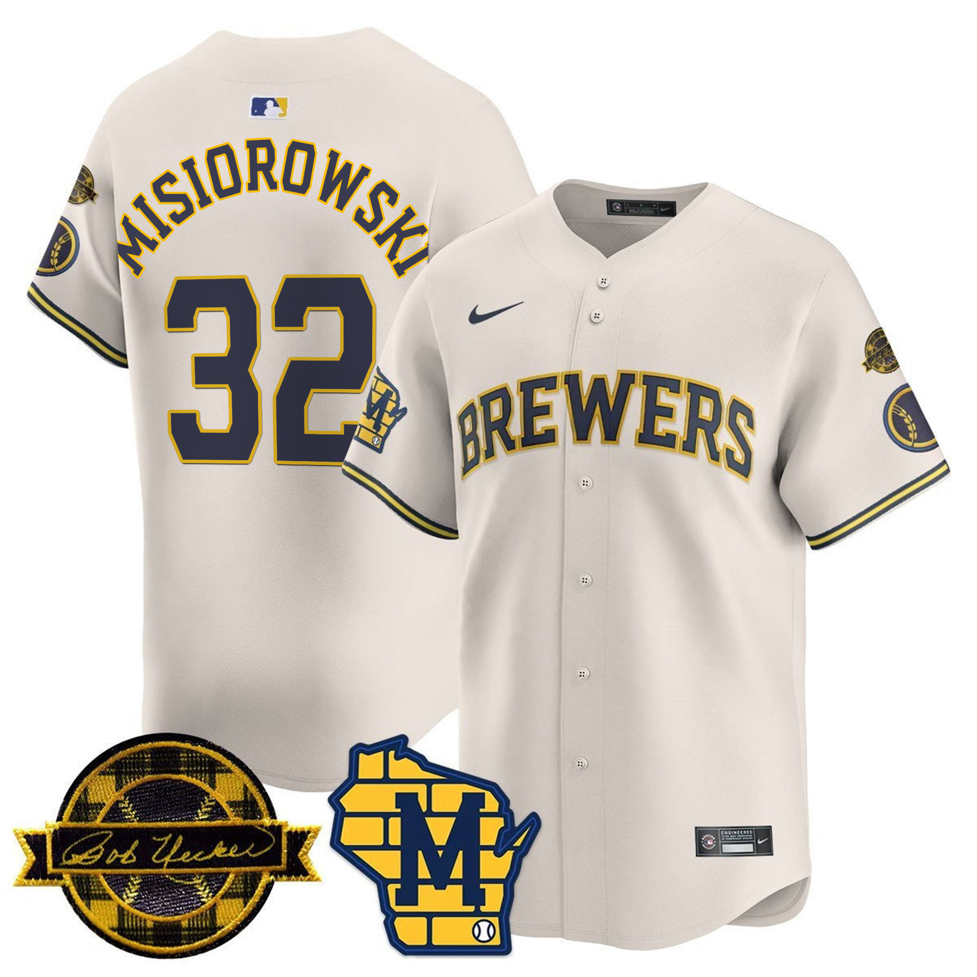 Milwaukee Brewers Home & Bob Uecker Patch Vapor Premier Limited Custom Jersey – All Stitched