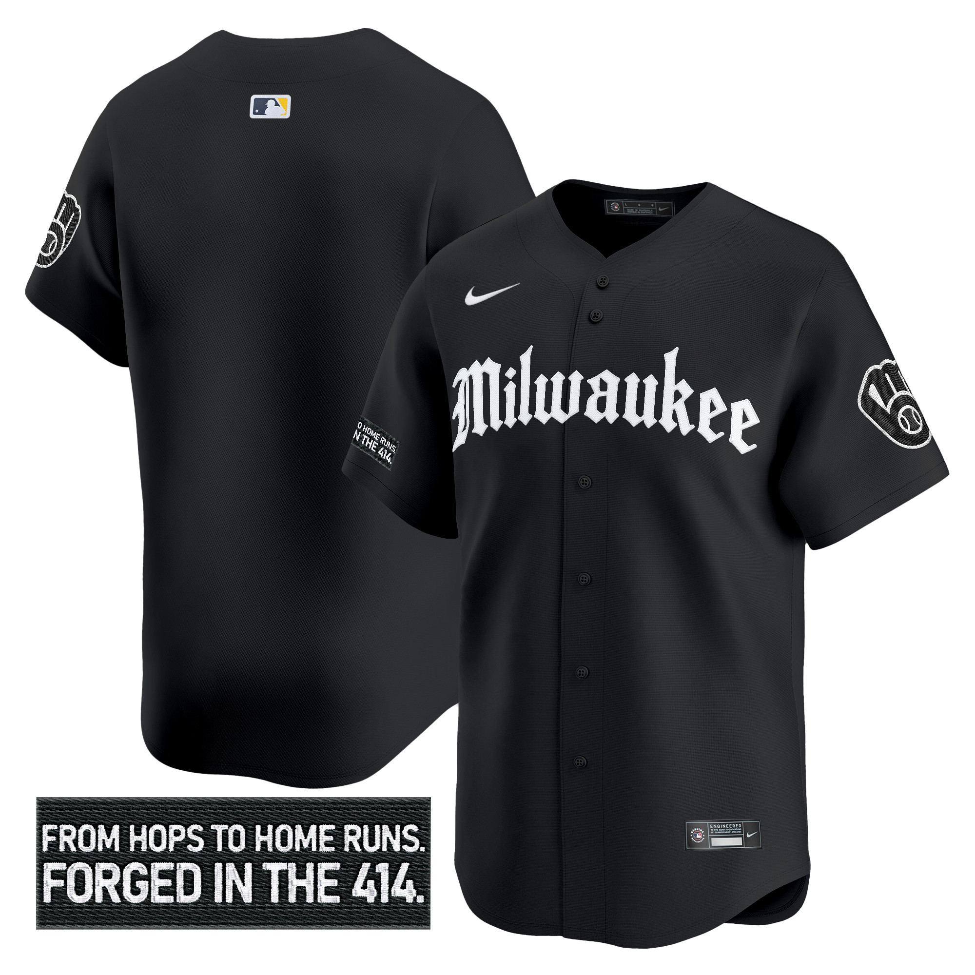 Men’s Milwaukee Brewers ‘Gothic 414 Shadows Edition’ Vapor Premier Limited Jersey – All Stitched