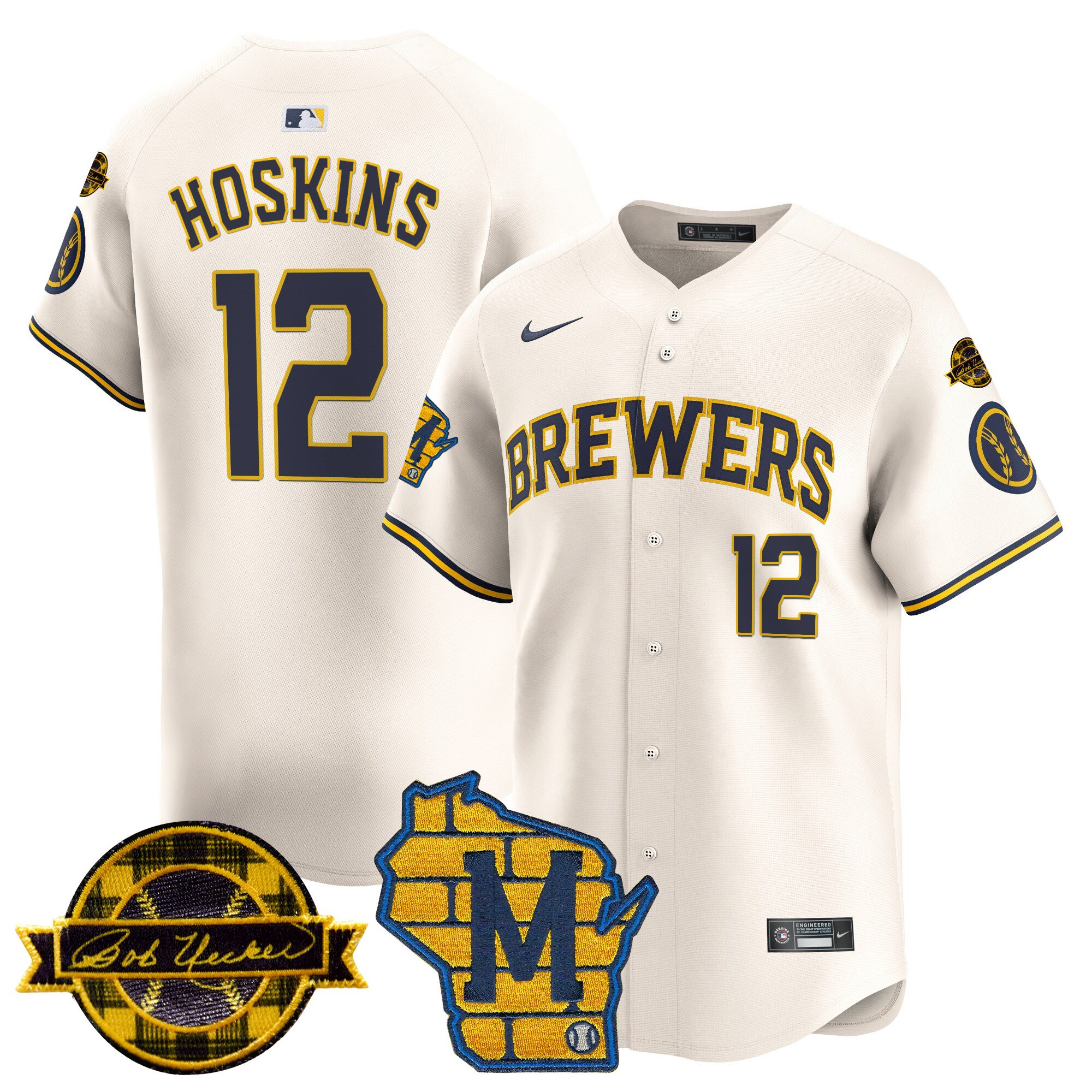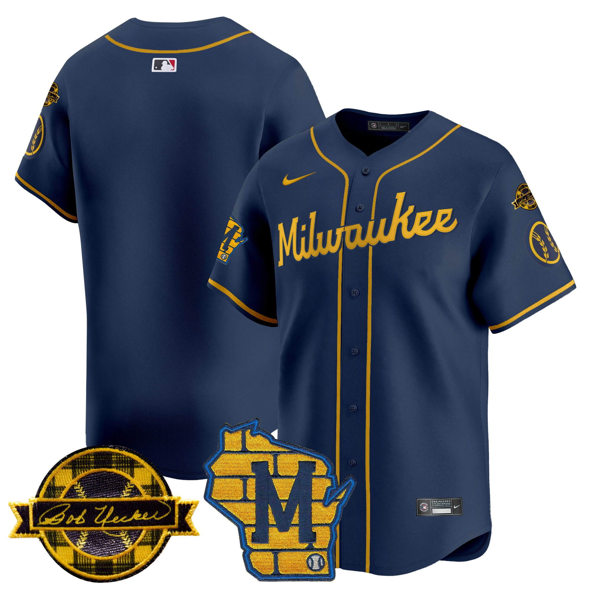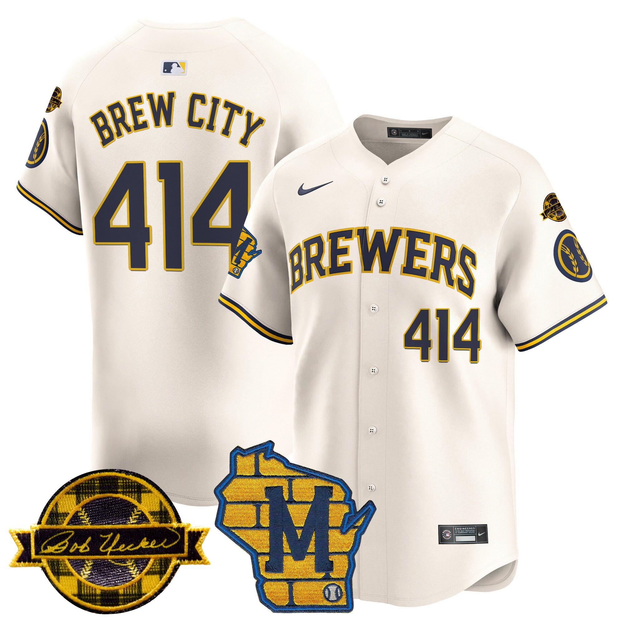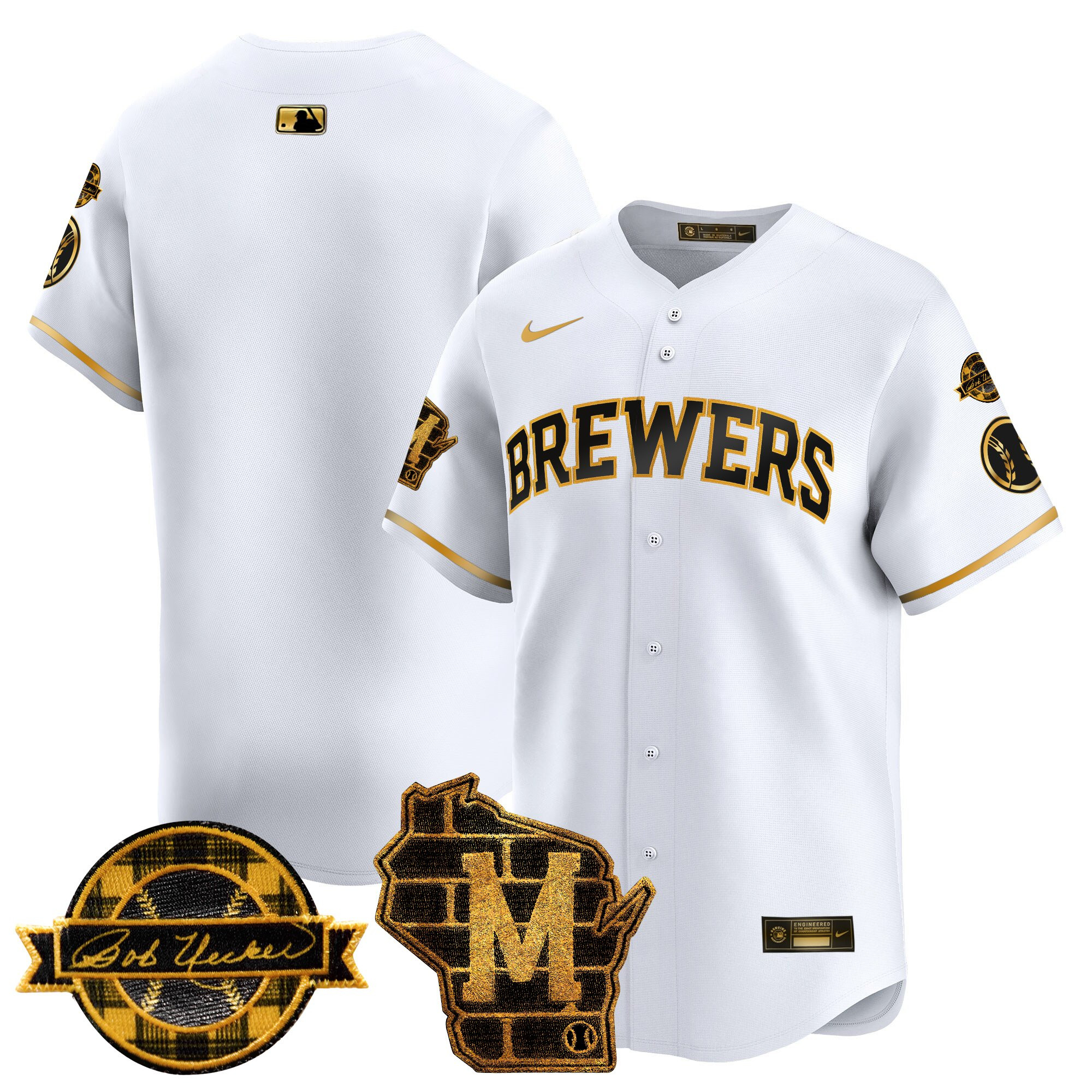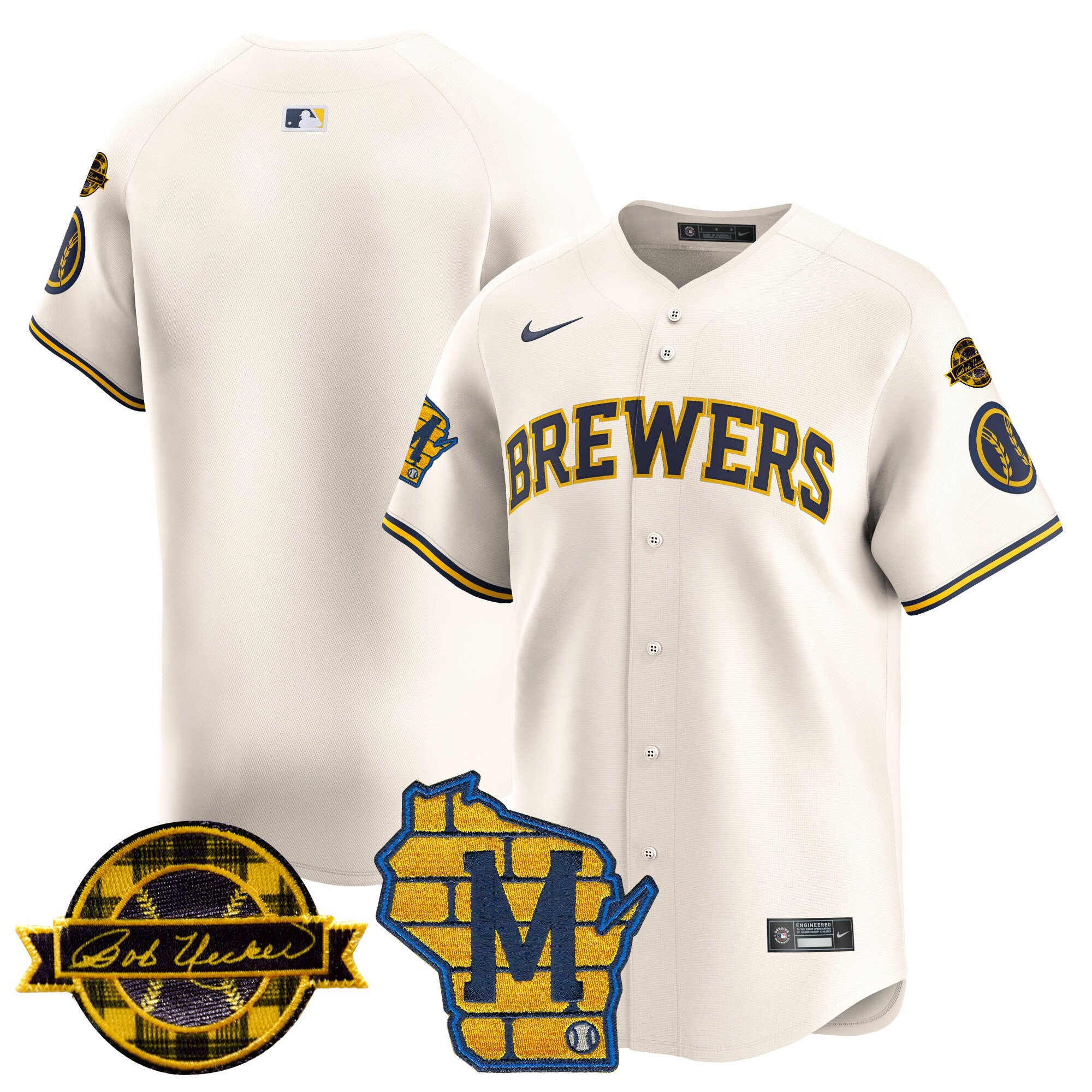 Men’s Milwaukee Brewers Home & Bob Uecker Patch Vapor Premier Limited Jersey – All Stitched