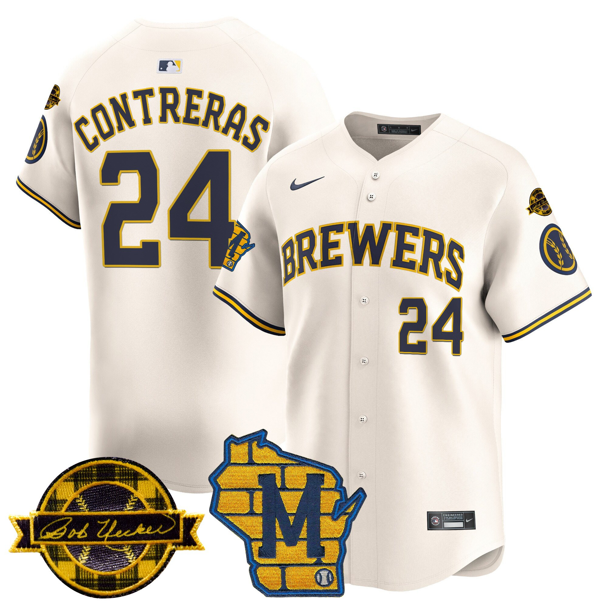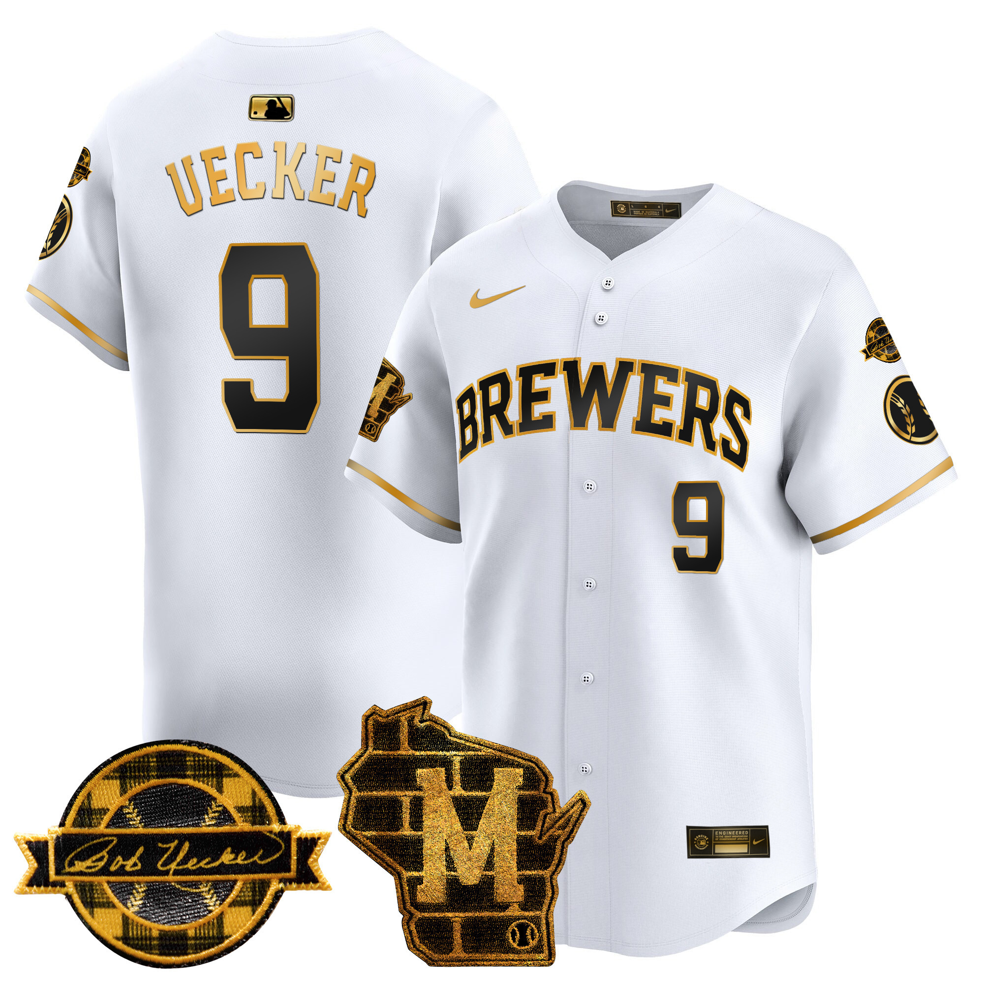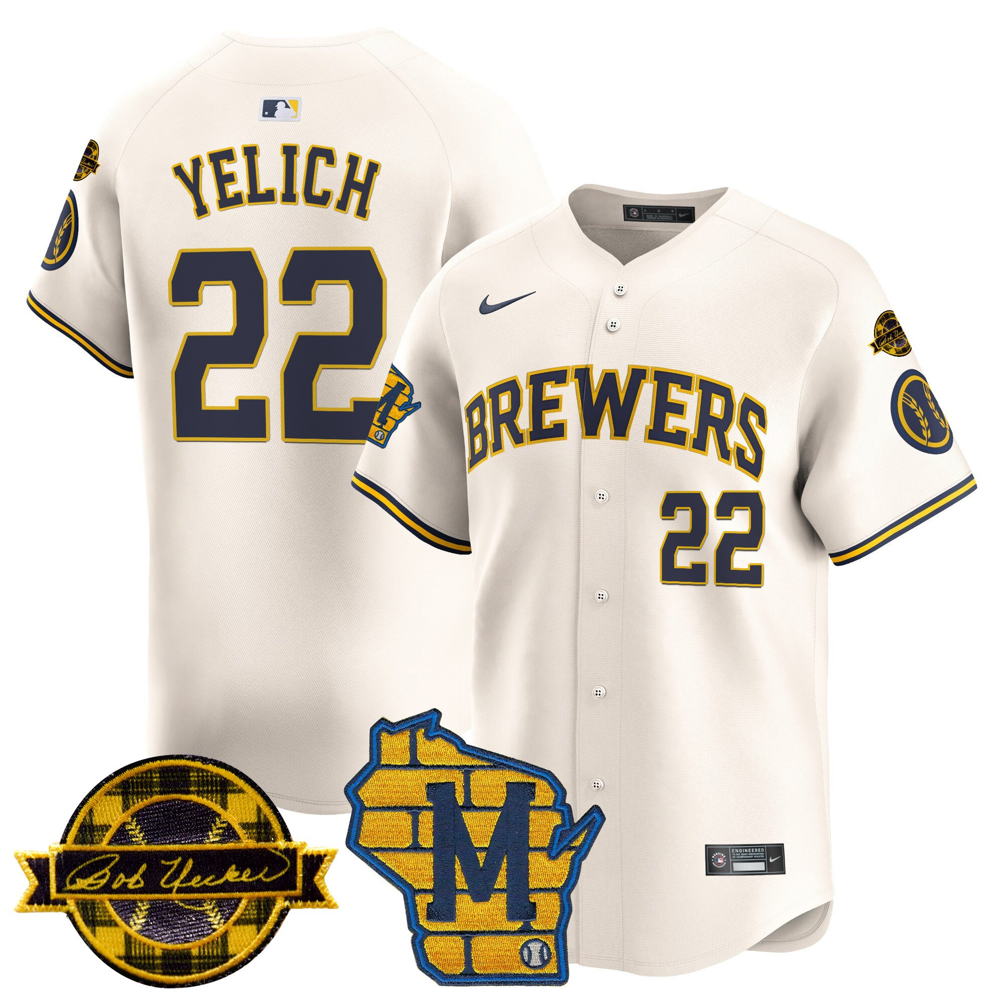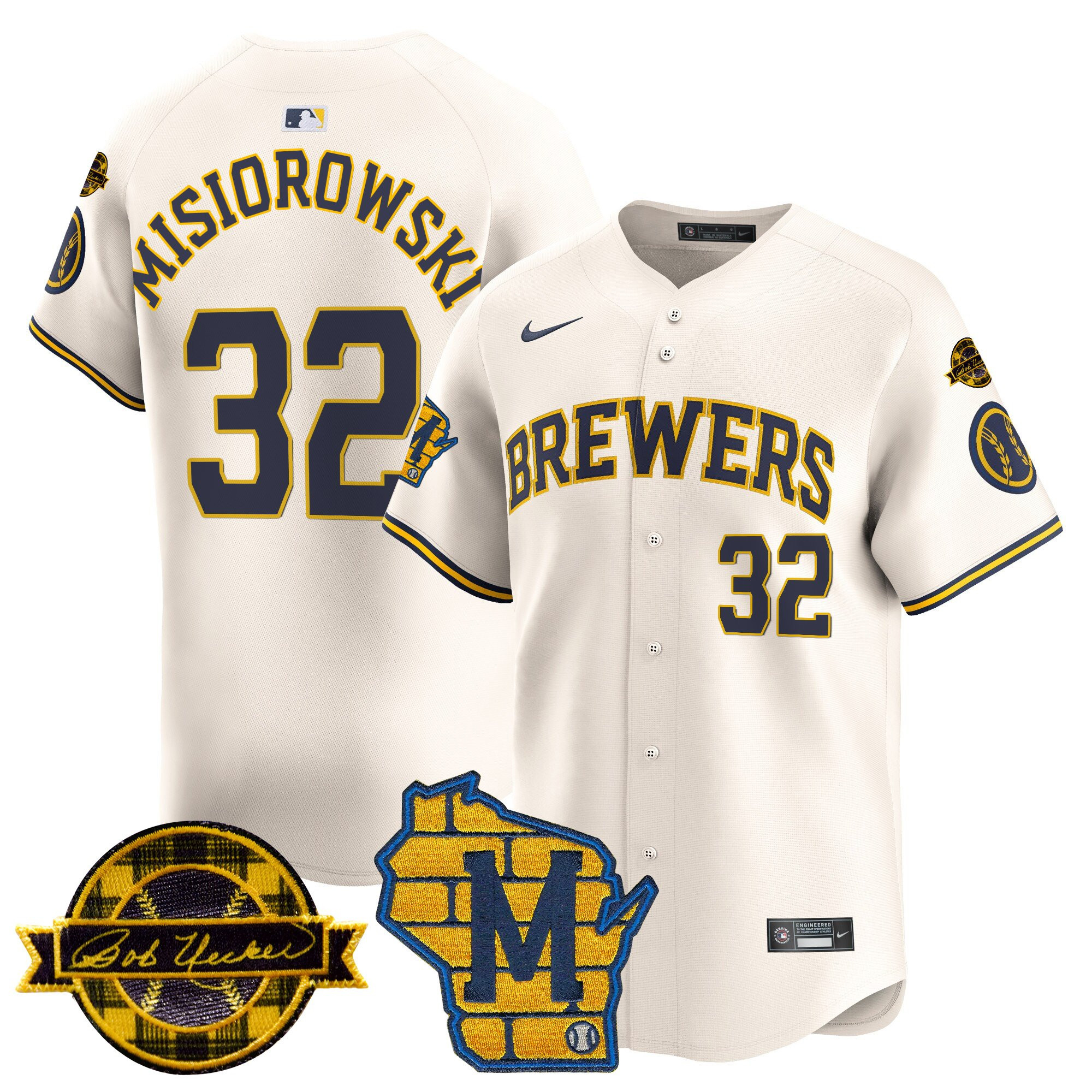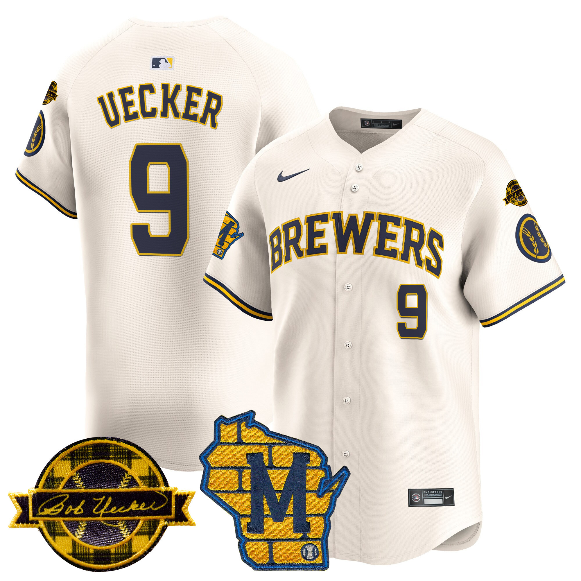 Men’s Milwaukee Brewers Home & Bob Uecker Patch Vapor Premier Limited Jersey – All Stitched