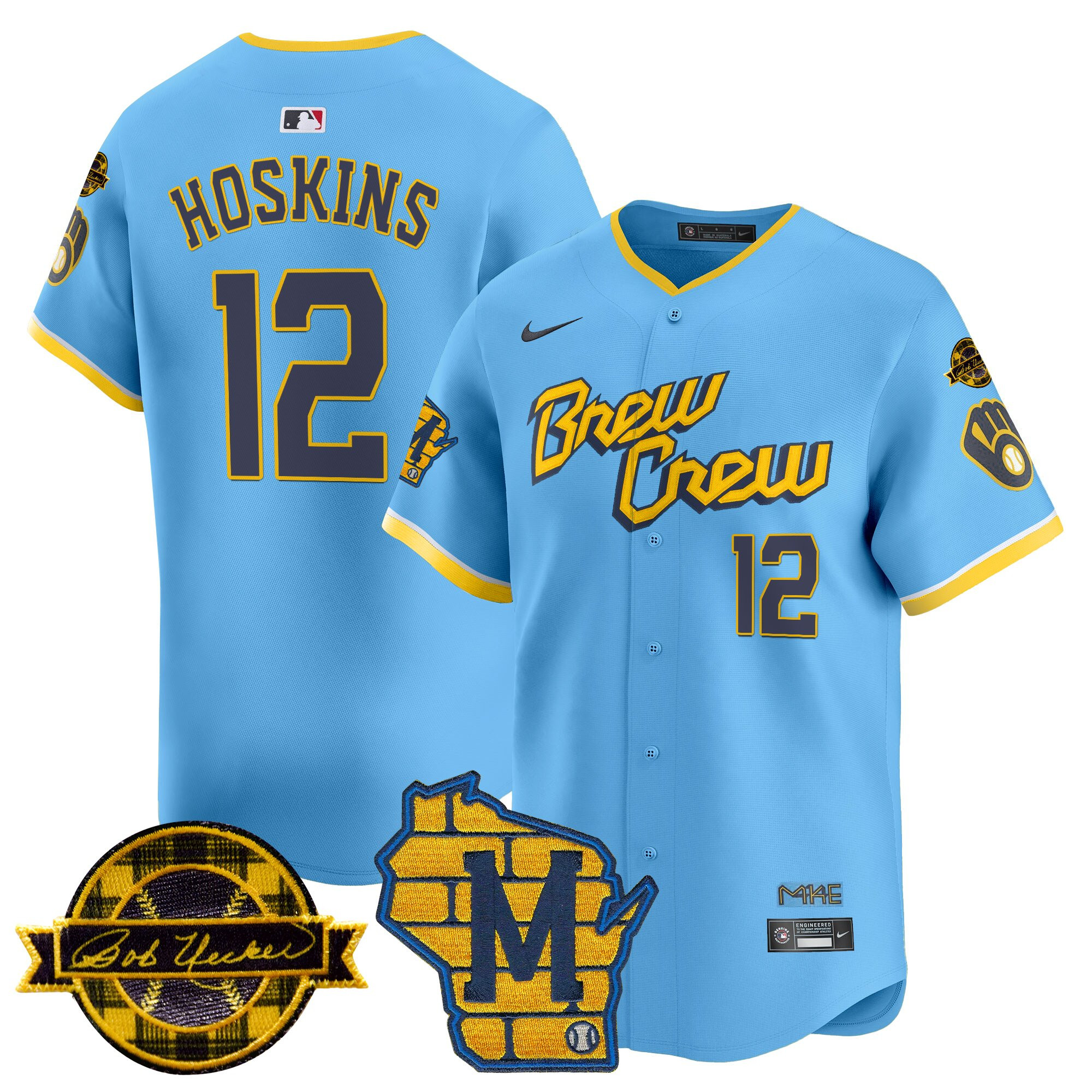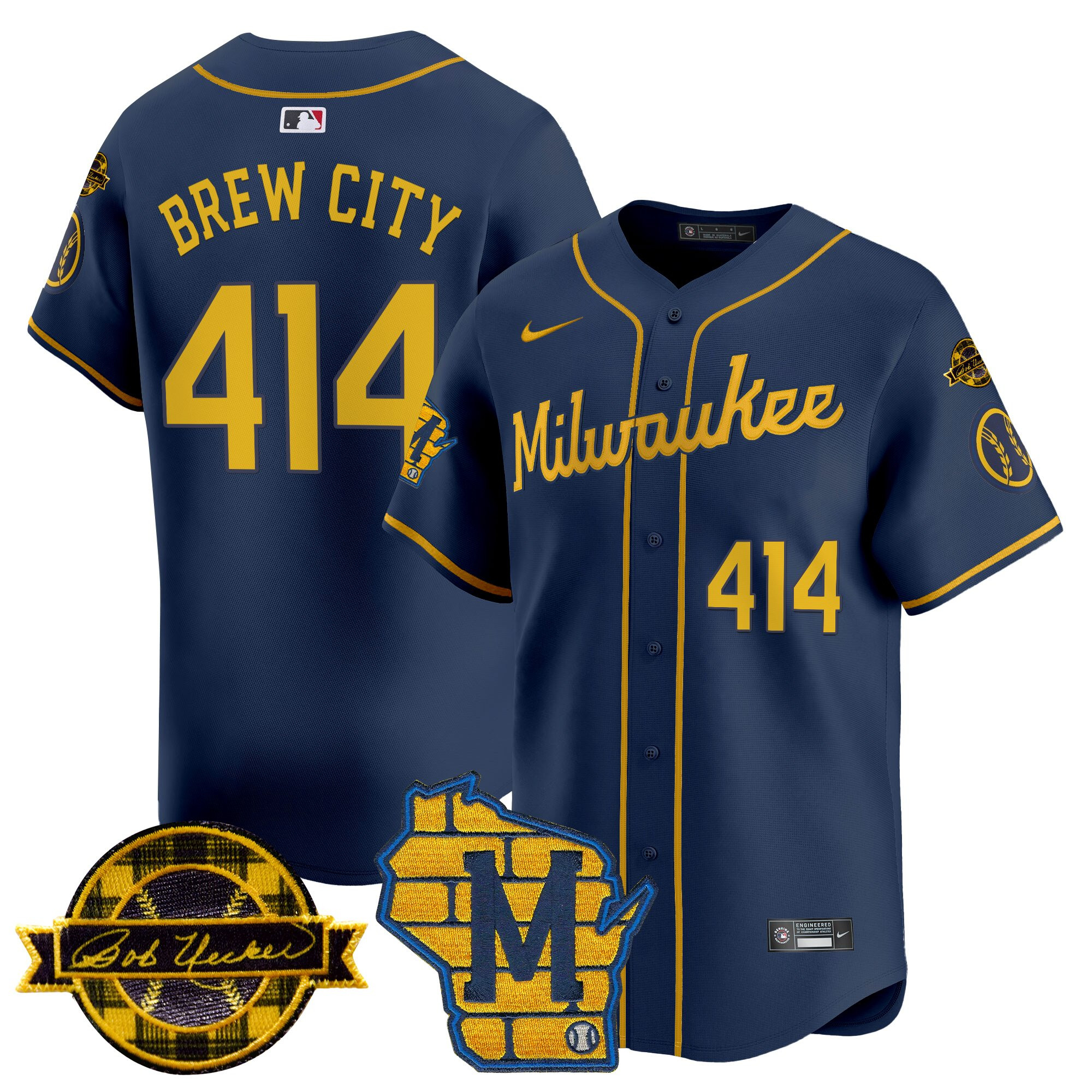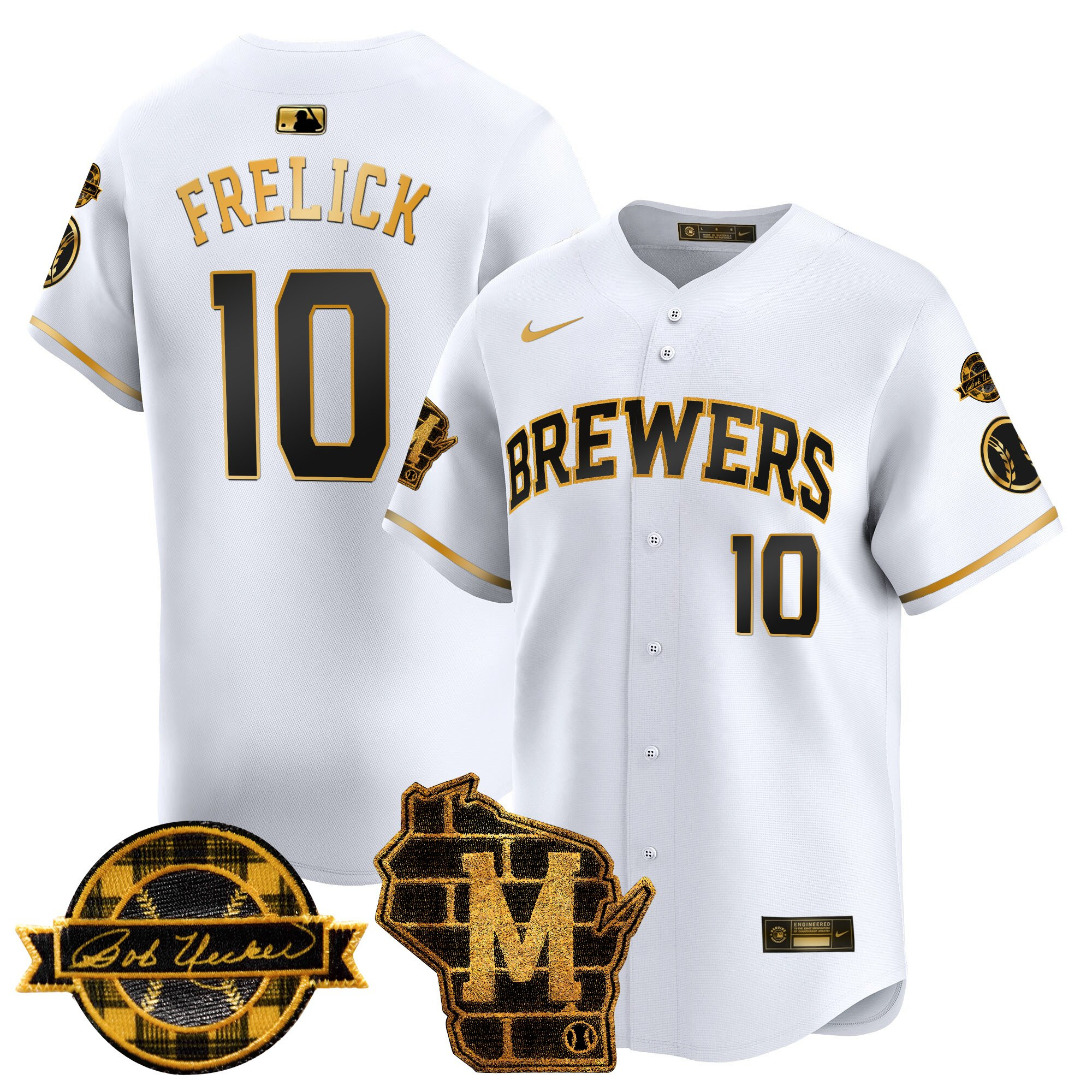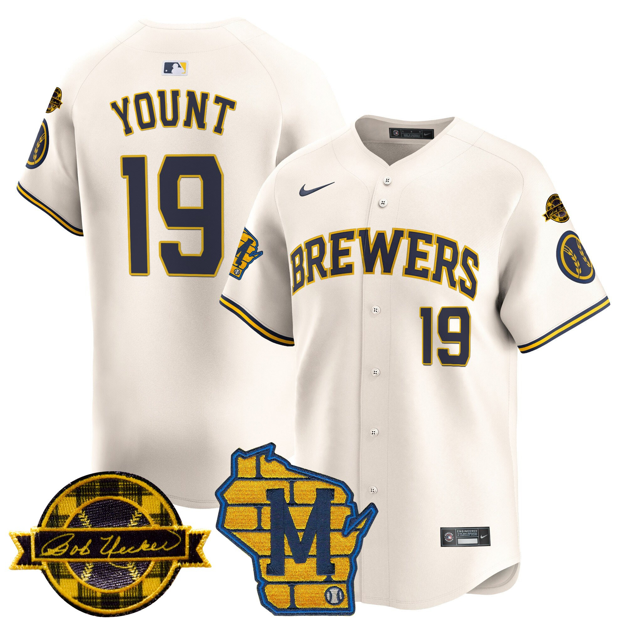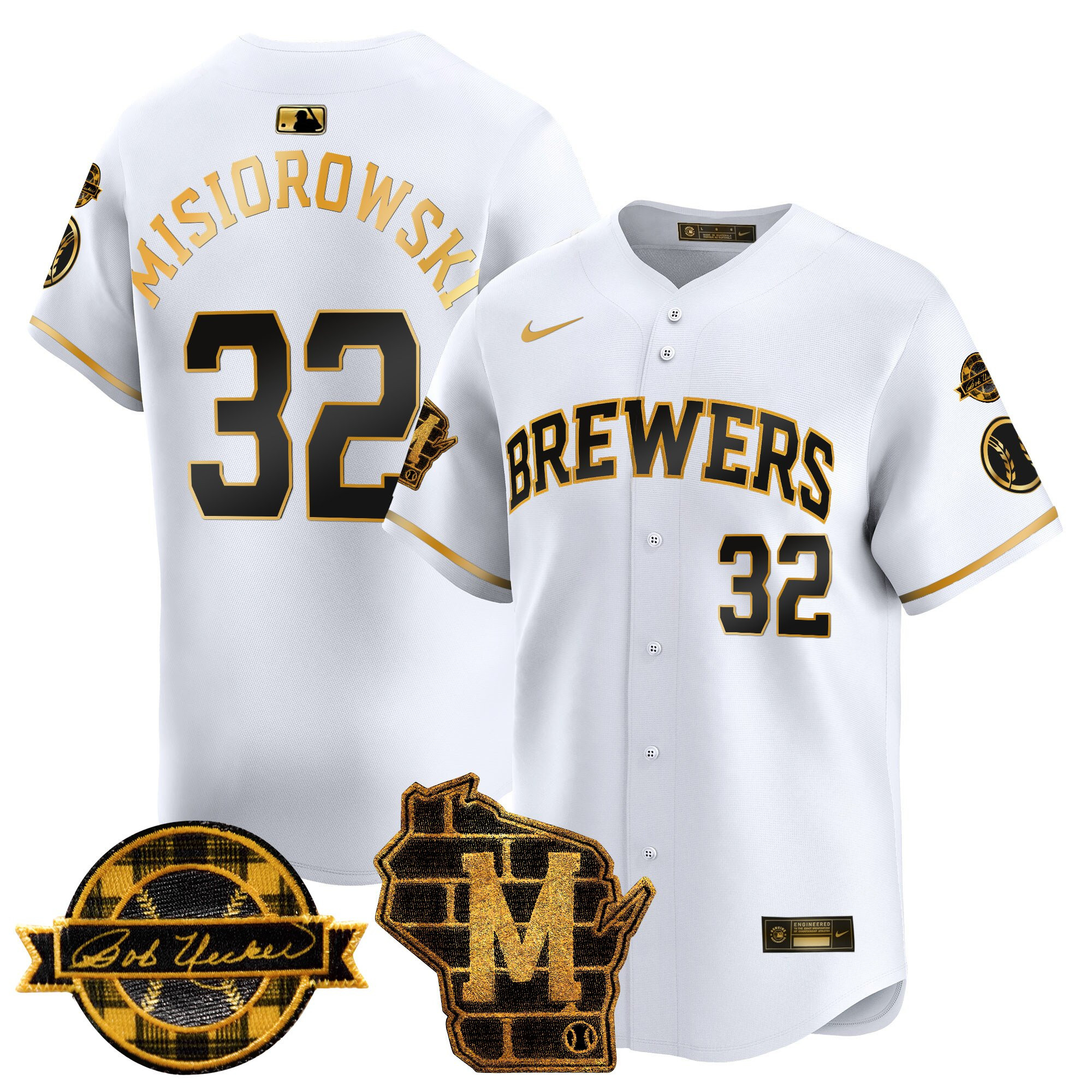 Men’s Milwaukee Brewers Home & Bob Uecker Patch Vapor Premier Limited Jersey – All Stitched