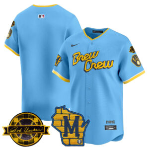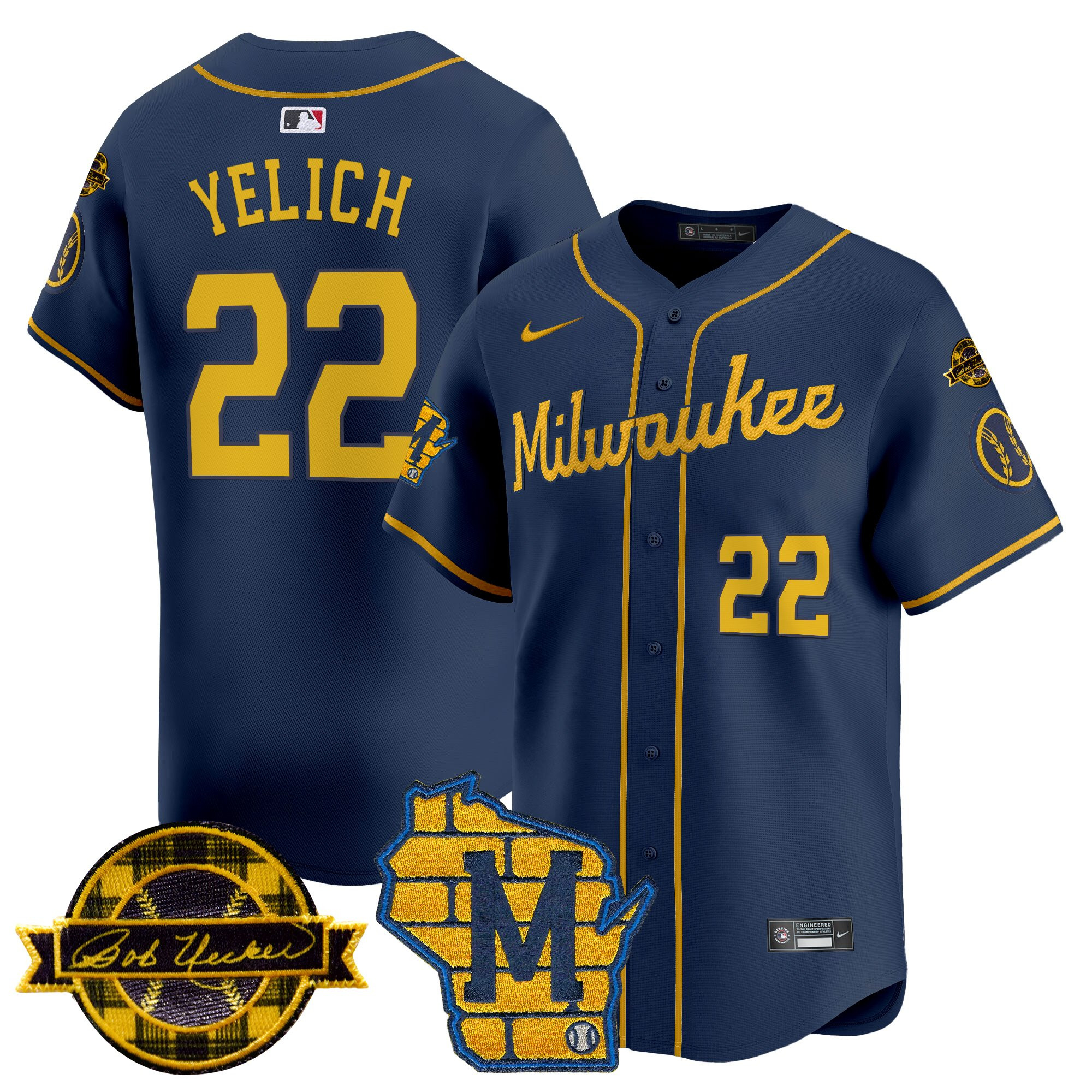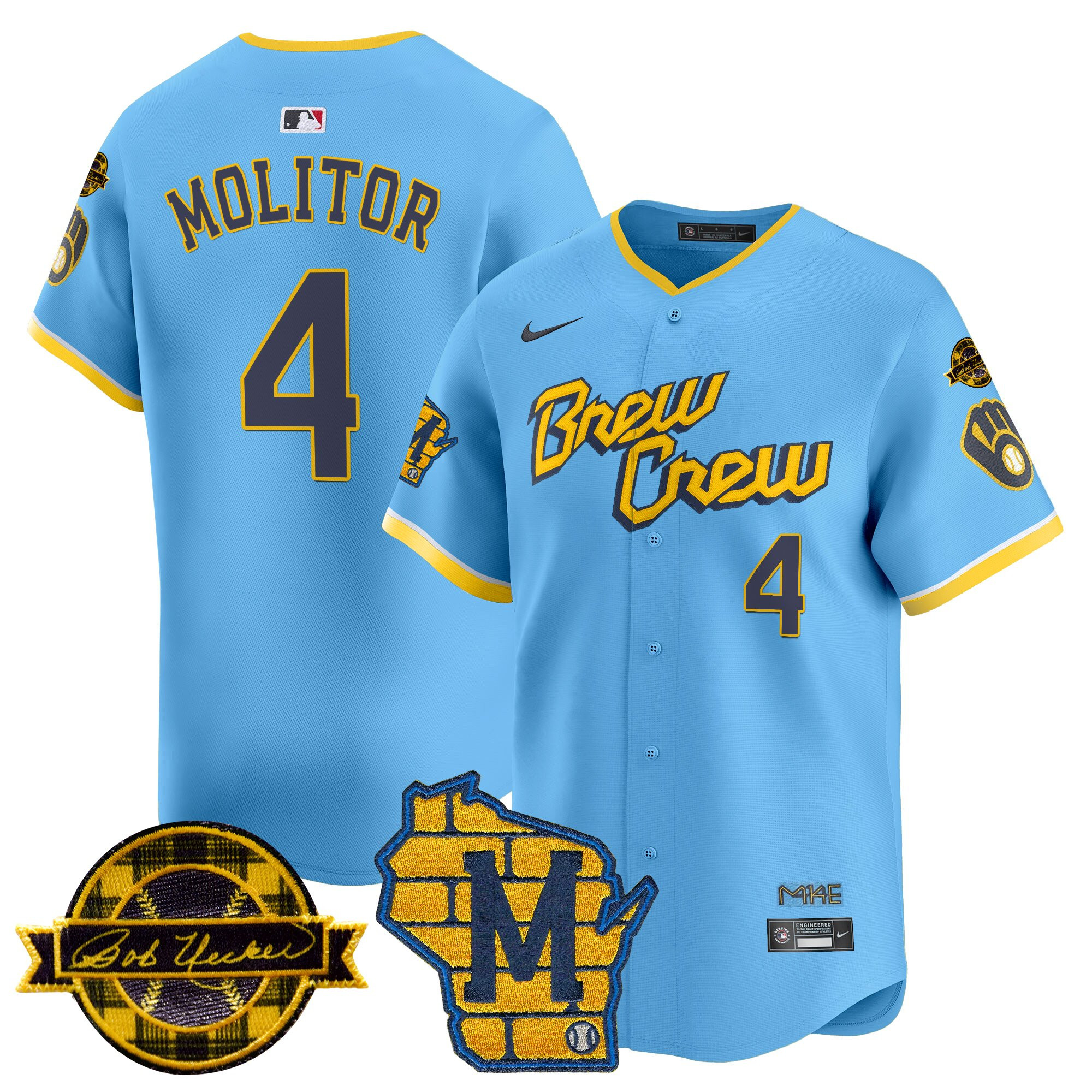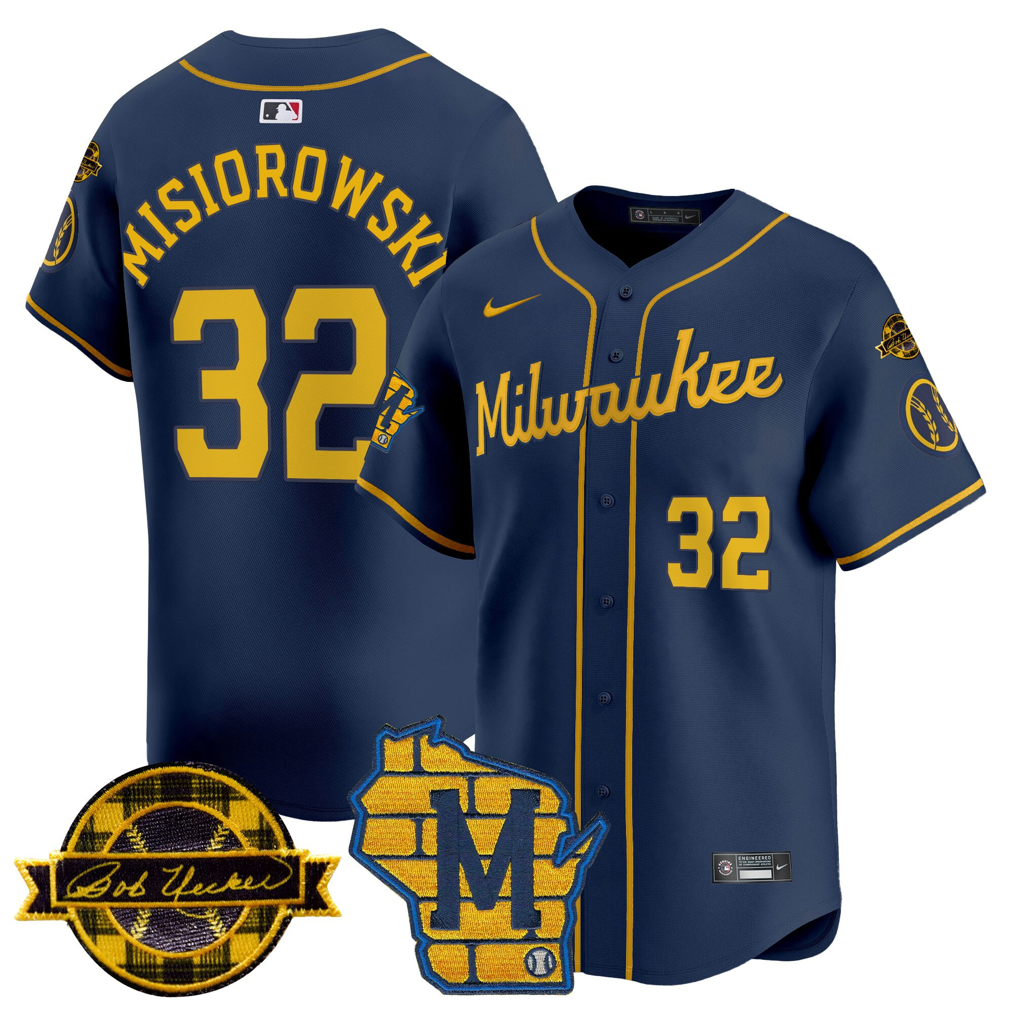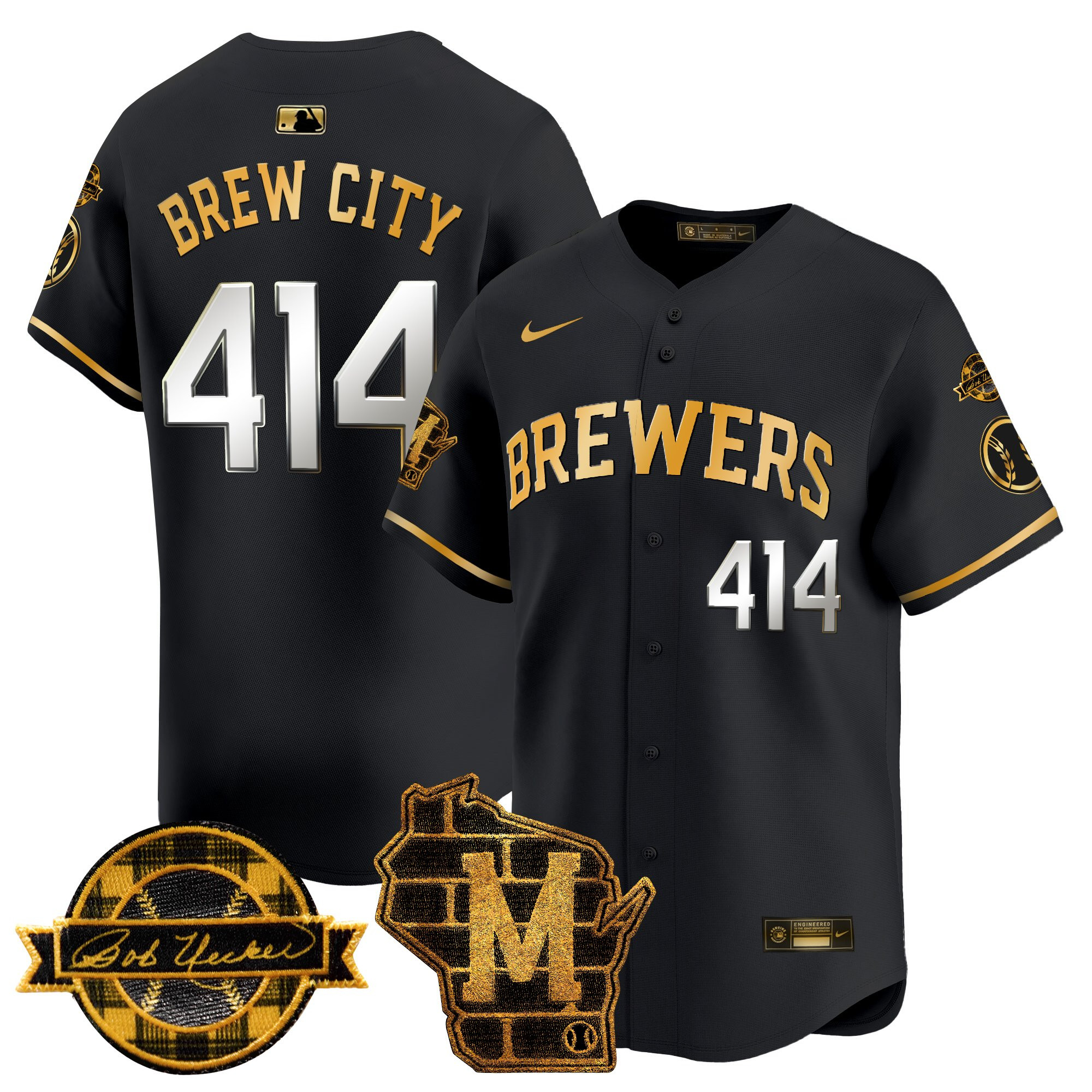 Men’s Milwaukee Brewers Home & Bob Uecker Patch Vapor Premier Limited Jersey – All Stitched