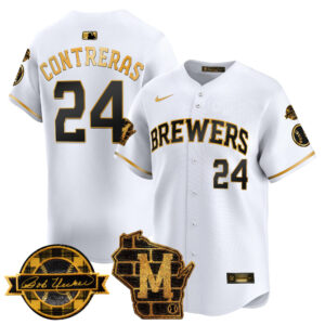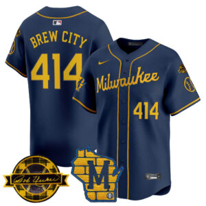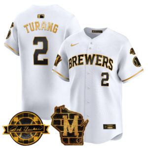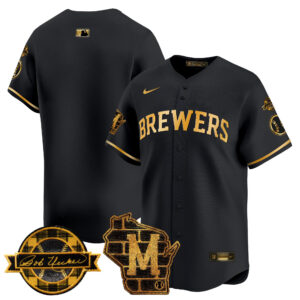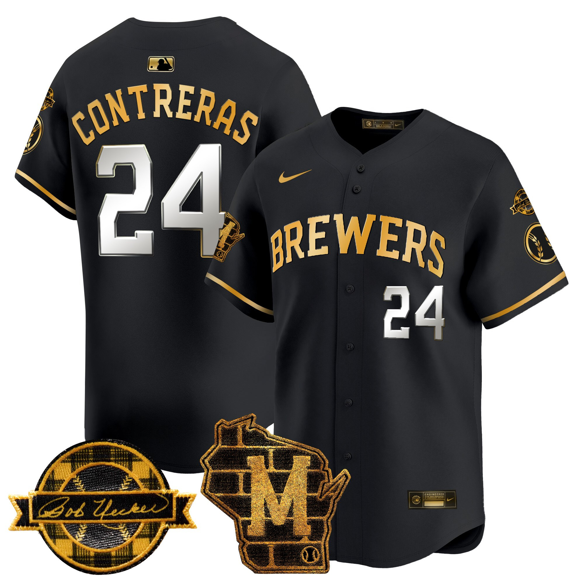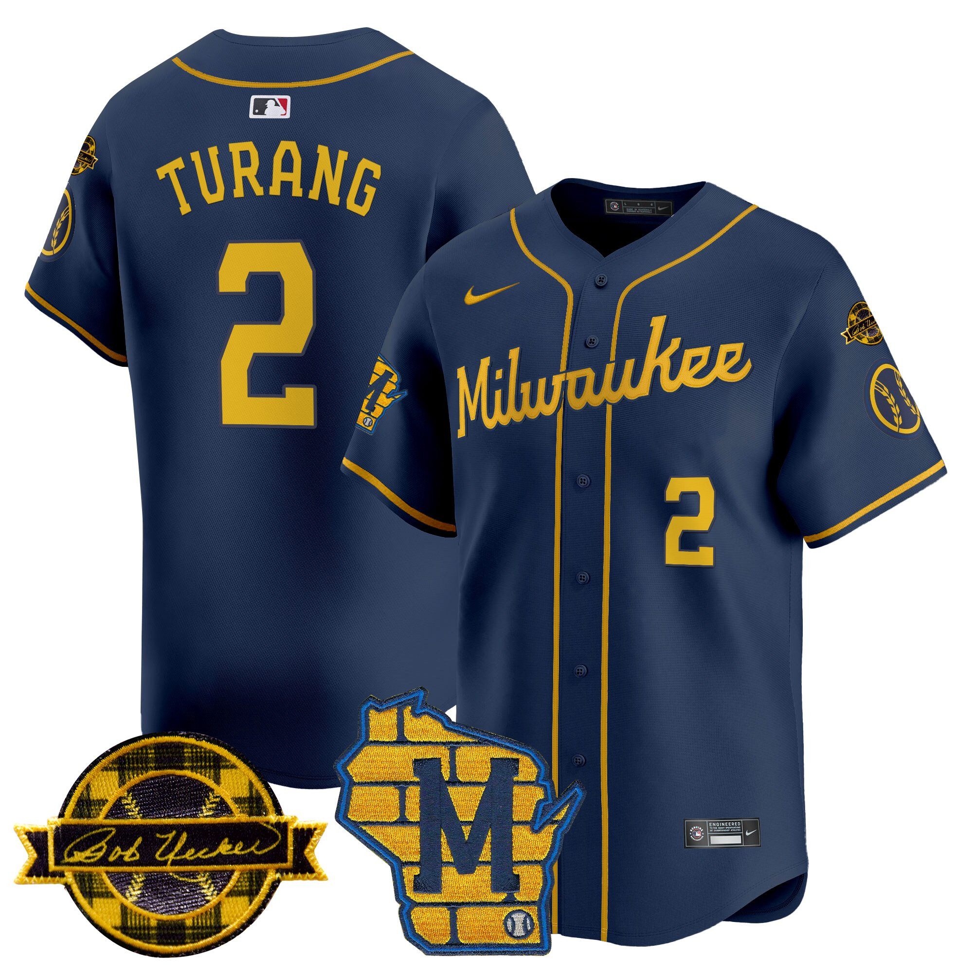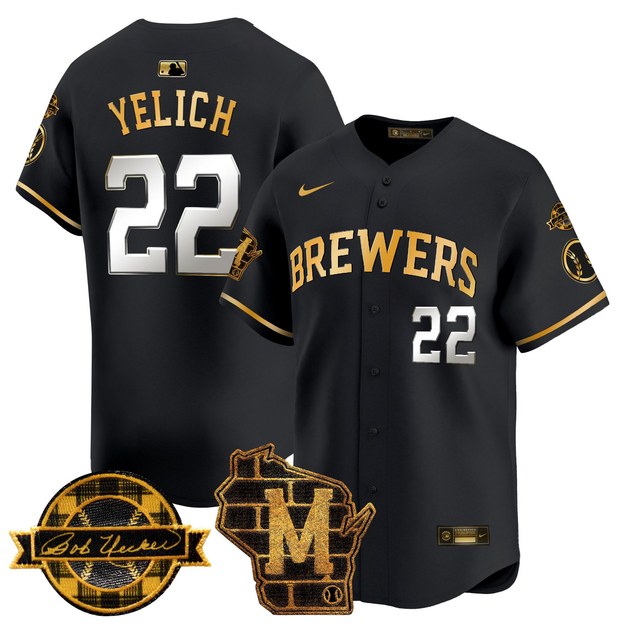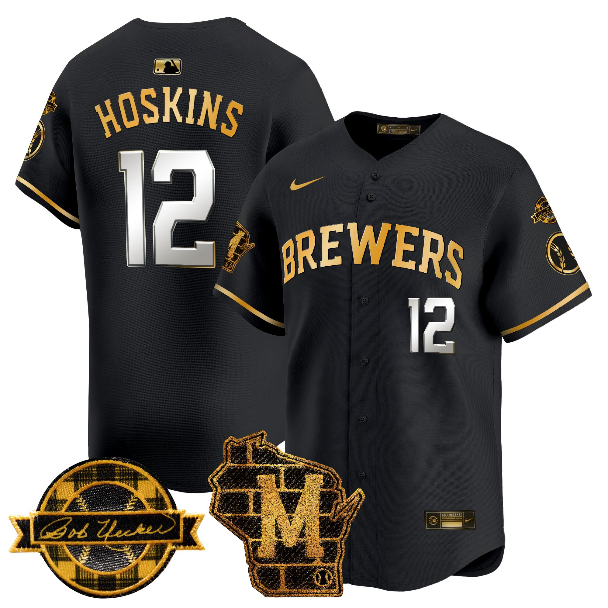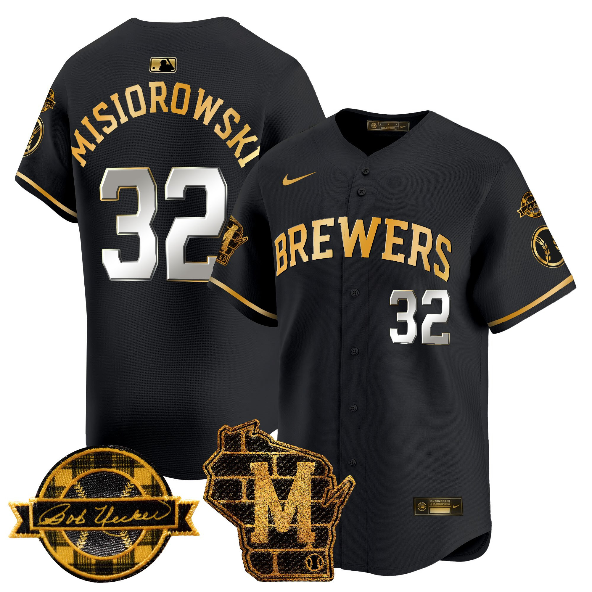 Men’s Milwaukee Brewers Home & Bob Uecker Patch Vapor Premier Limited Jersey – All Stitched