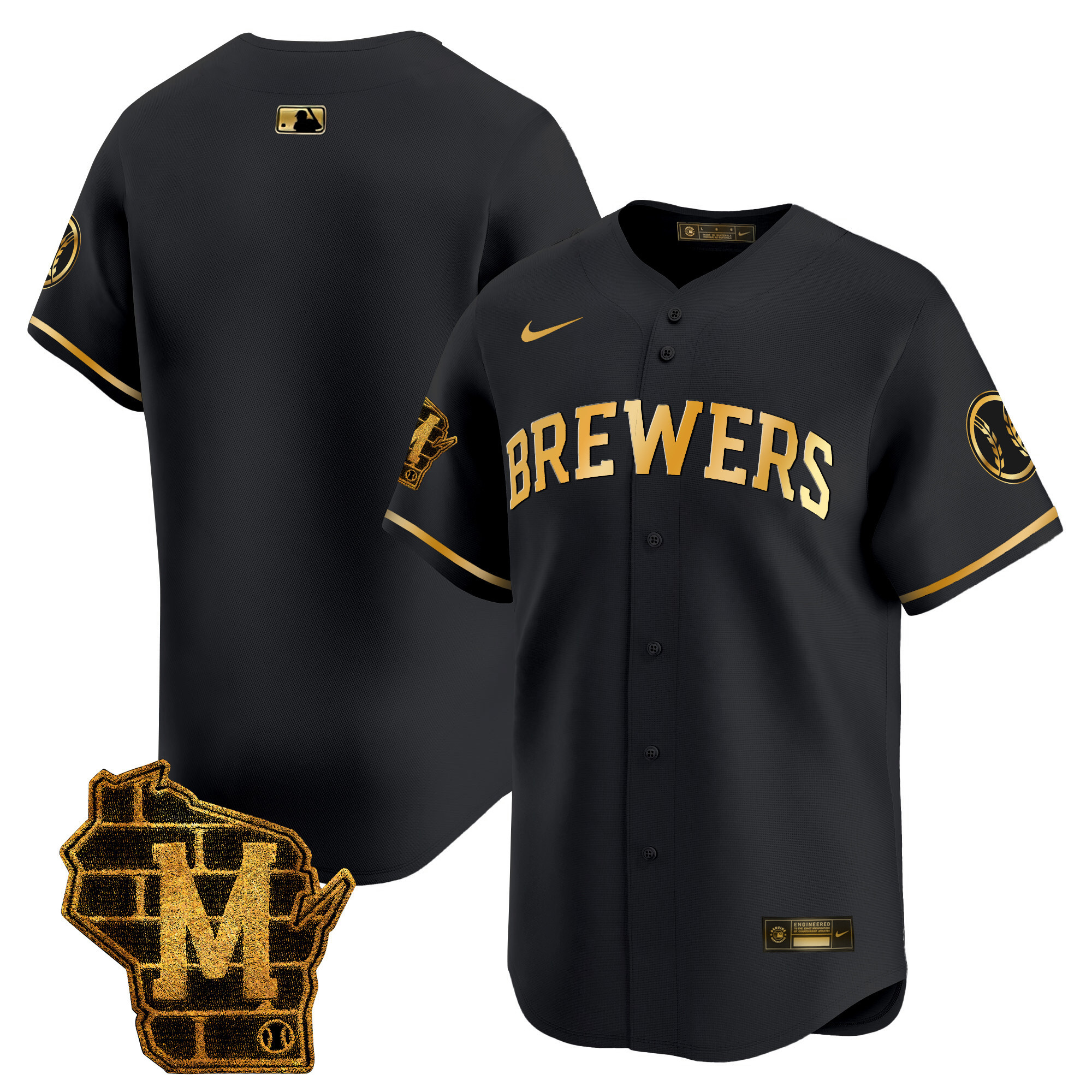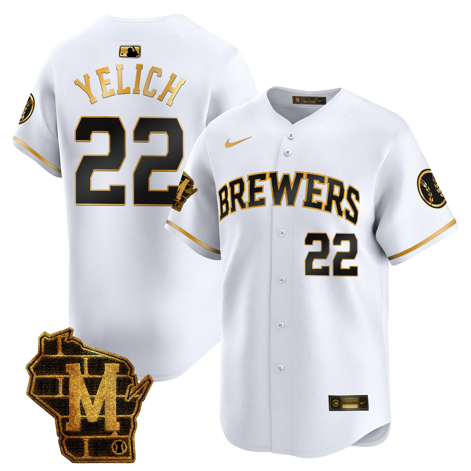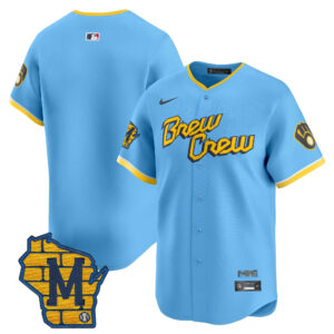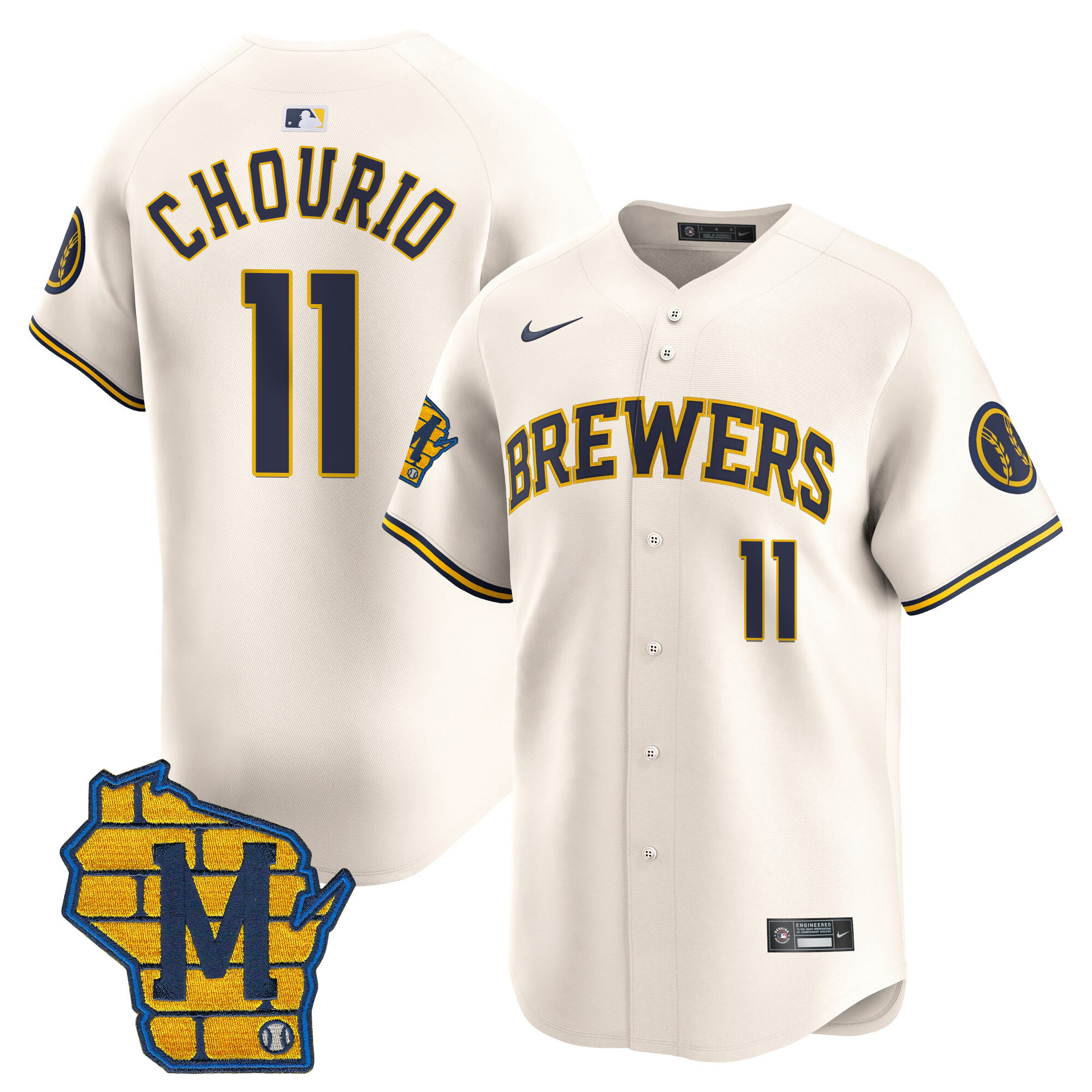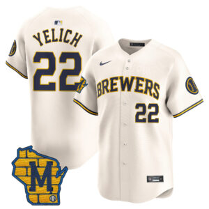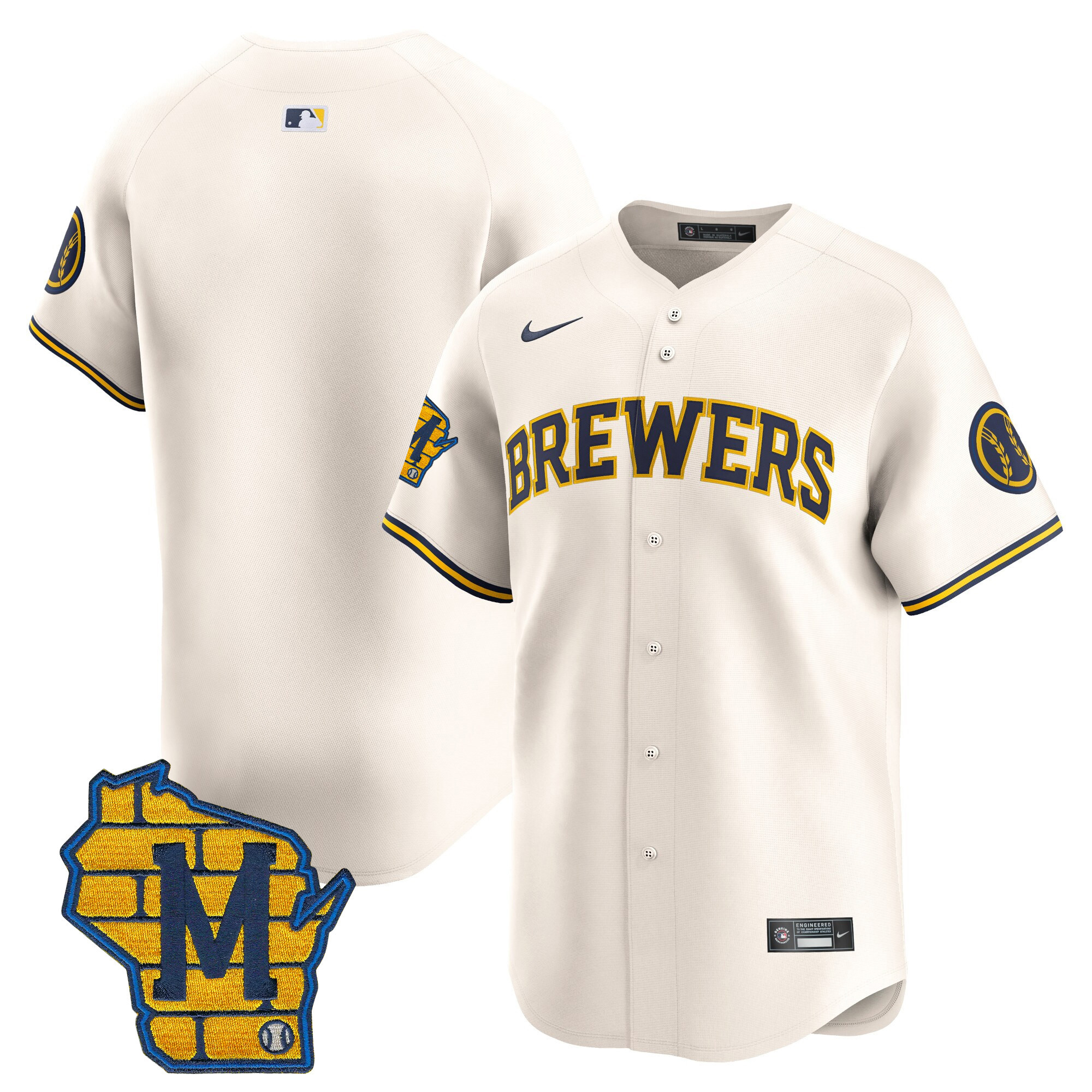 Men’s Milwaukee Brewers Home Patch Vapor Premier Limited Jersey – All Stitched