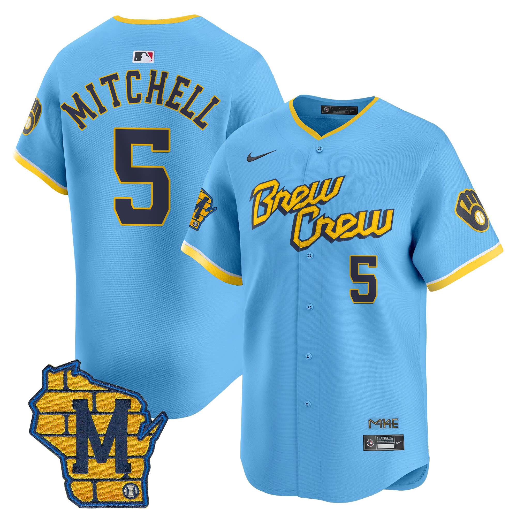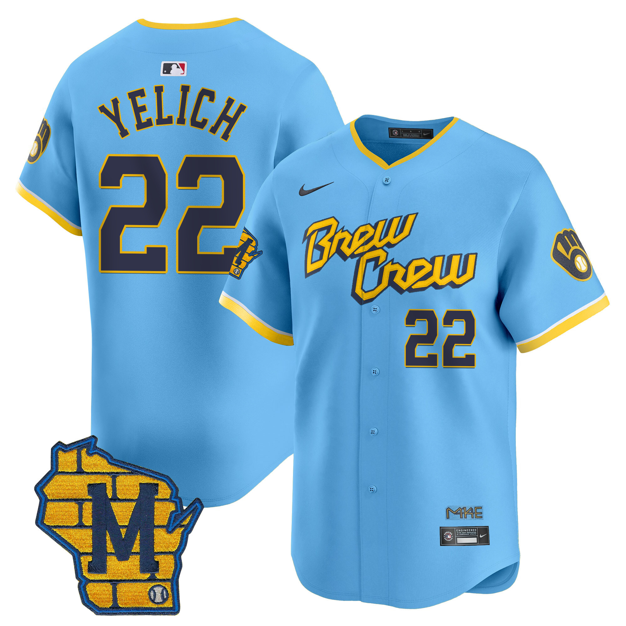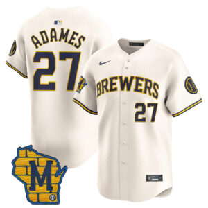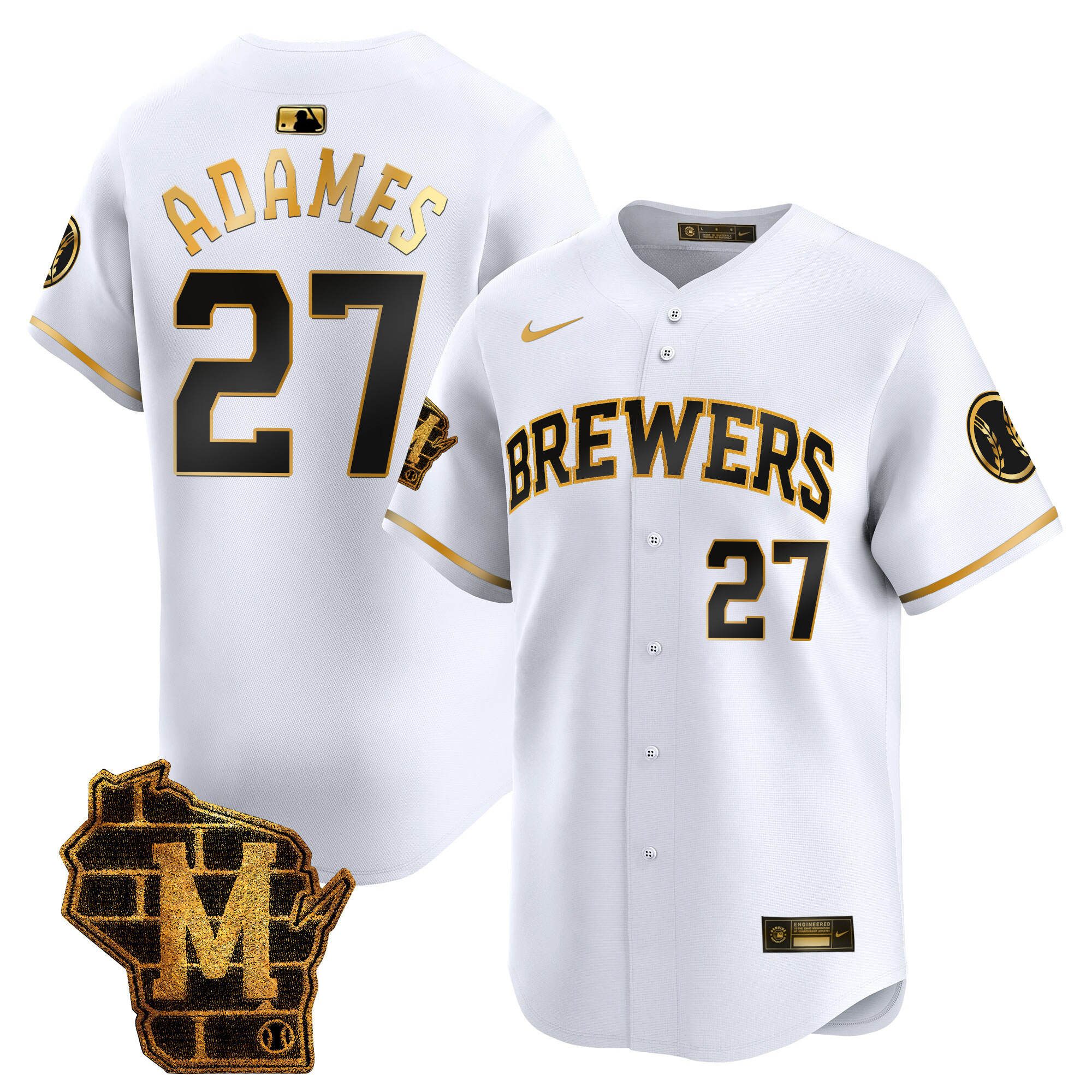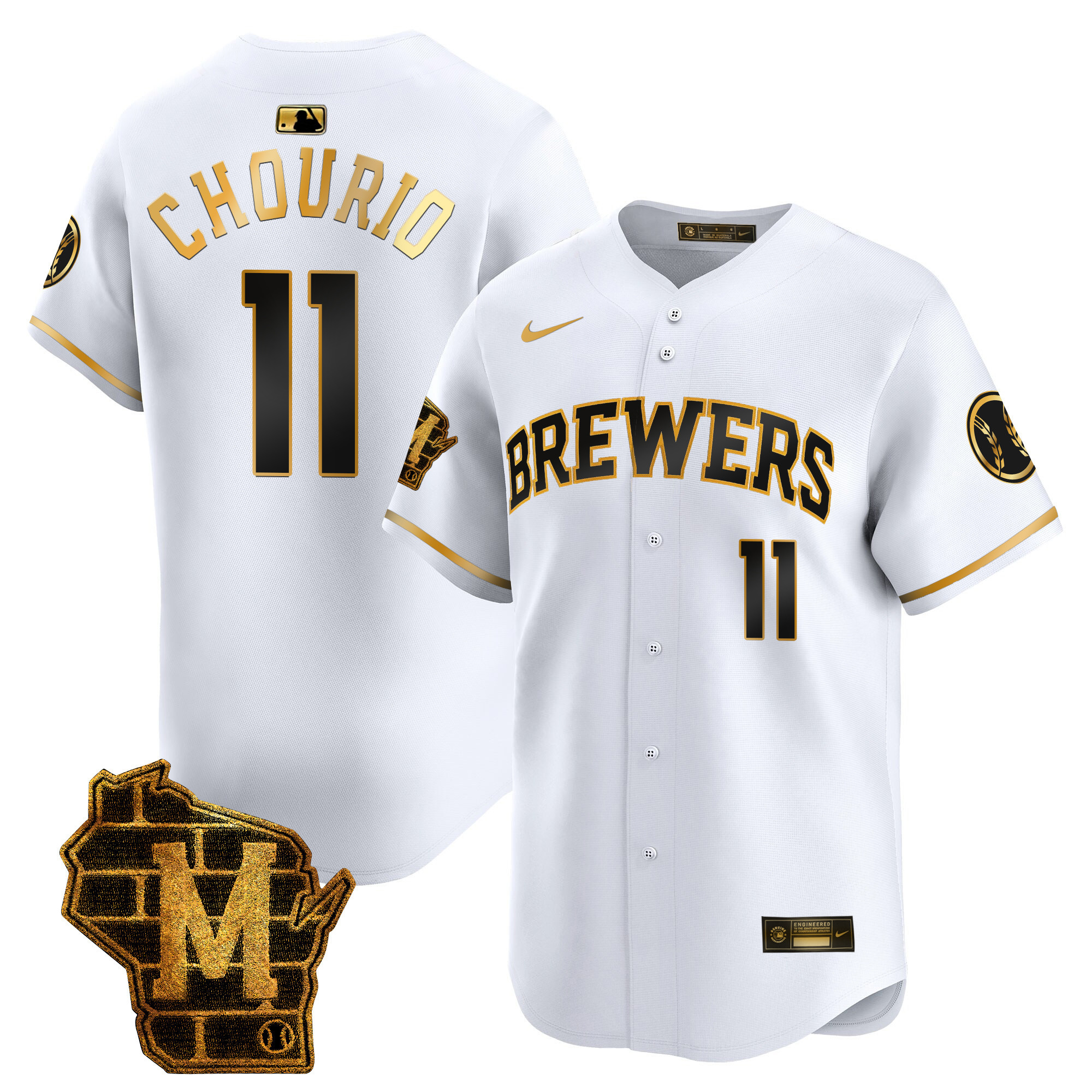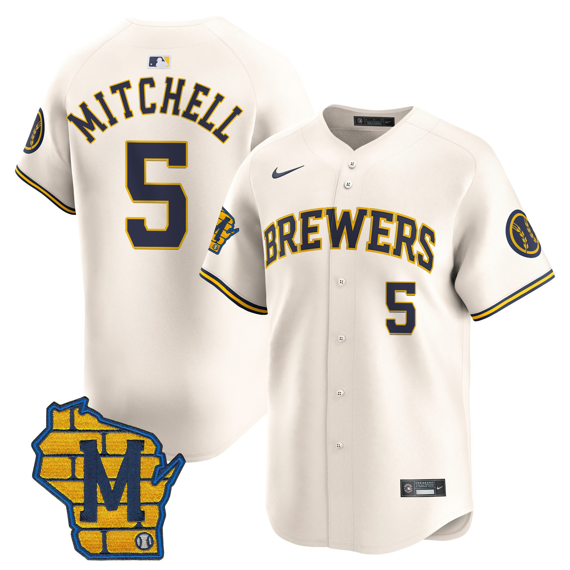 Men’s Milwaukee Brewers Home Patch Vapor Premier Limited Jersey – All Stitched