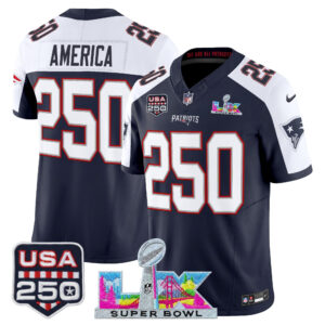 Men’s New England Patriots “Super Bowl LX & United States 250th Anniversary Patch” Vapor Limited Jersey – All Stitched