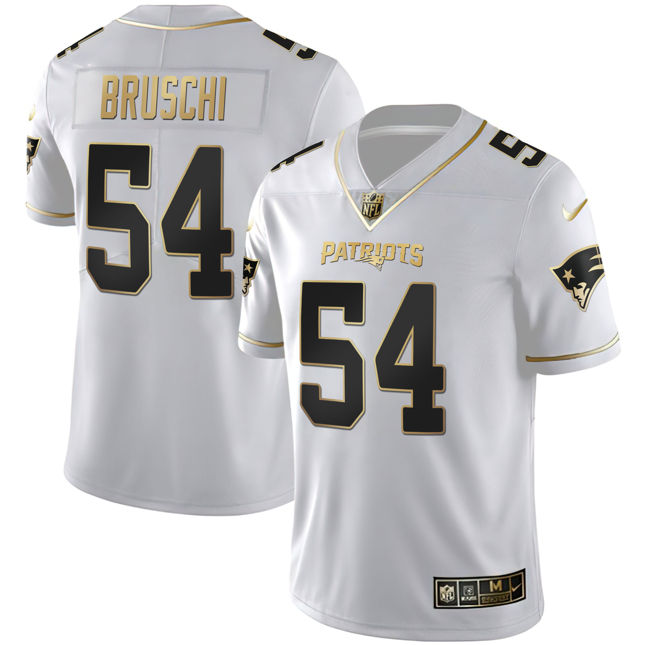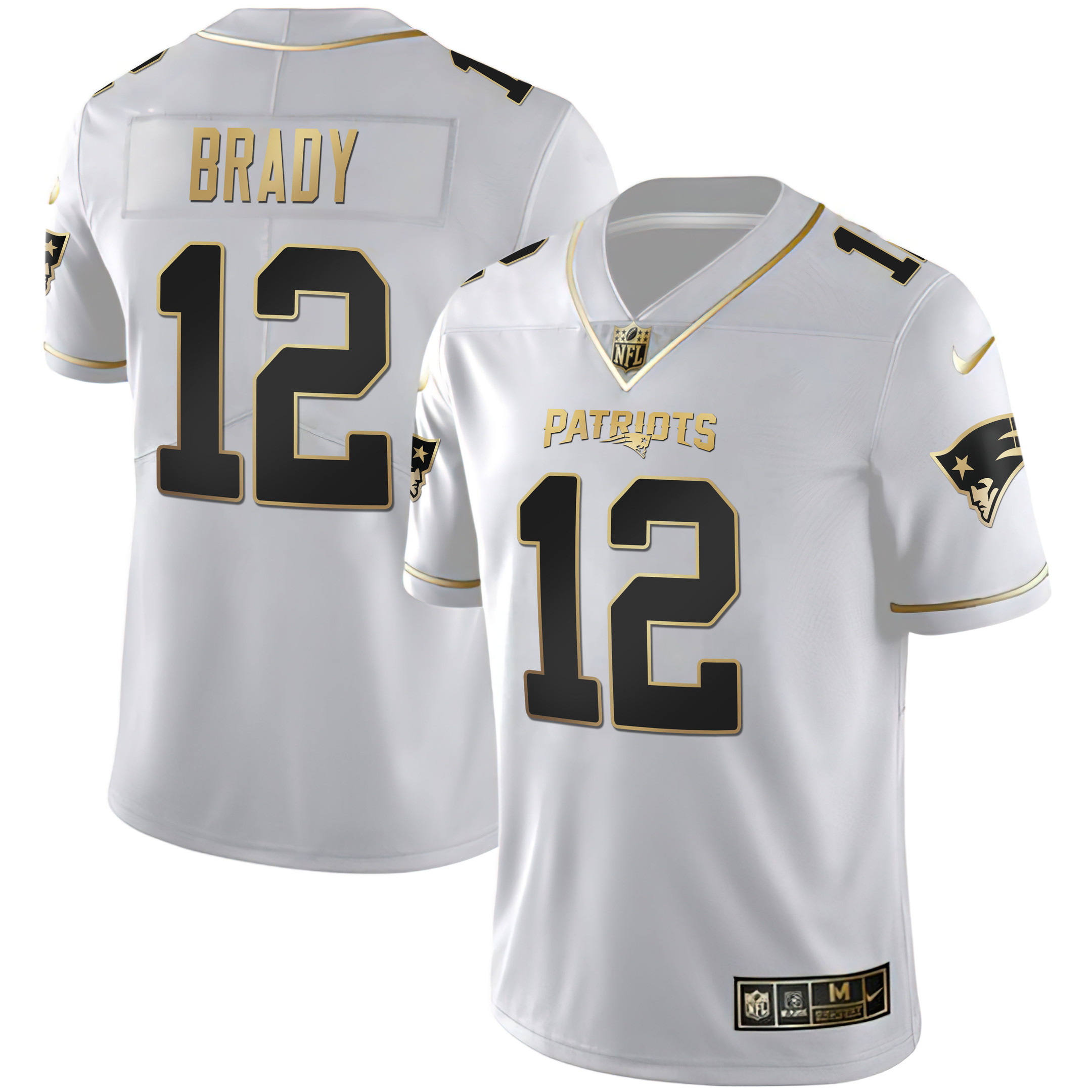 Men’s New England Patriots White Gold & Black Gold Jersey – All Stitched