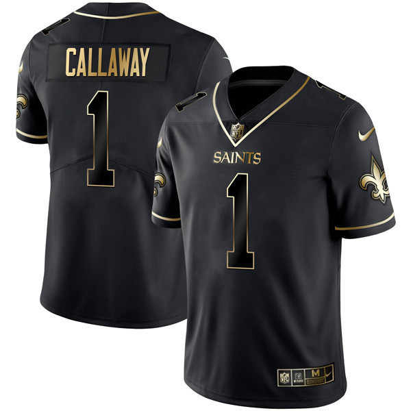 Men’s New Orleans Saints Black Gold Jersey – All Stitched