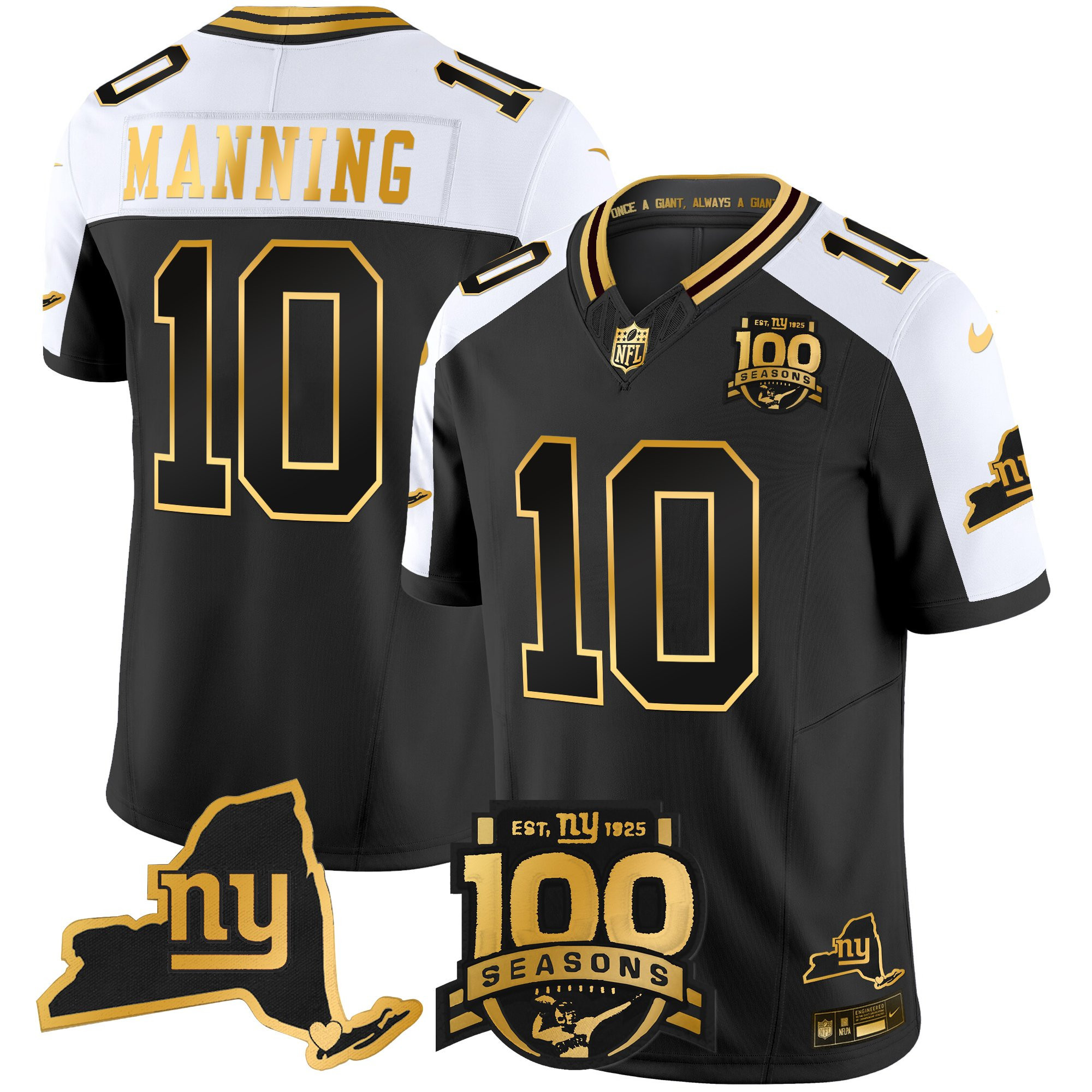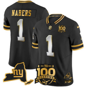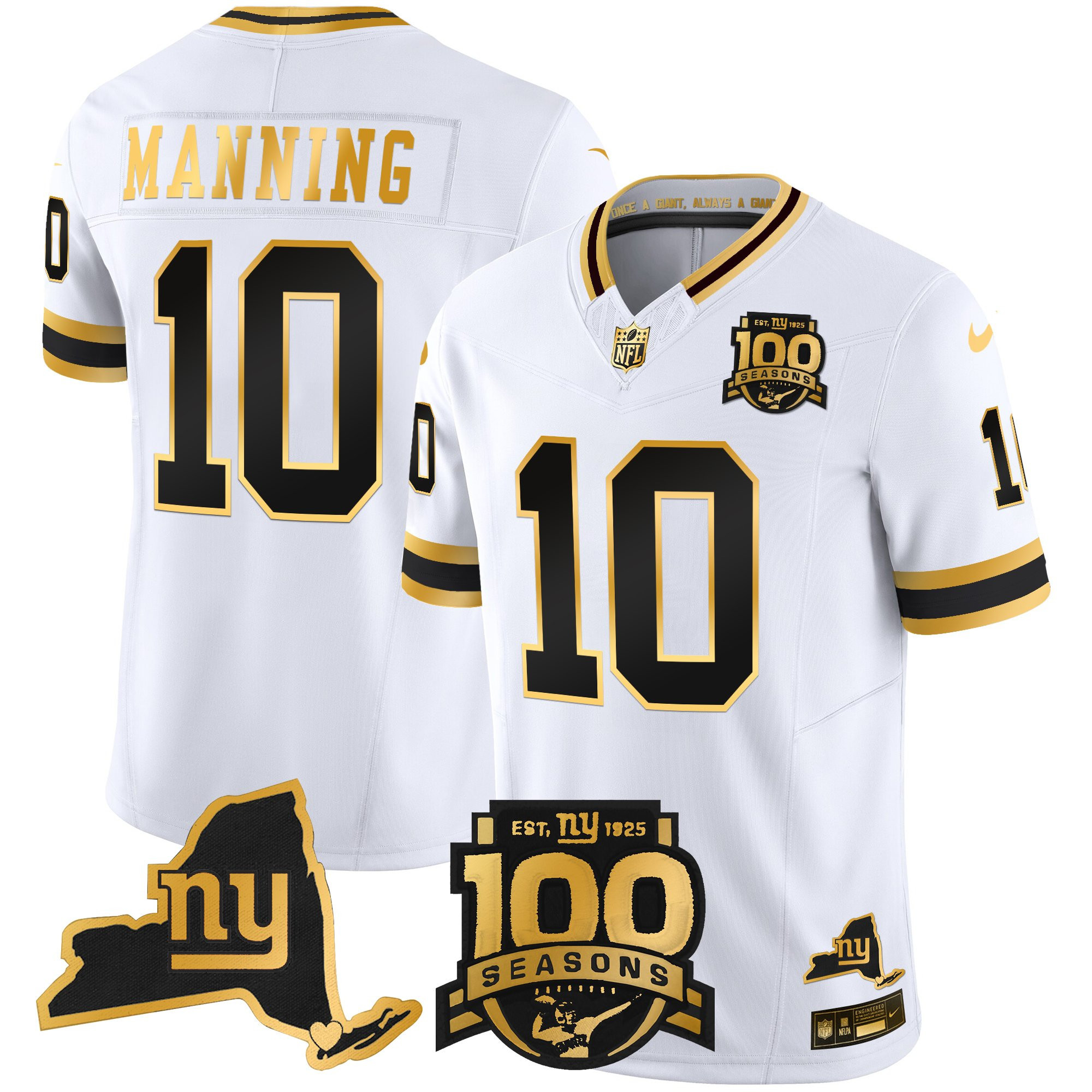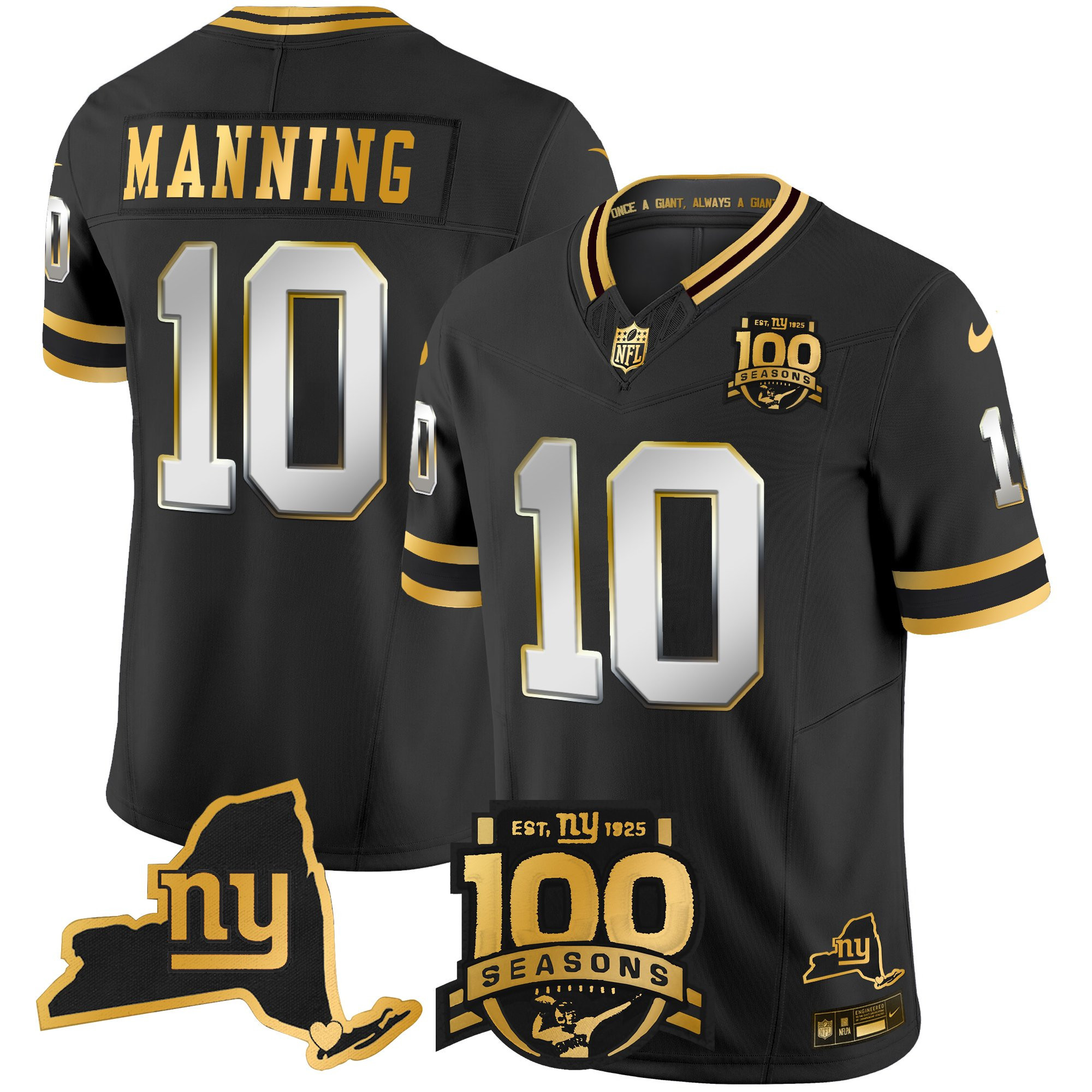 New York Giants 100th Season & State Patch Gold Vapor Limited Custom Jersey – All Stitched