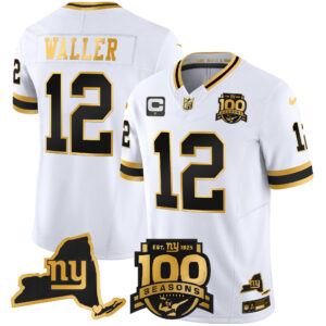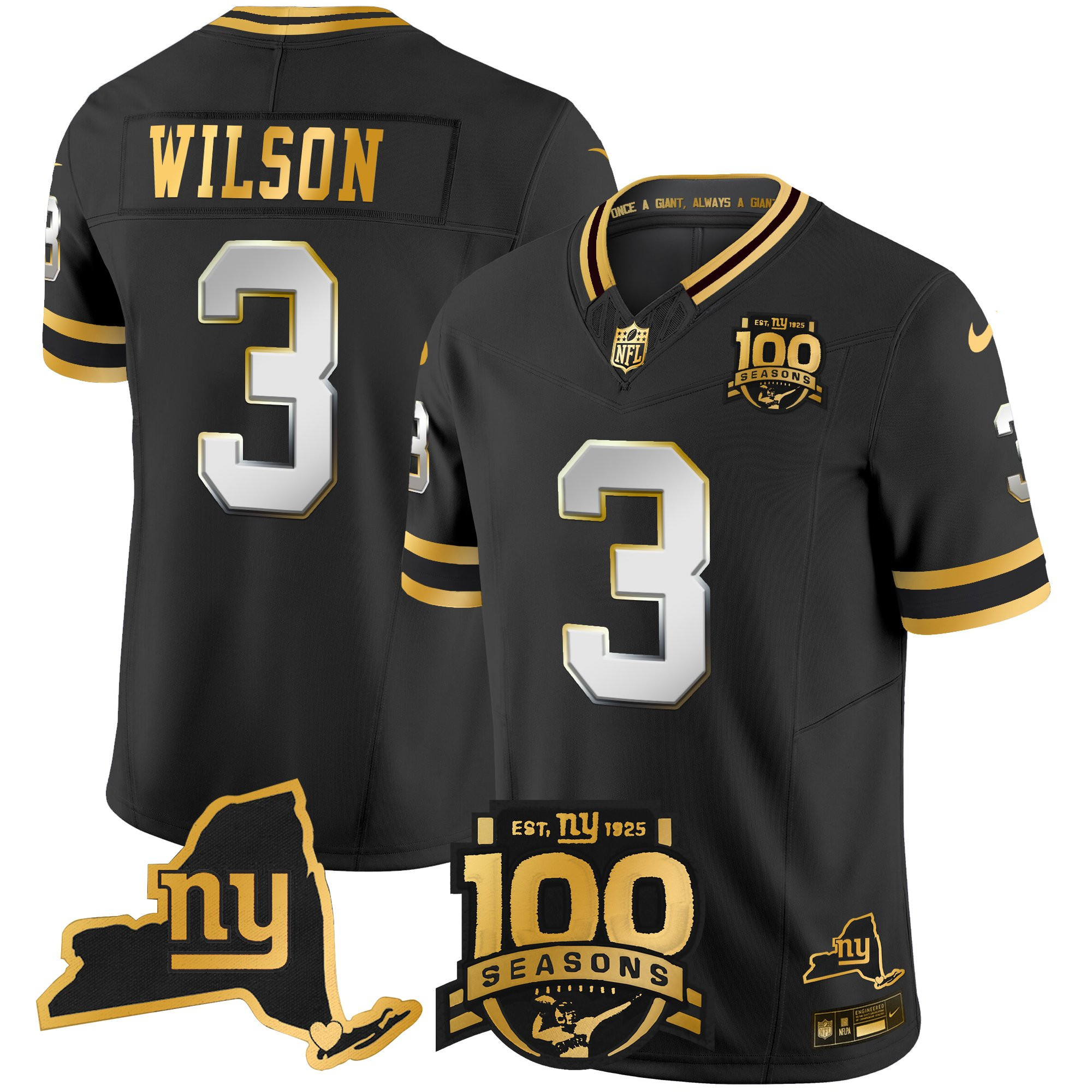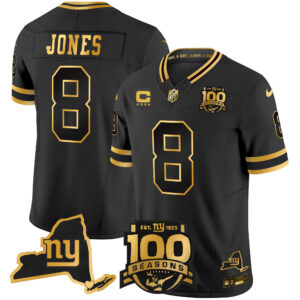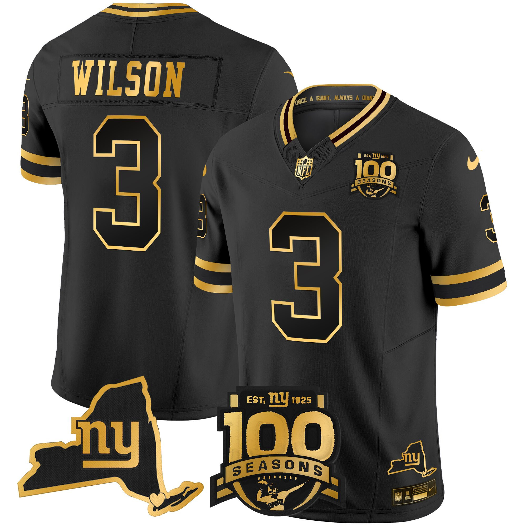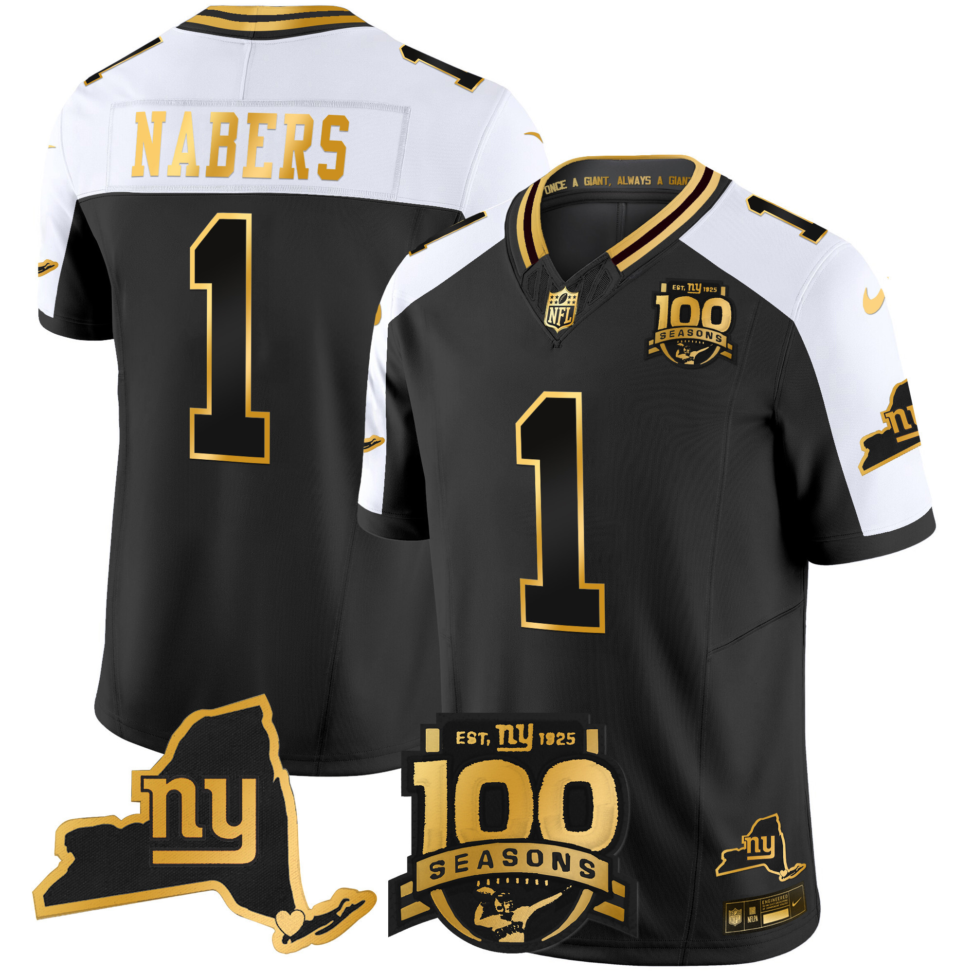 New York Giants 100th Season & State Patch Gold Vapor Limited Custom Jersey – All Stitched