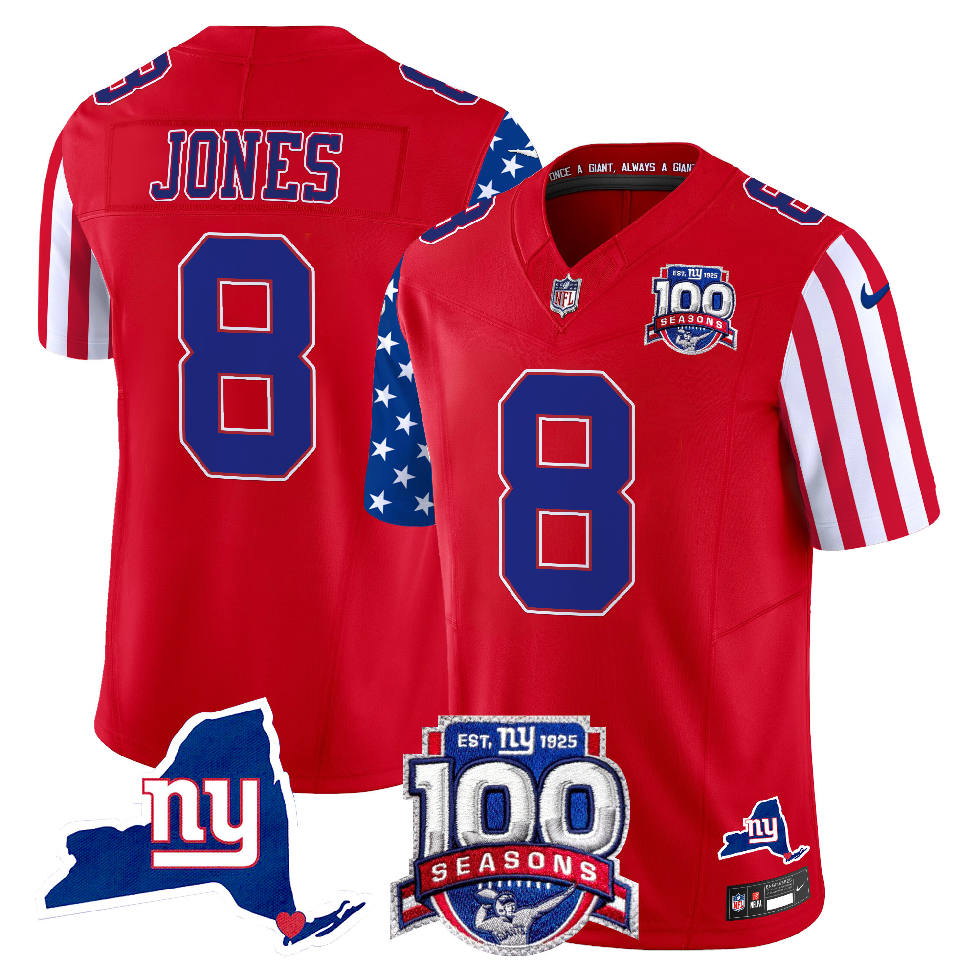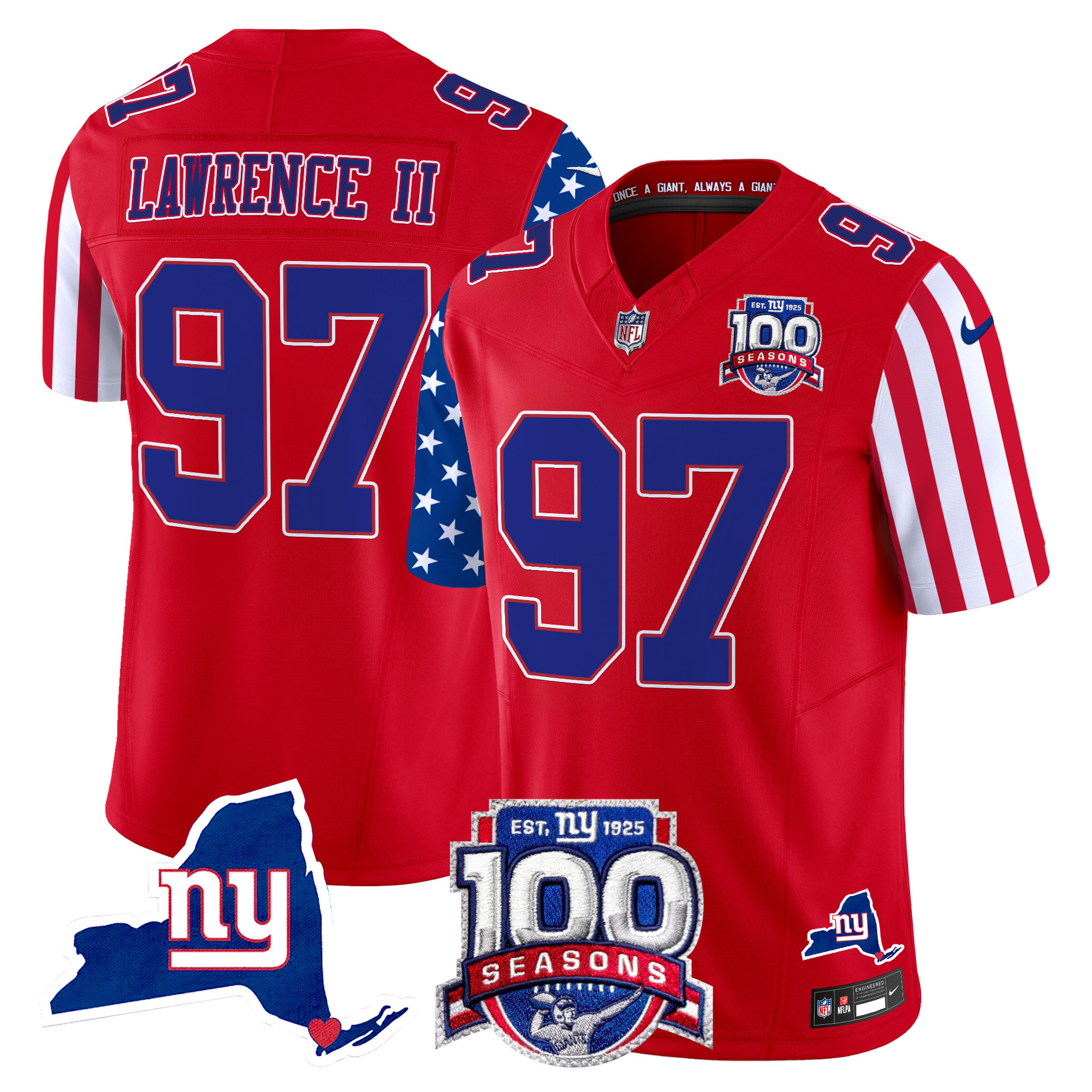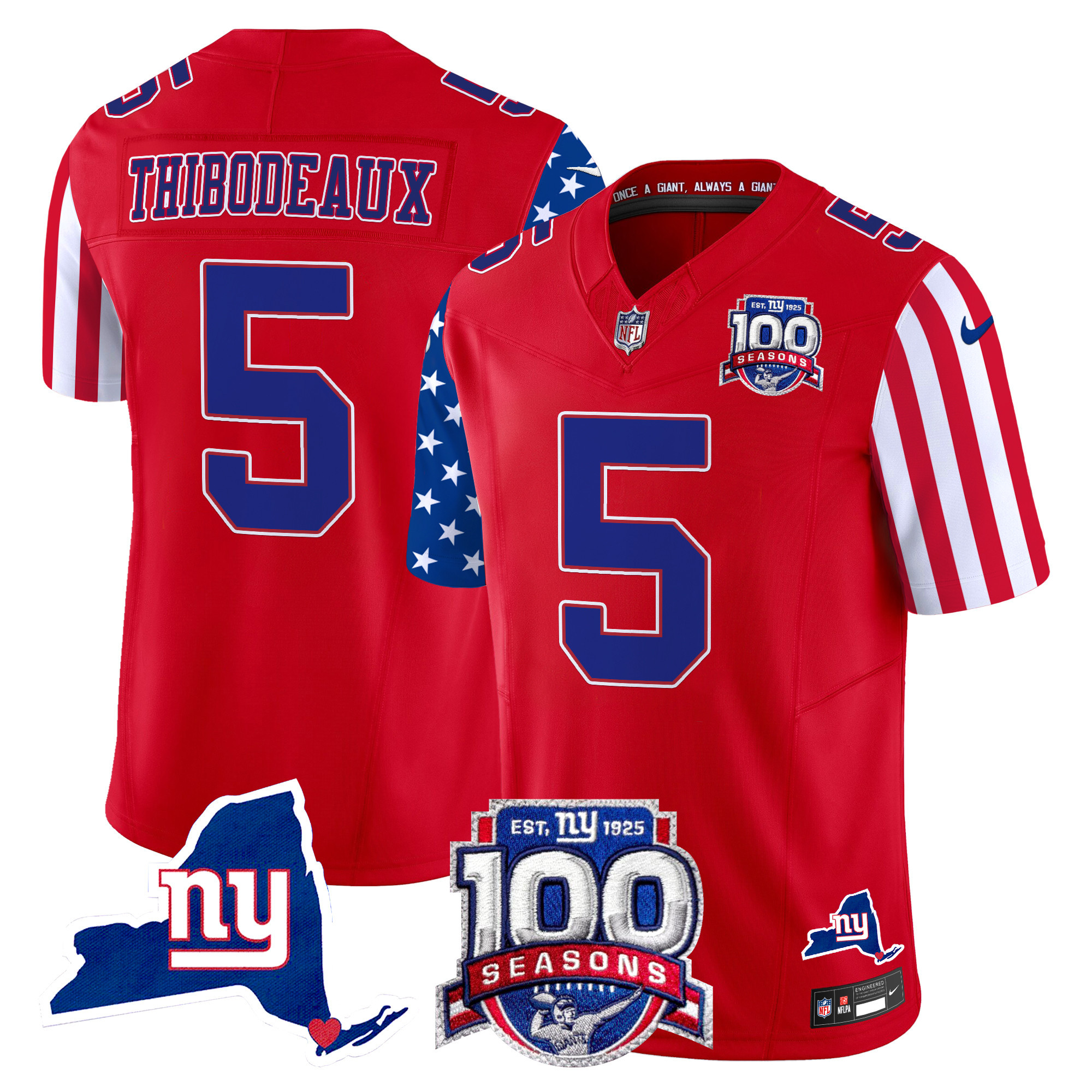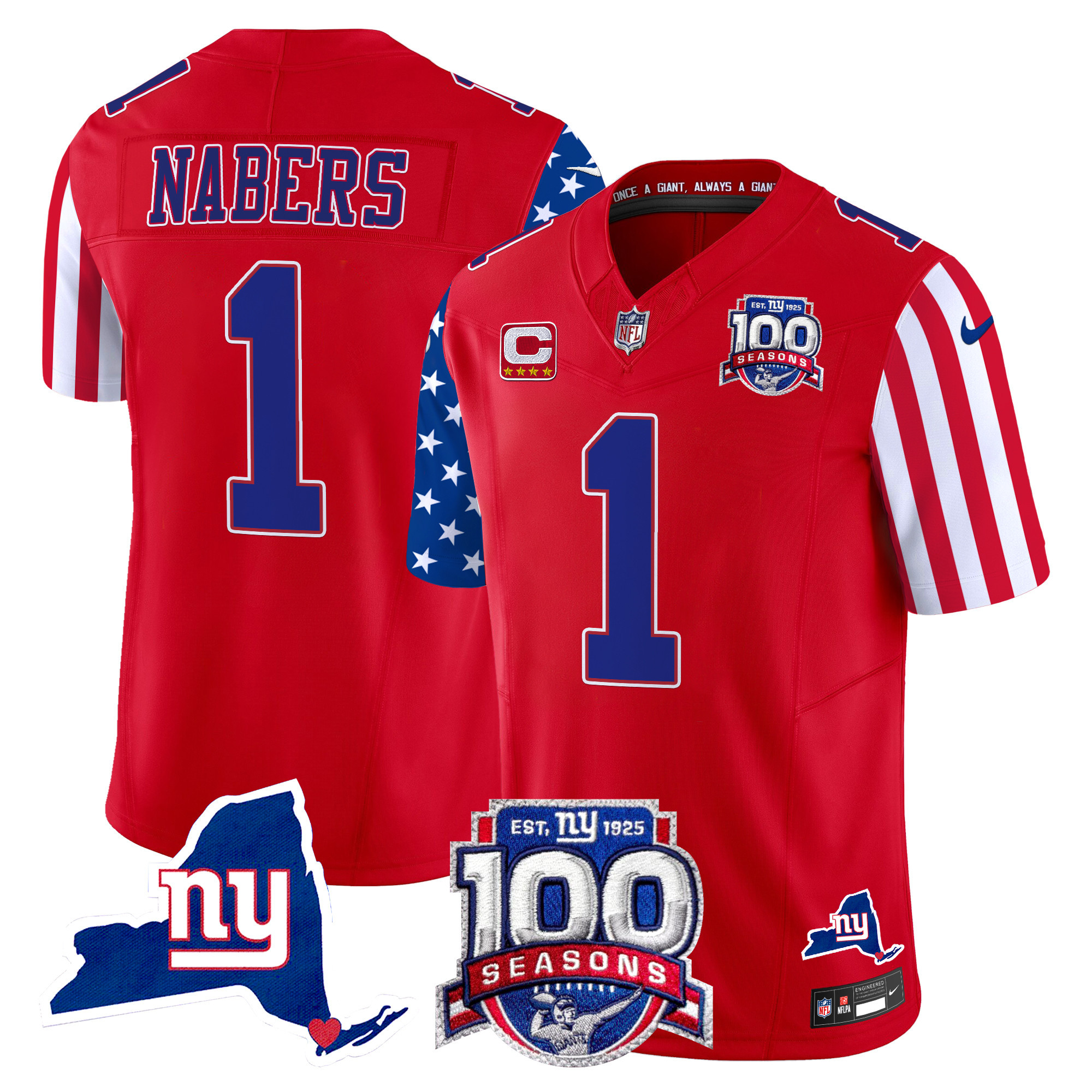 Men’s New York Giants ‘Century Red’ 100th Commemorative Vapor Jersey V2 – All Stitched