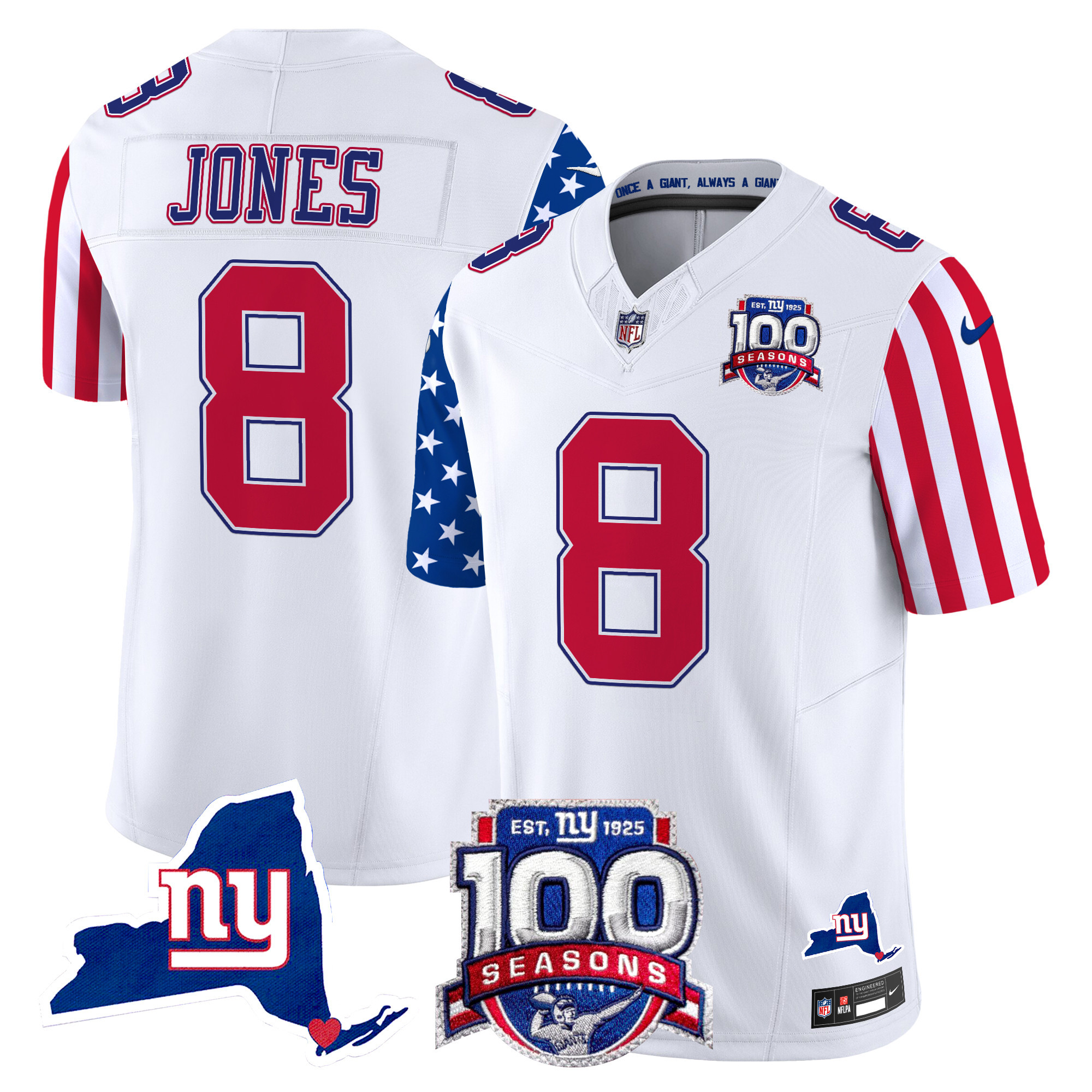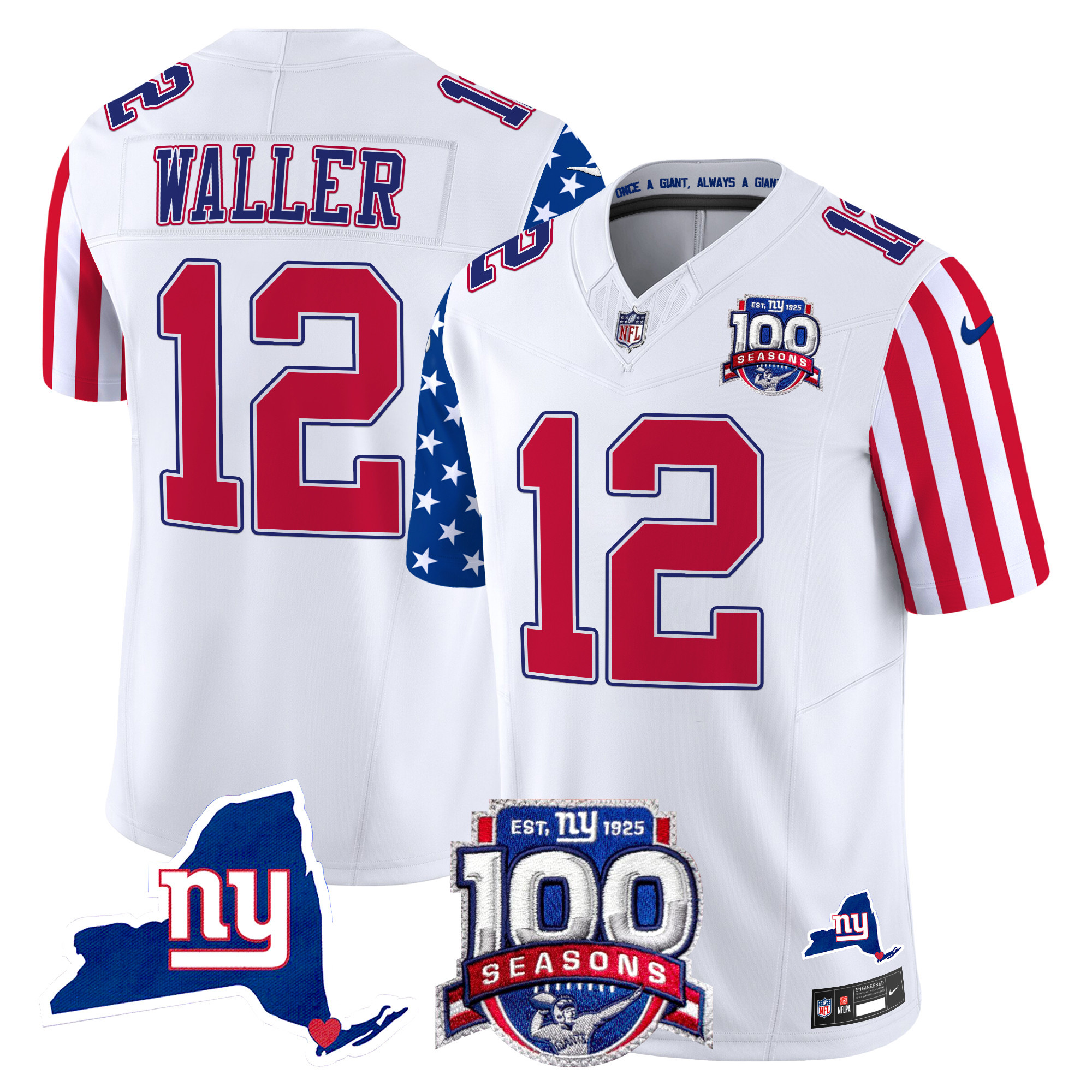 New York Giants 100th Season & State Patch Gold Vapor Limited Custom Jersey – All Stitched